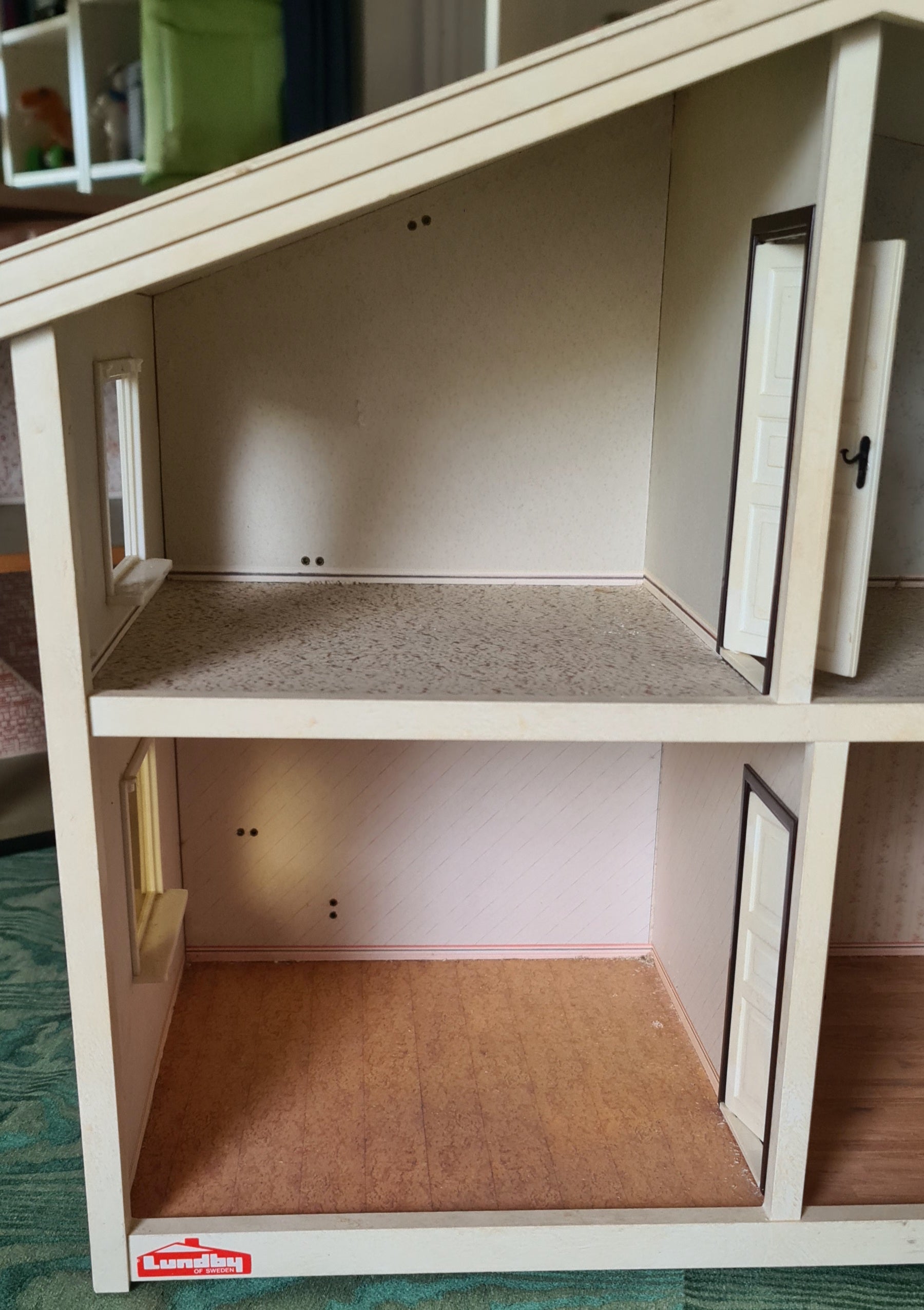 It is from the 1980s, as it is seen in a catalogue from 1984. It is older and well used, so of course there are some signs of wear and tear, stains and patina. It can easily be restored, but it needs renovation. It is bright and inviting. It is made of wood and plastic.