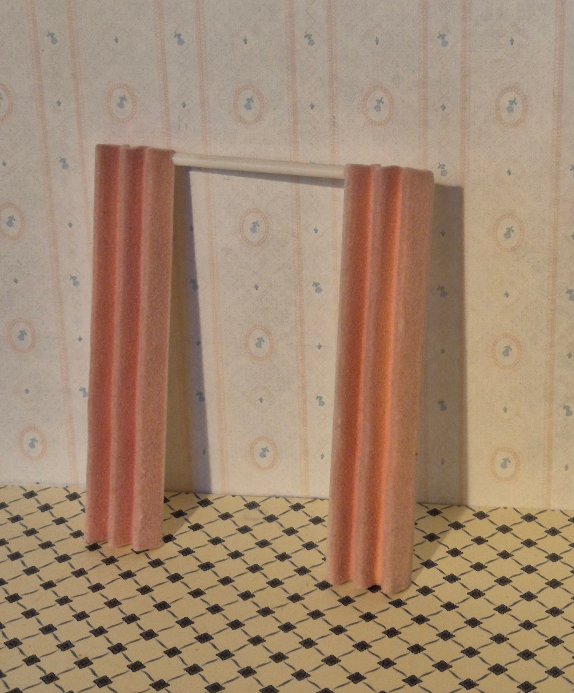 Lyserødt Lundby gardin i Lundby Smaaland serien. Udmærket stand, lidt nusset med patina