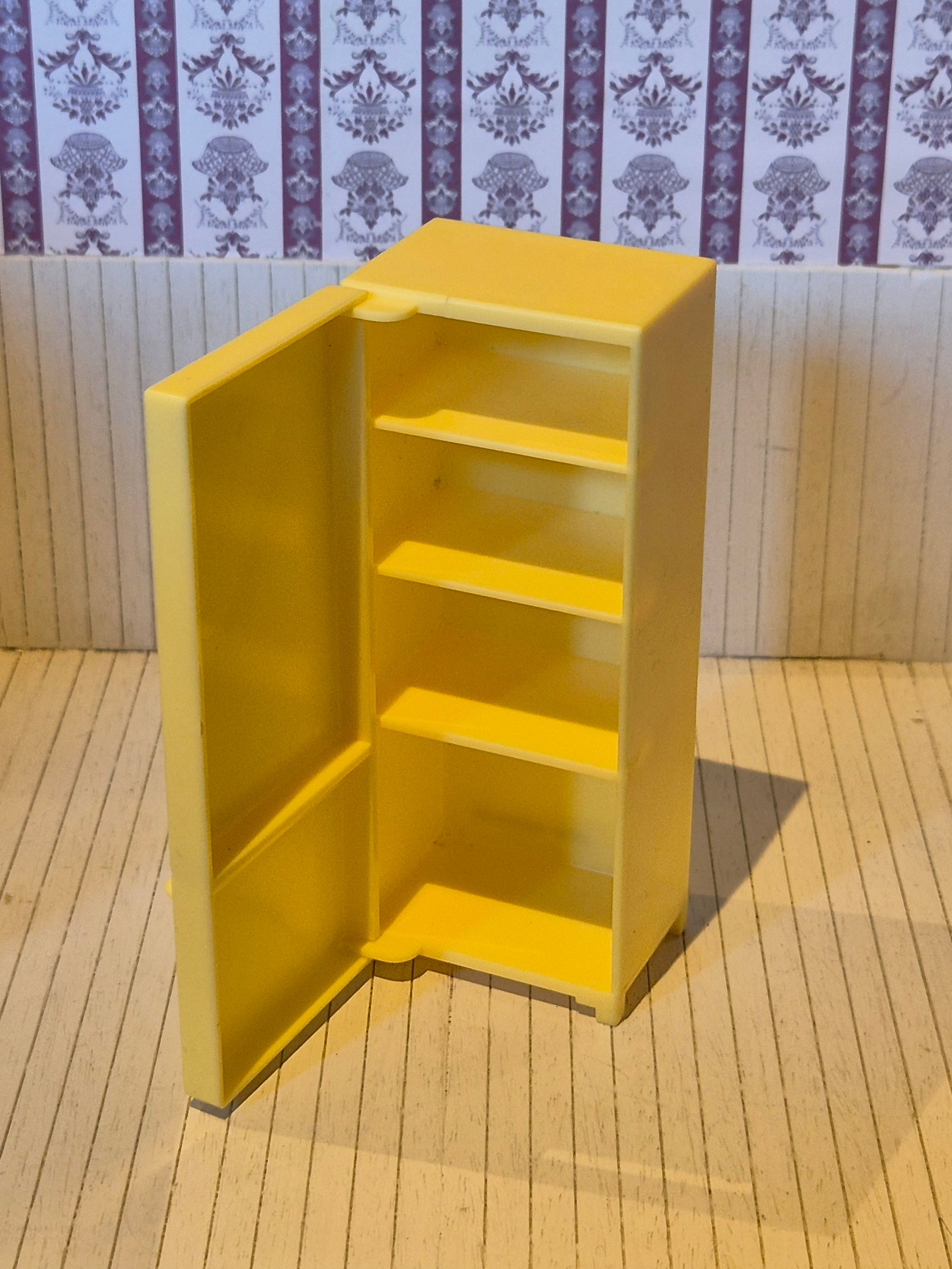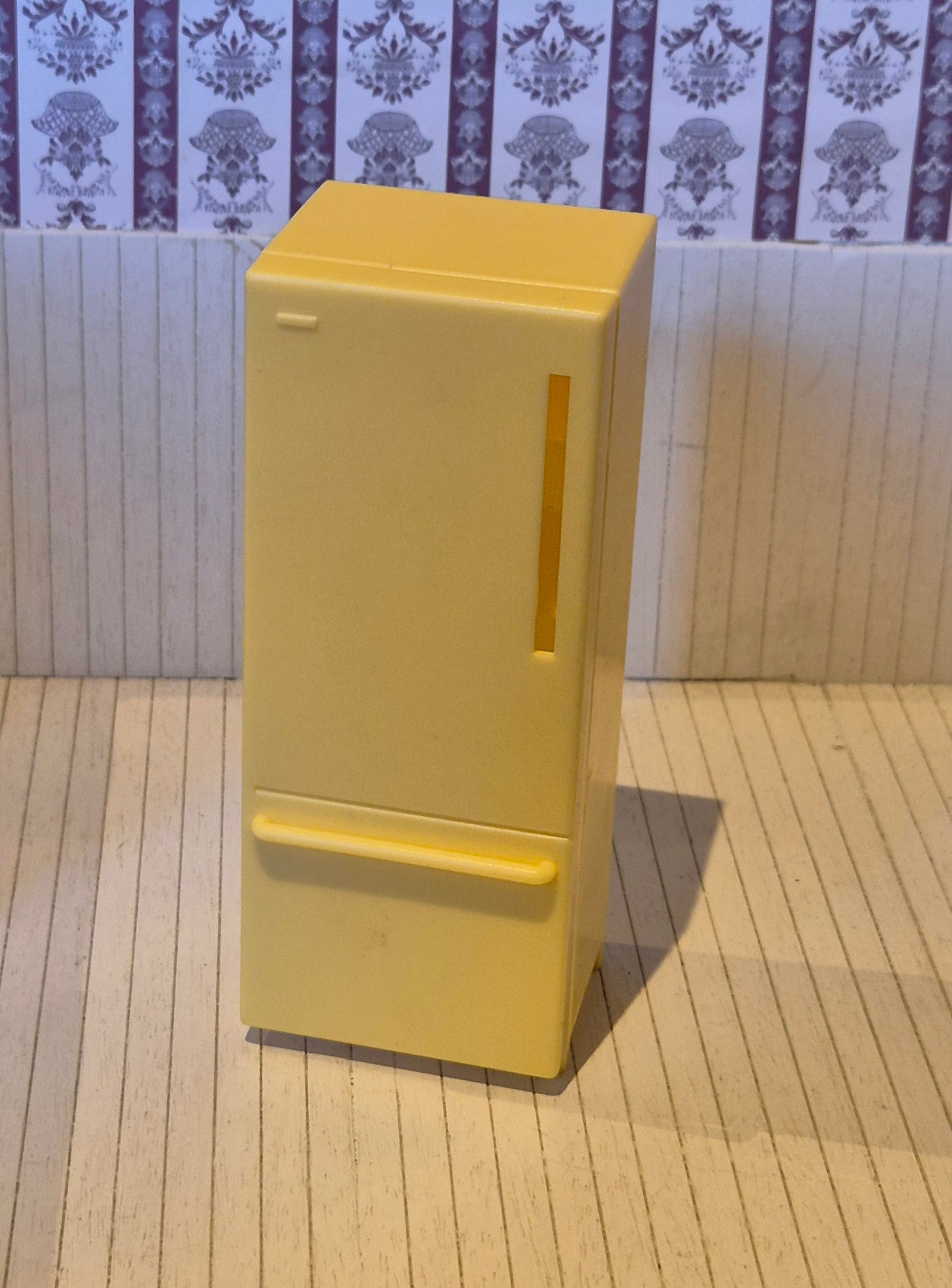 Refrigerator in yellow plastic from the Lundby Basic series. It is larger and more solid.