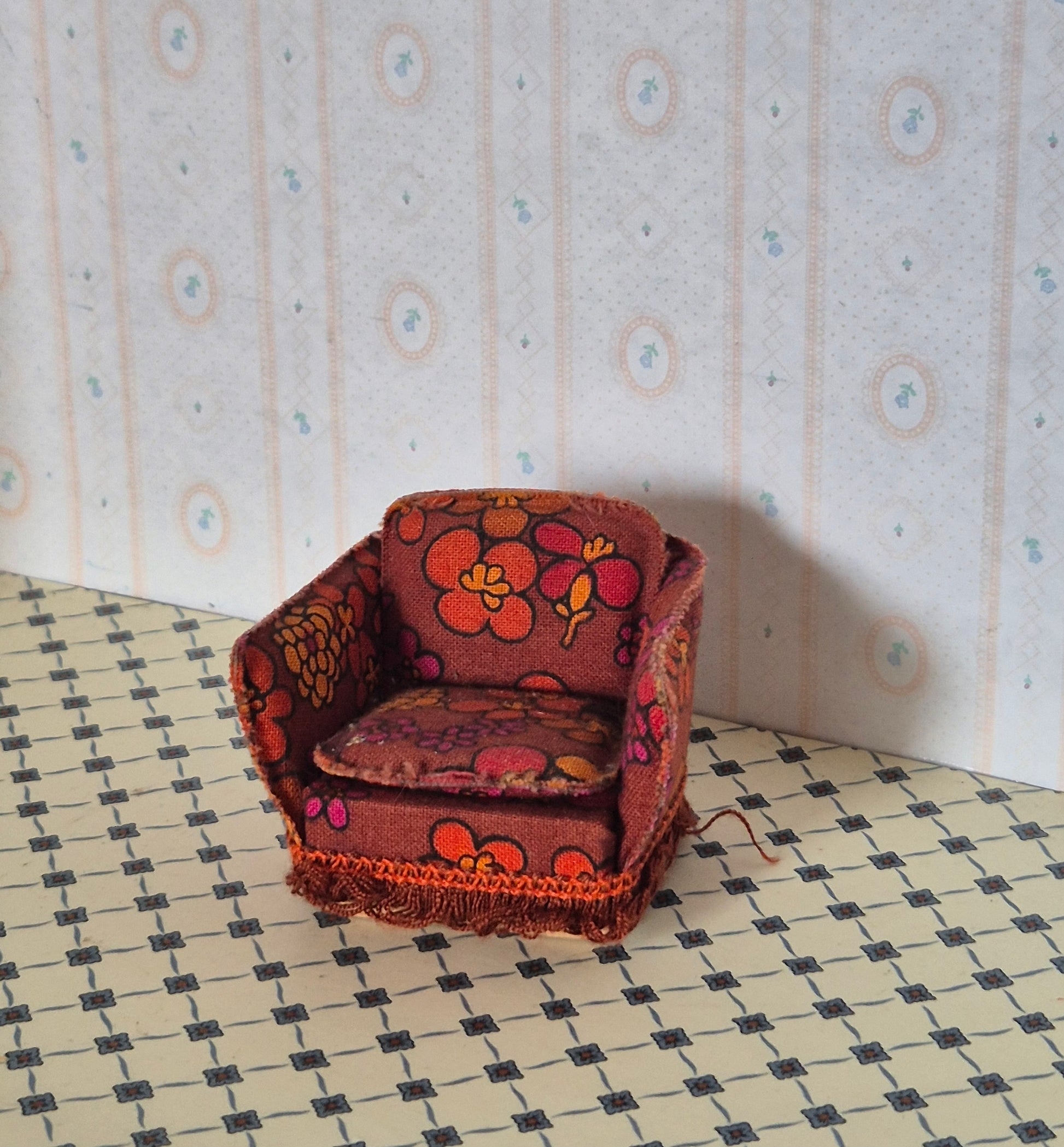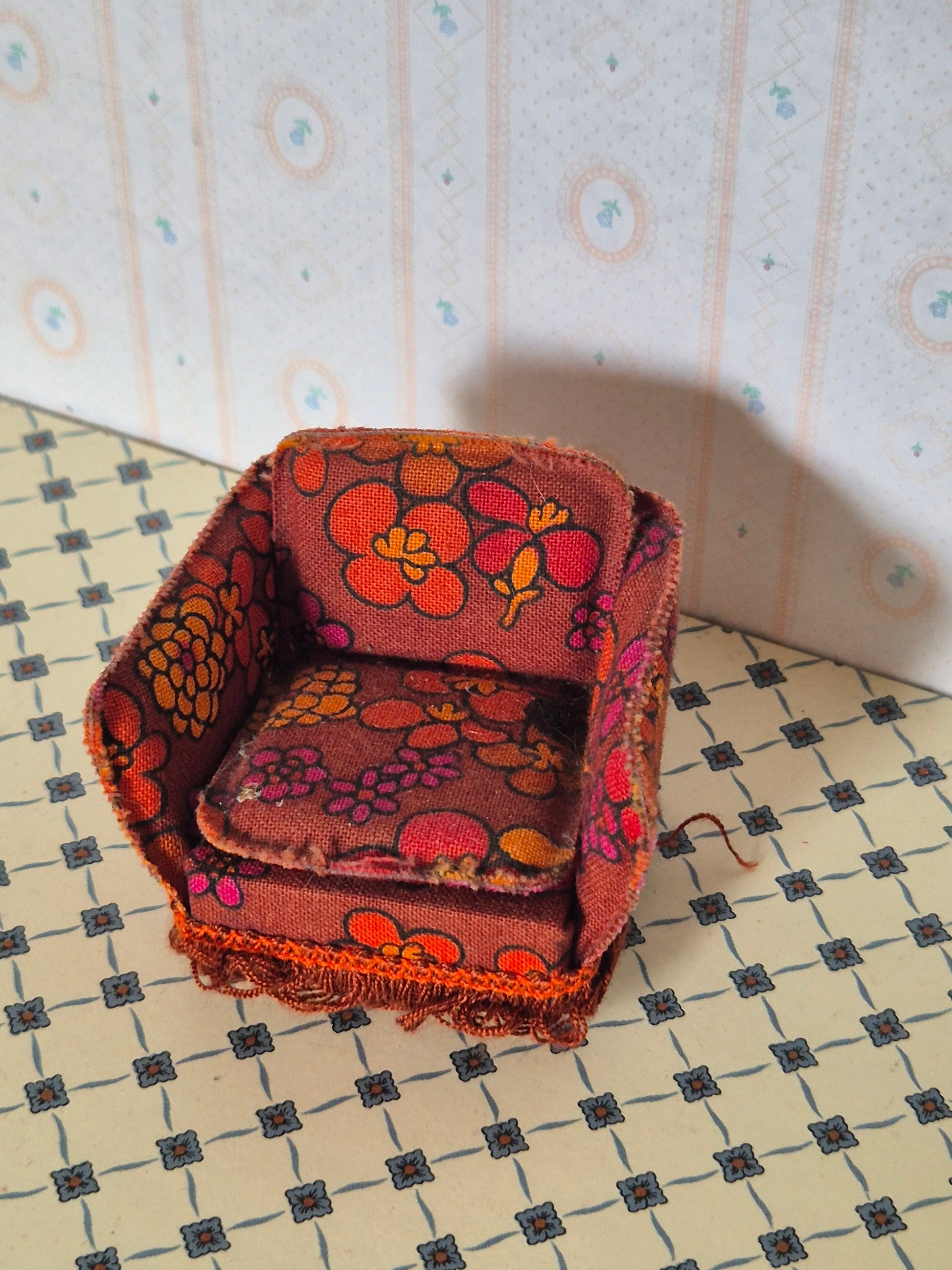 Vintage Lundby lænestol i retro design til dukkehuset. Udmærket stand med patina