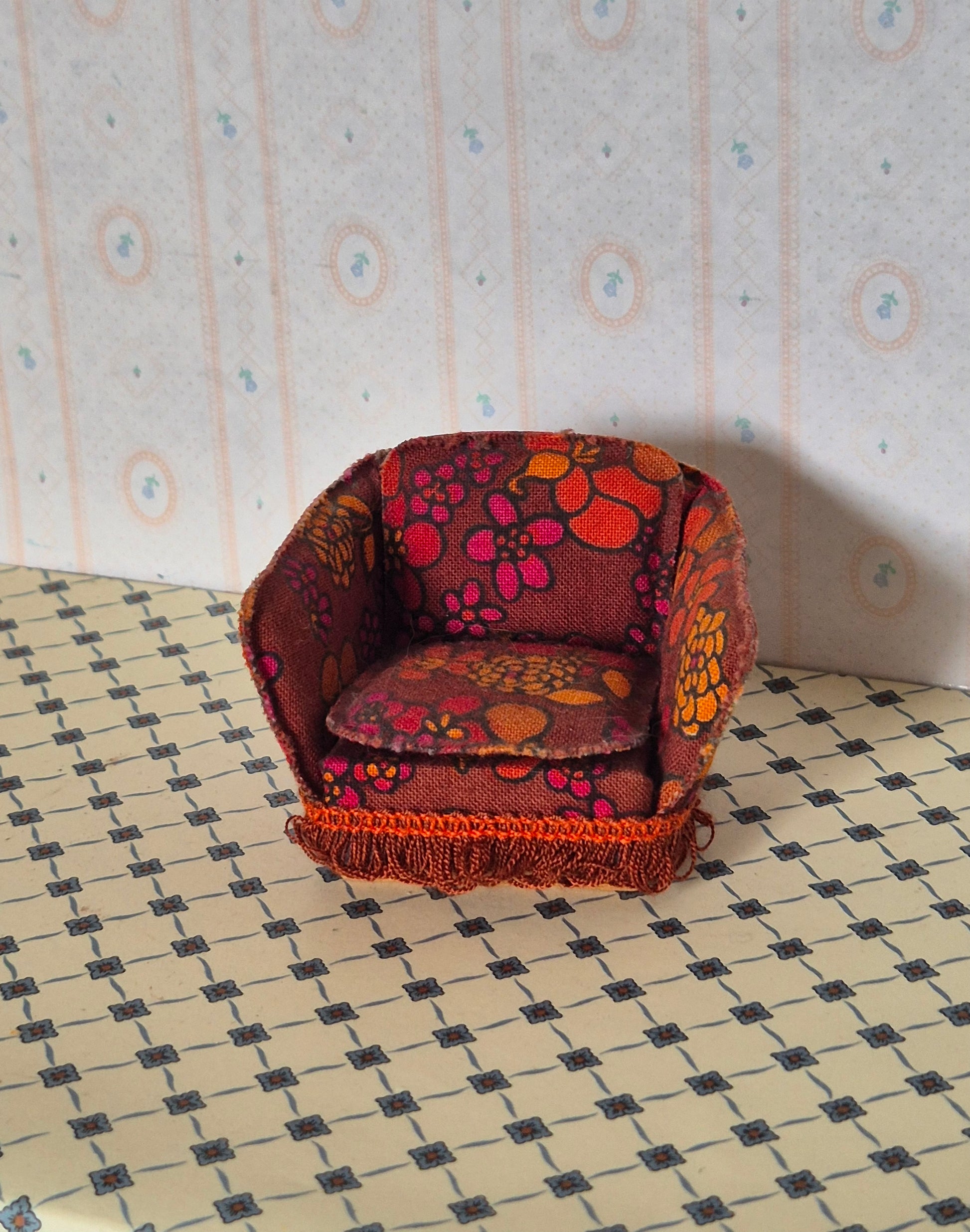 Vintage Lundby lænestol i retro design til dukkehuset. Udmærket stand med patina og brugsspor
