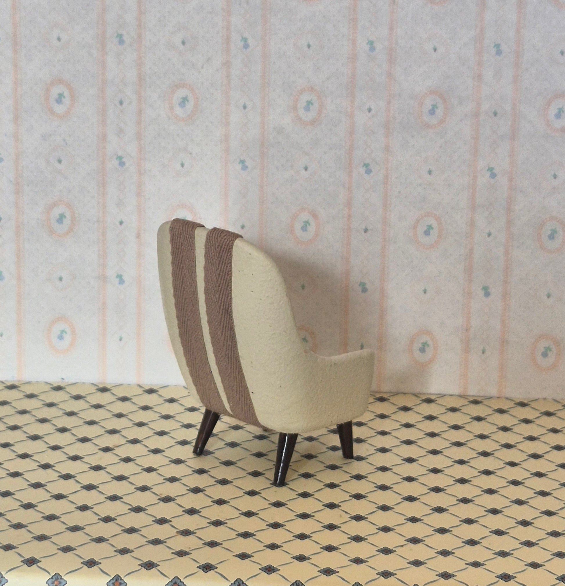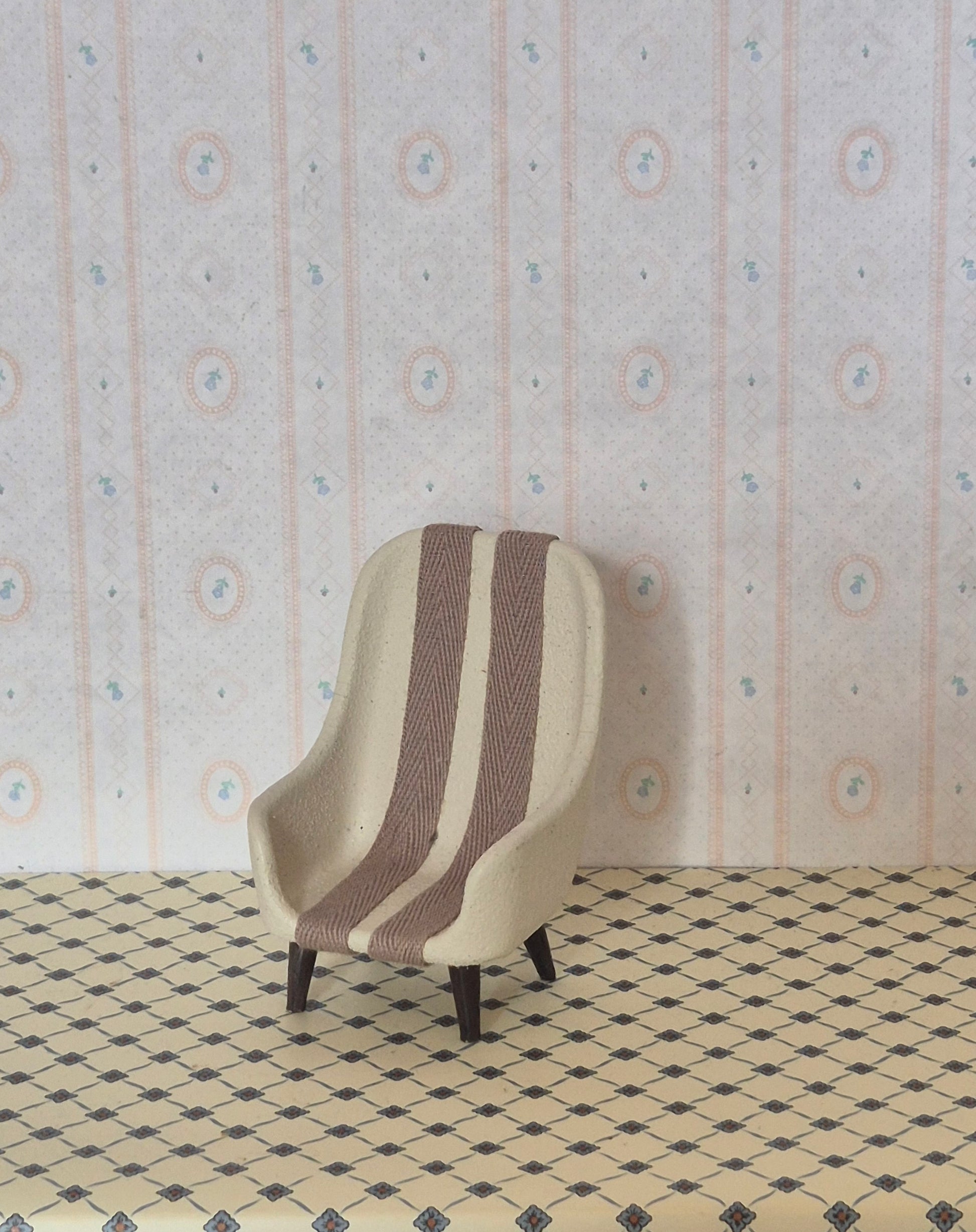 Lundby Lænestol der er blevet renoveret og malet, fået stofbånd på sædet.