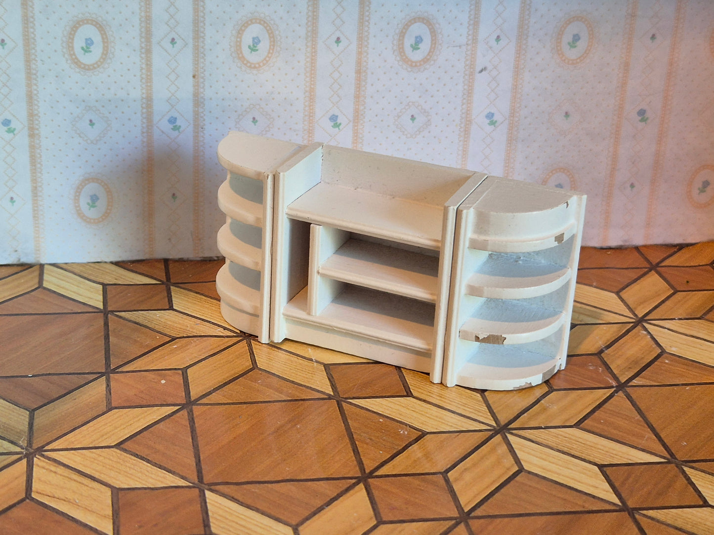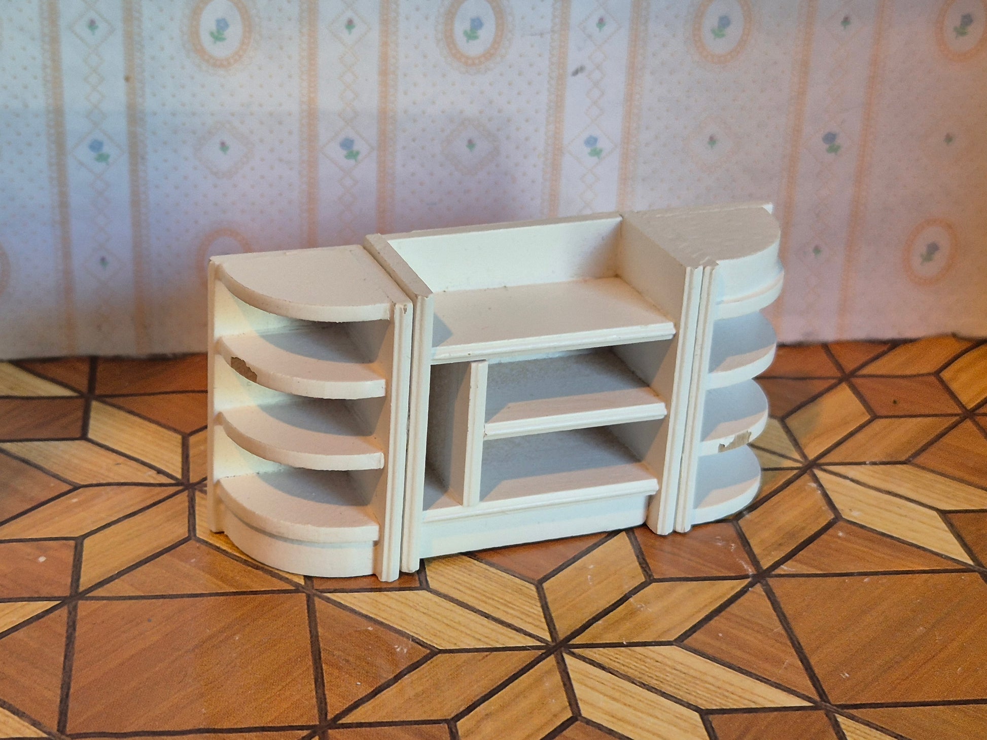 Vintage hvid Lundby reol til fx entréen. Udmærket stand med patina. Den ses ikke ofte, ret sjældent.