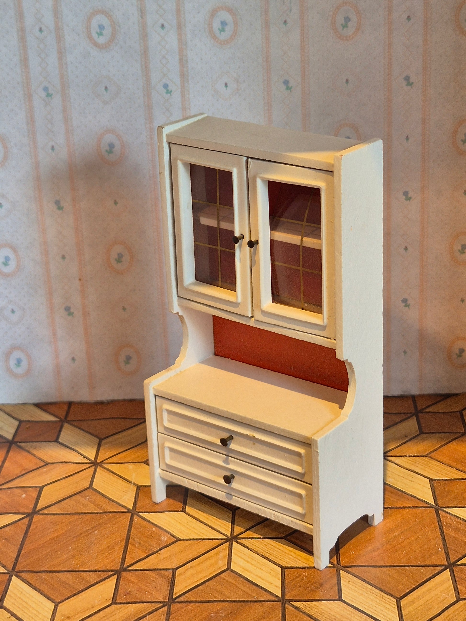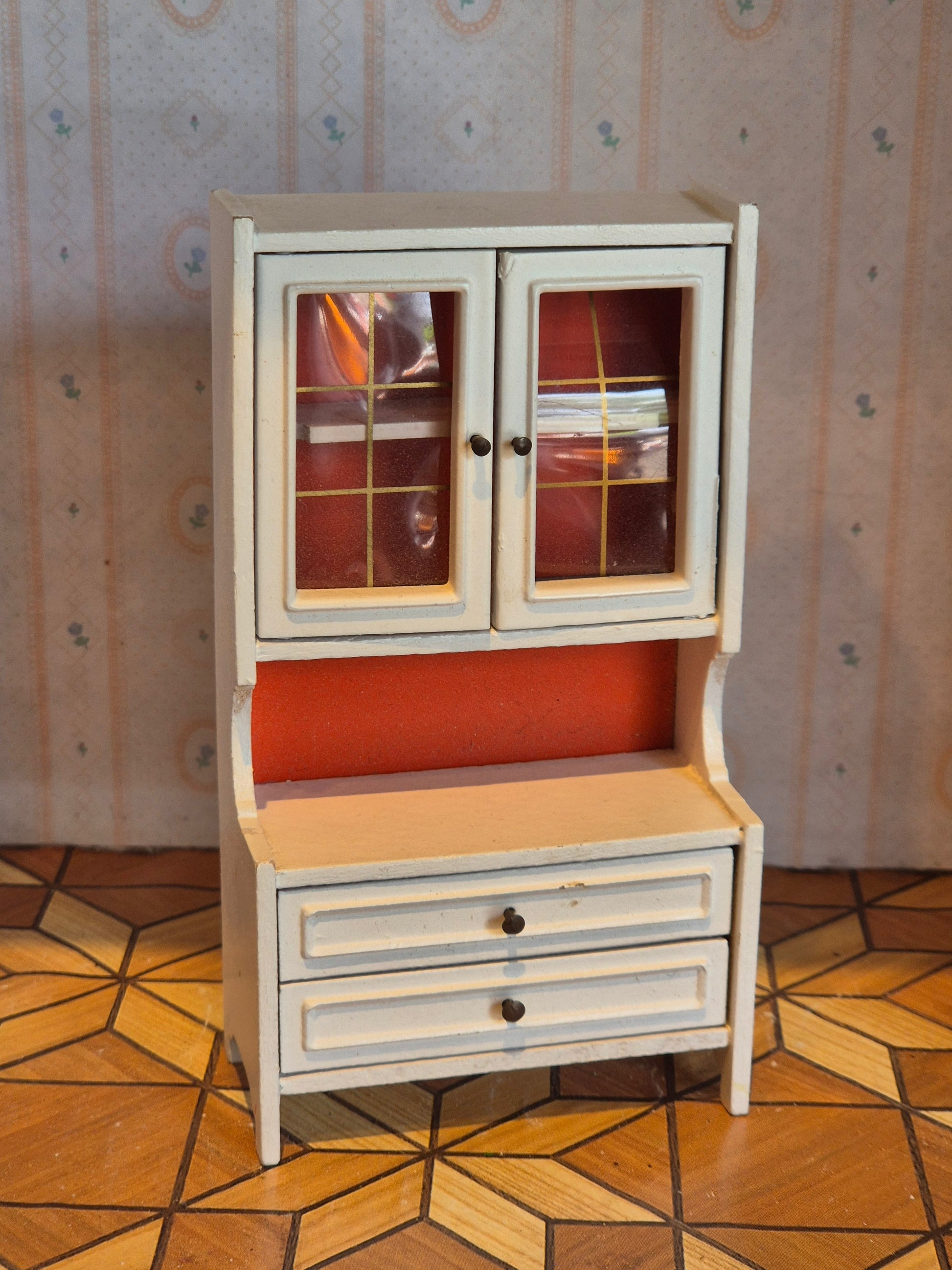 Hvid Lundby reol med rød baggrund, skab og skuffer. God stand