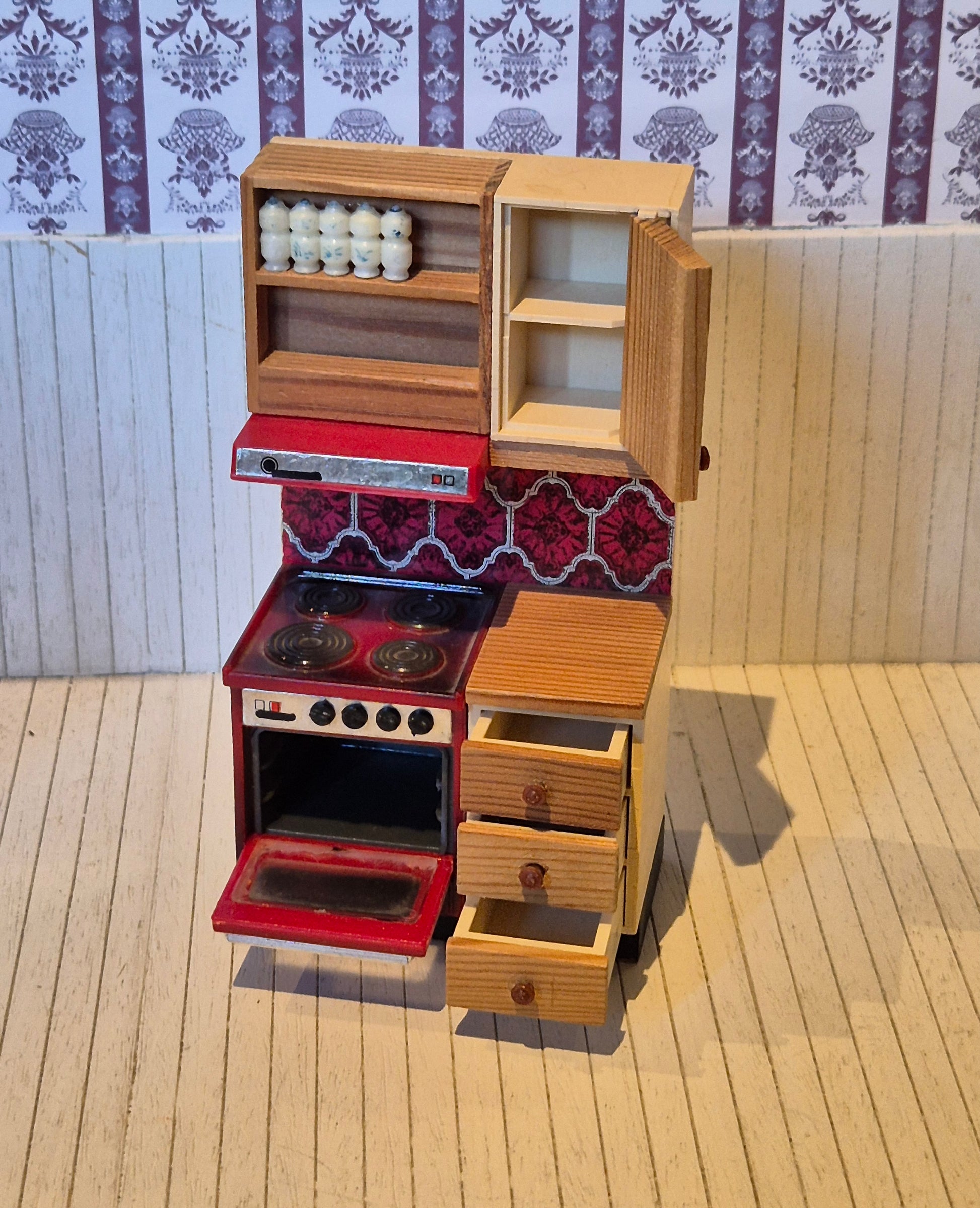Nice dollhouse stove for Lundby kitchen. Original kitchen element.