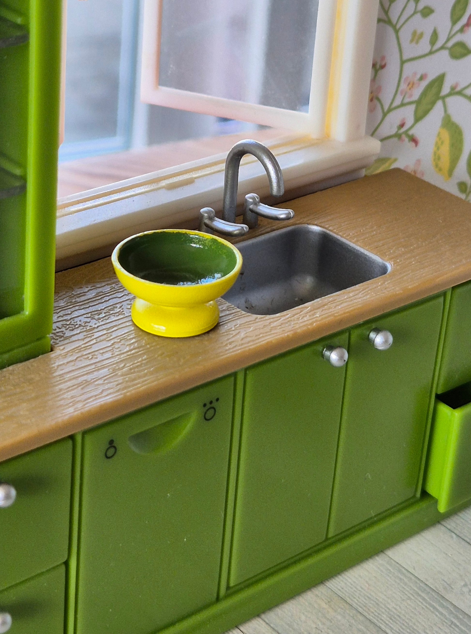 Pæn Lundby skål på opsats fod i grønlige nuancer.