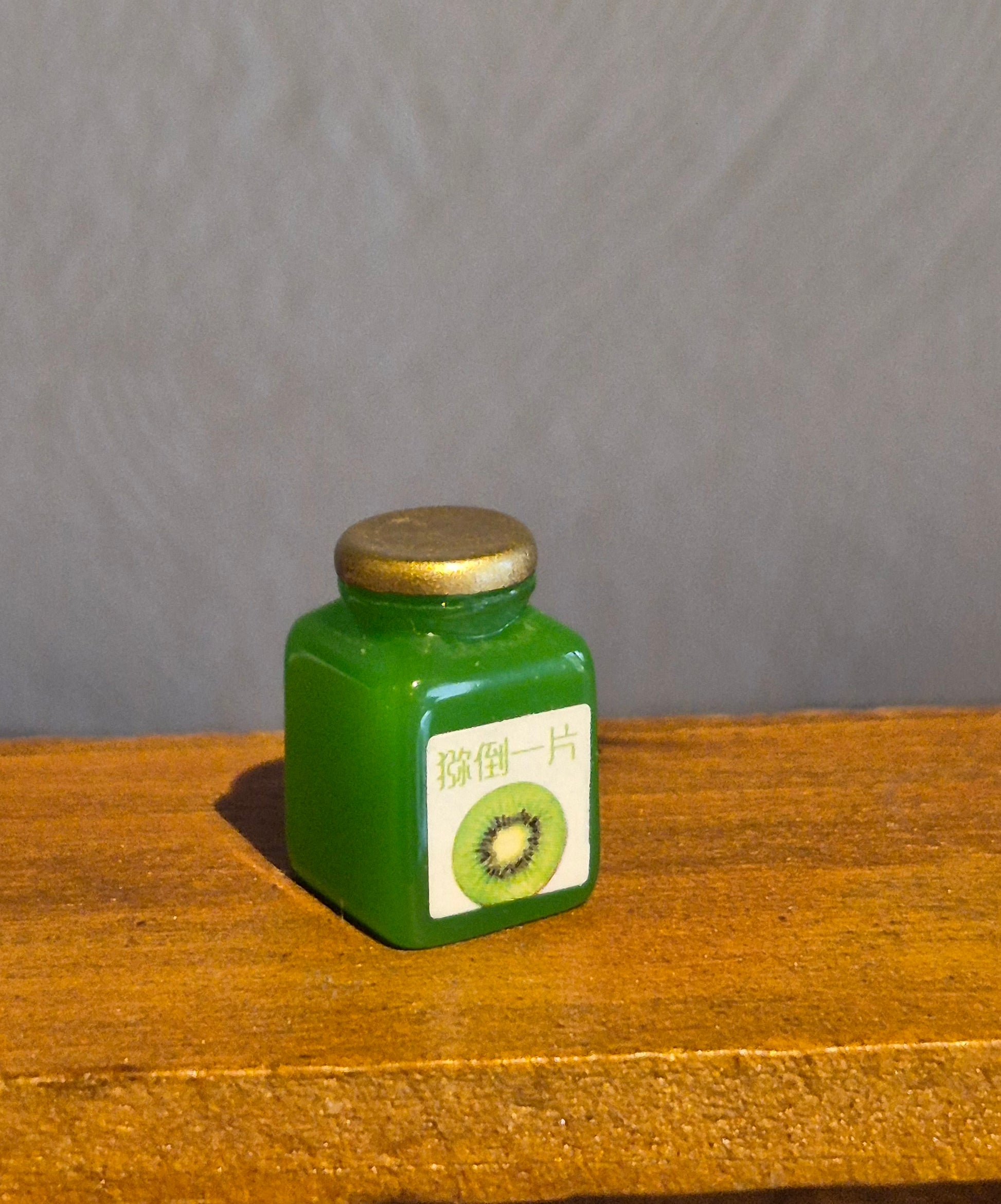 Jam jar, green. Kiwi jam. Nice jam jar.