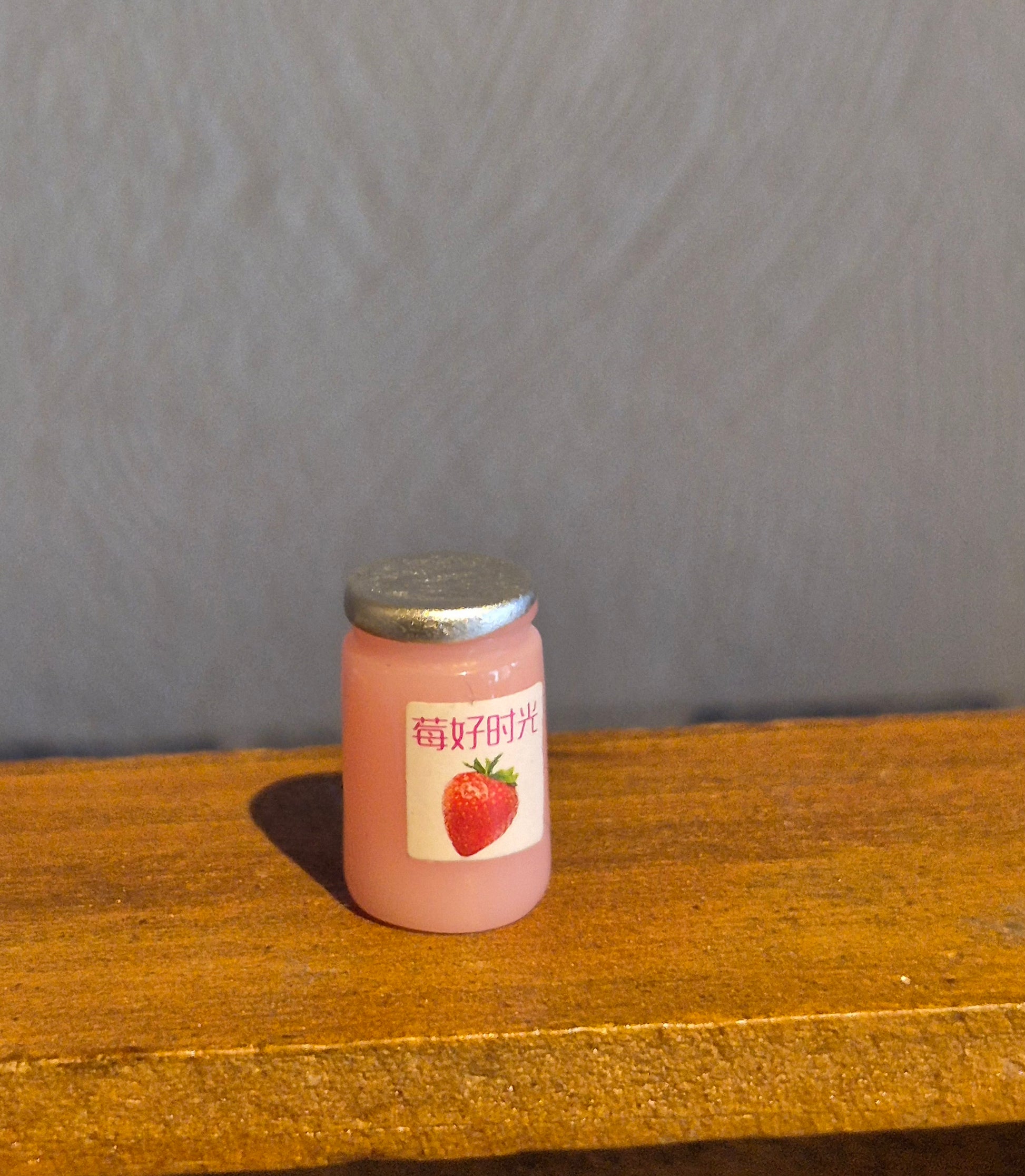 Jam jar, pink. Strawberry jam. Nice jam jar.