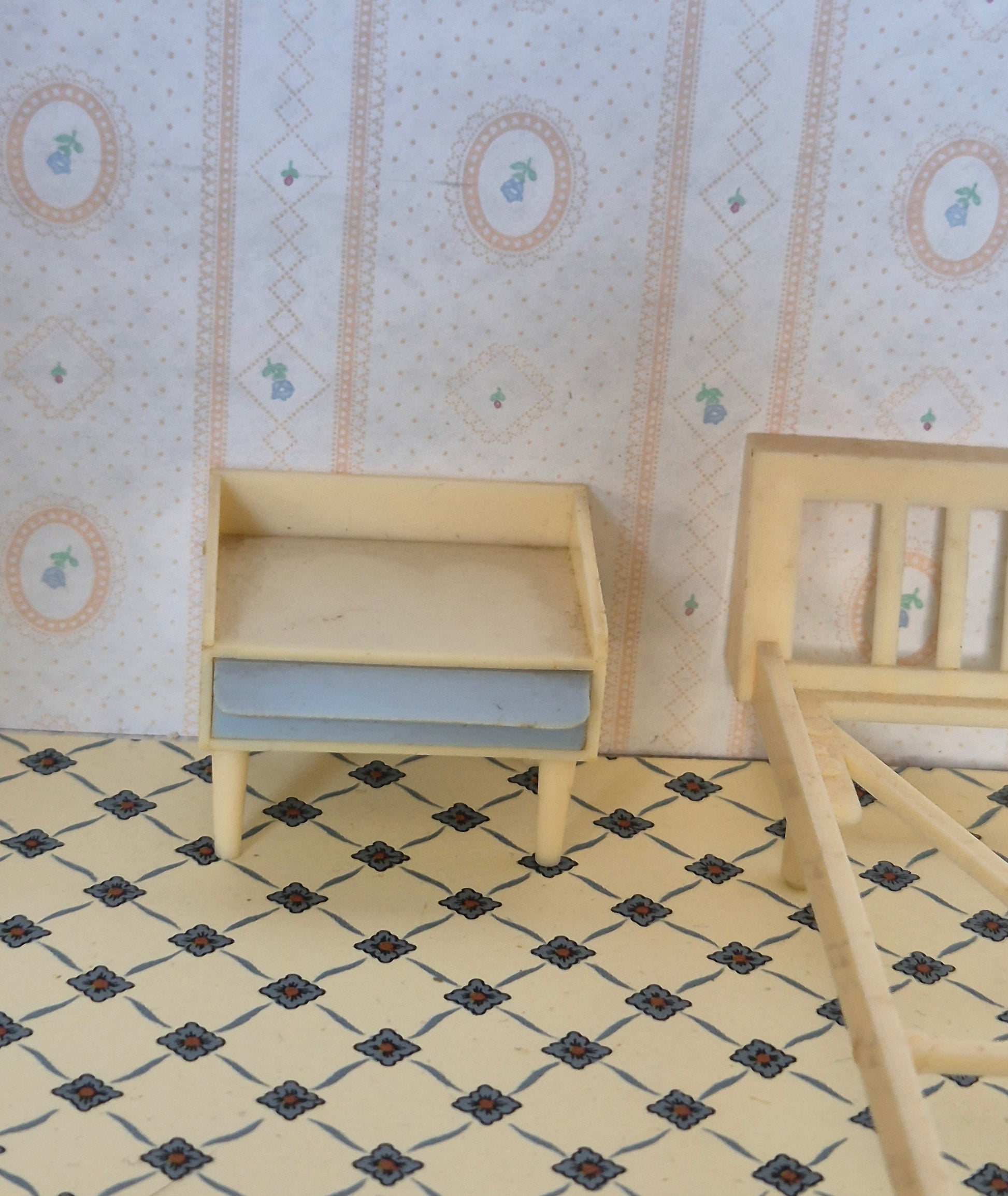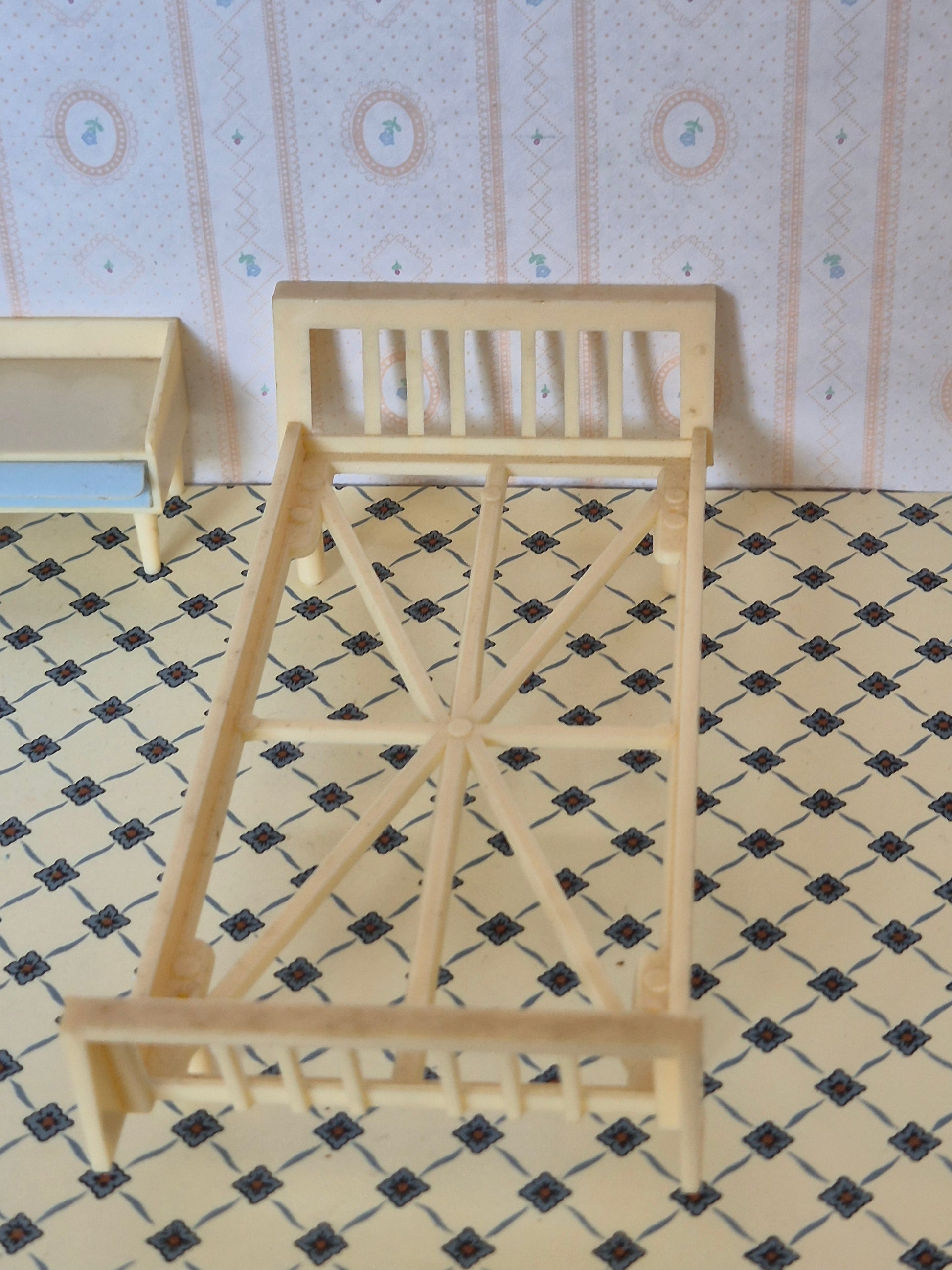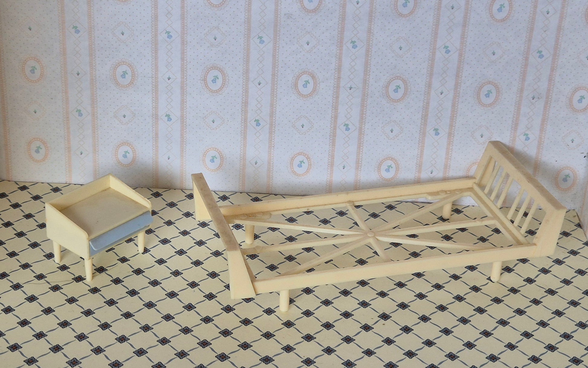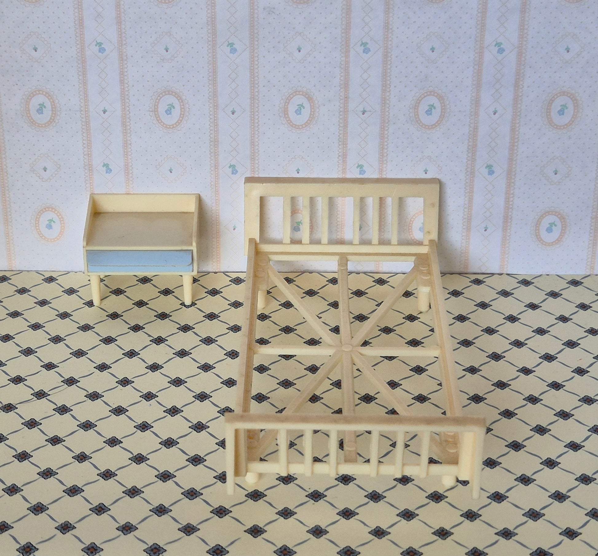 Vintage sæt af natbord og seng uden sengelinned af mærket Modella str 1:18 - 1:16.