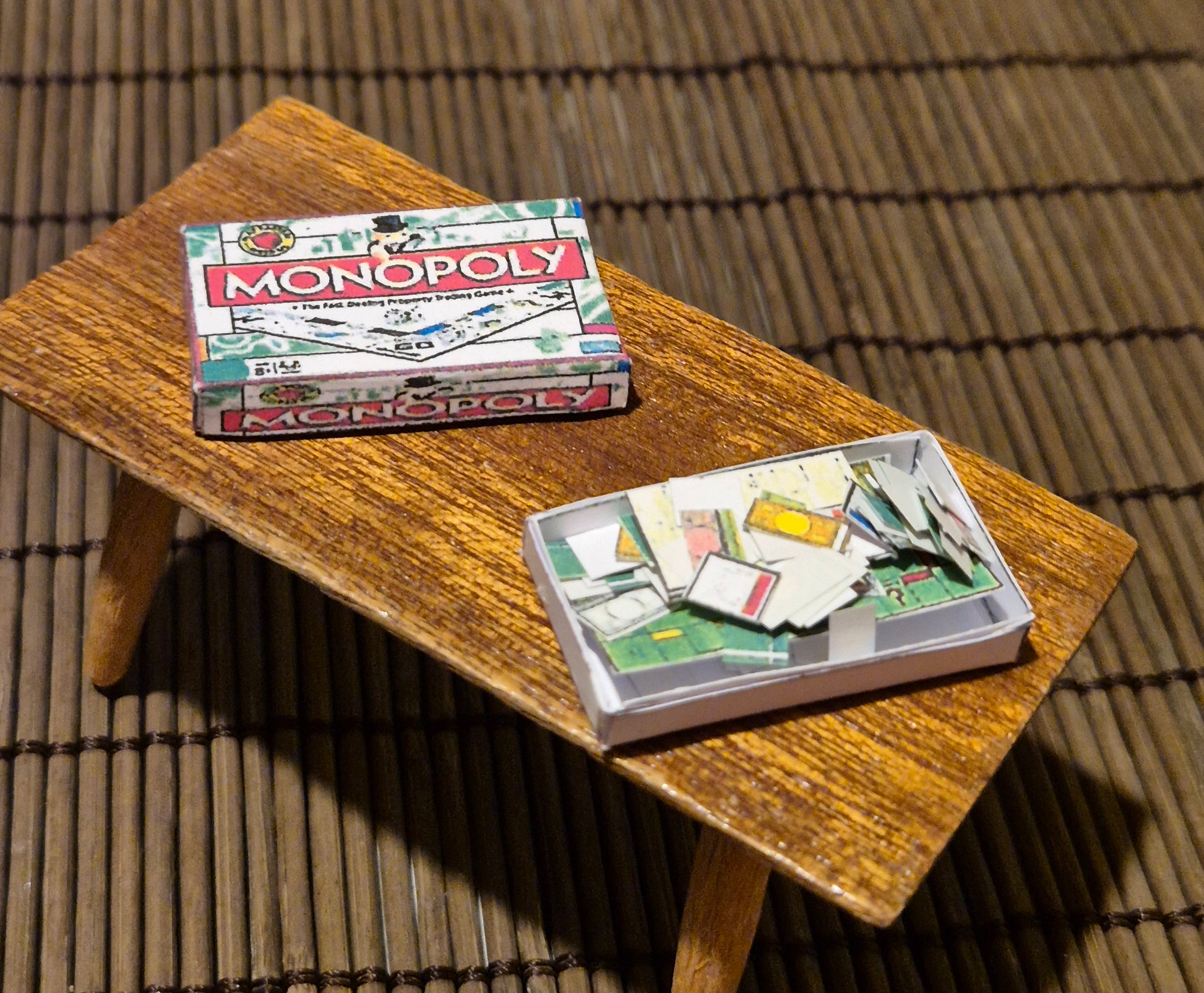 Nice accessory for the children's room. Monopoly board game with game board and pieces in size 1:12, but can easily be used for other sizes too, e.g. 1:16.