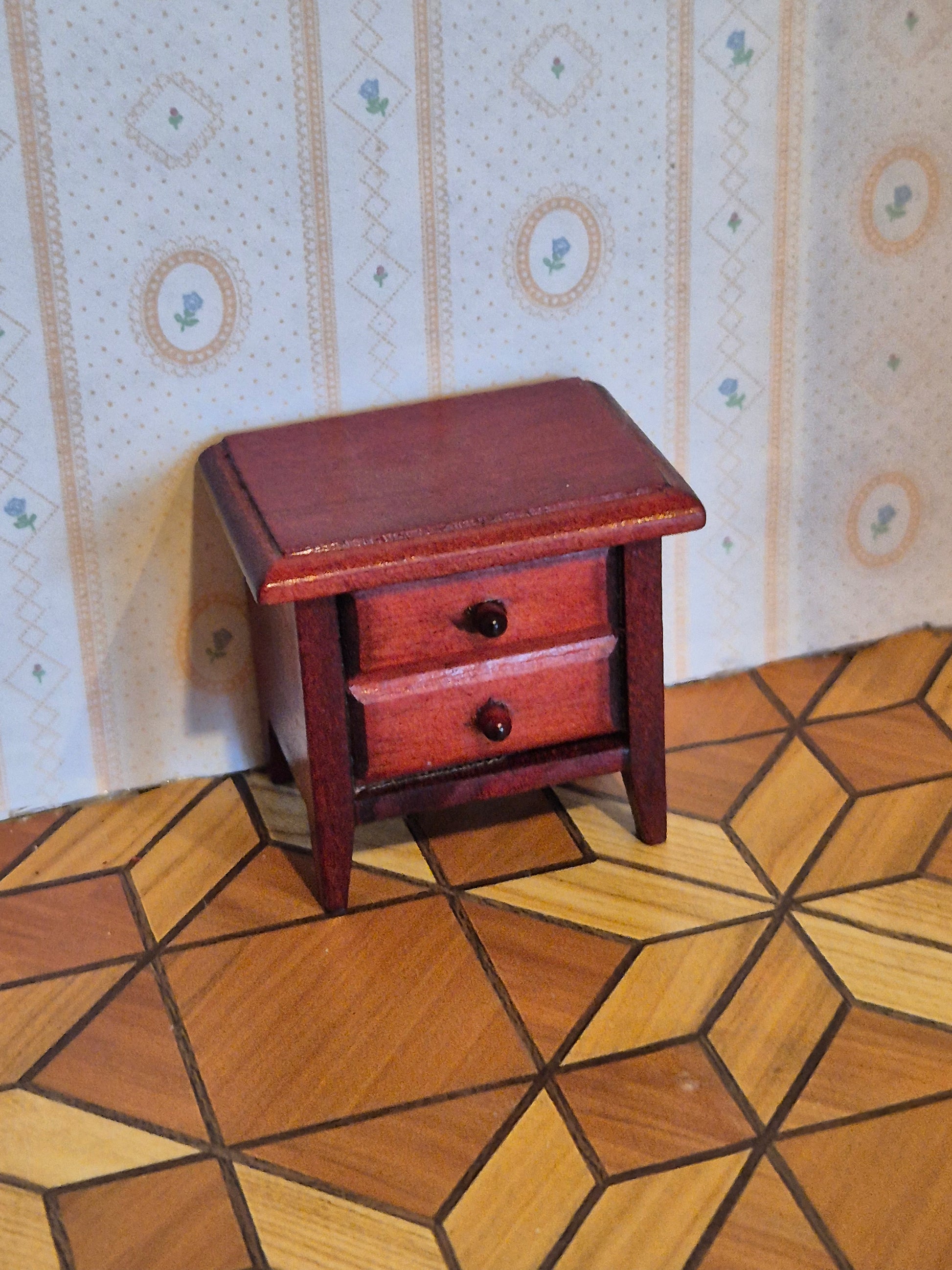 Brunt lakeret natbord af træ. Sengebord i fin stand. Passer til str 1:14, 1:12 og med god vilje til 1:16