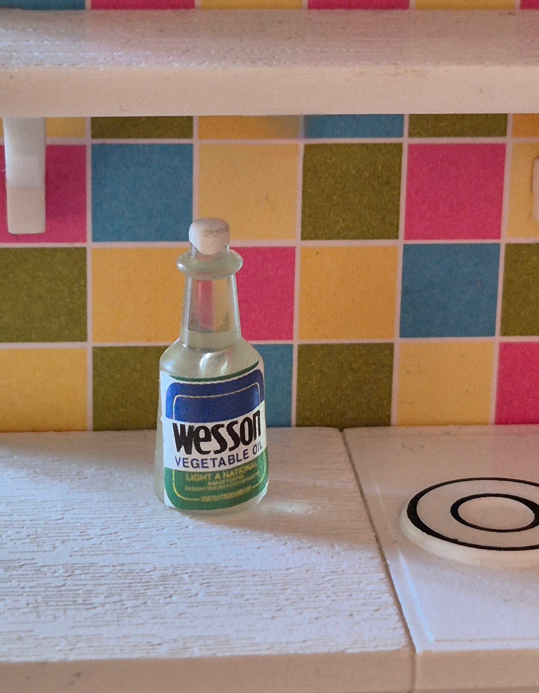 Fin flaske med madolie. Kan fint bruges til 1:16 og 1:12.