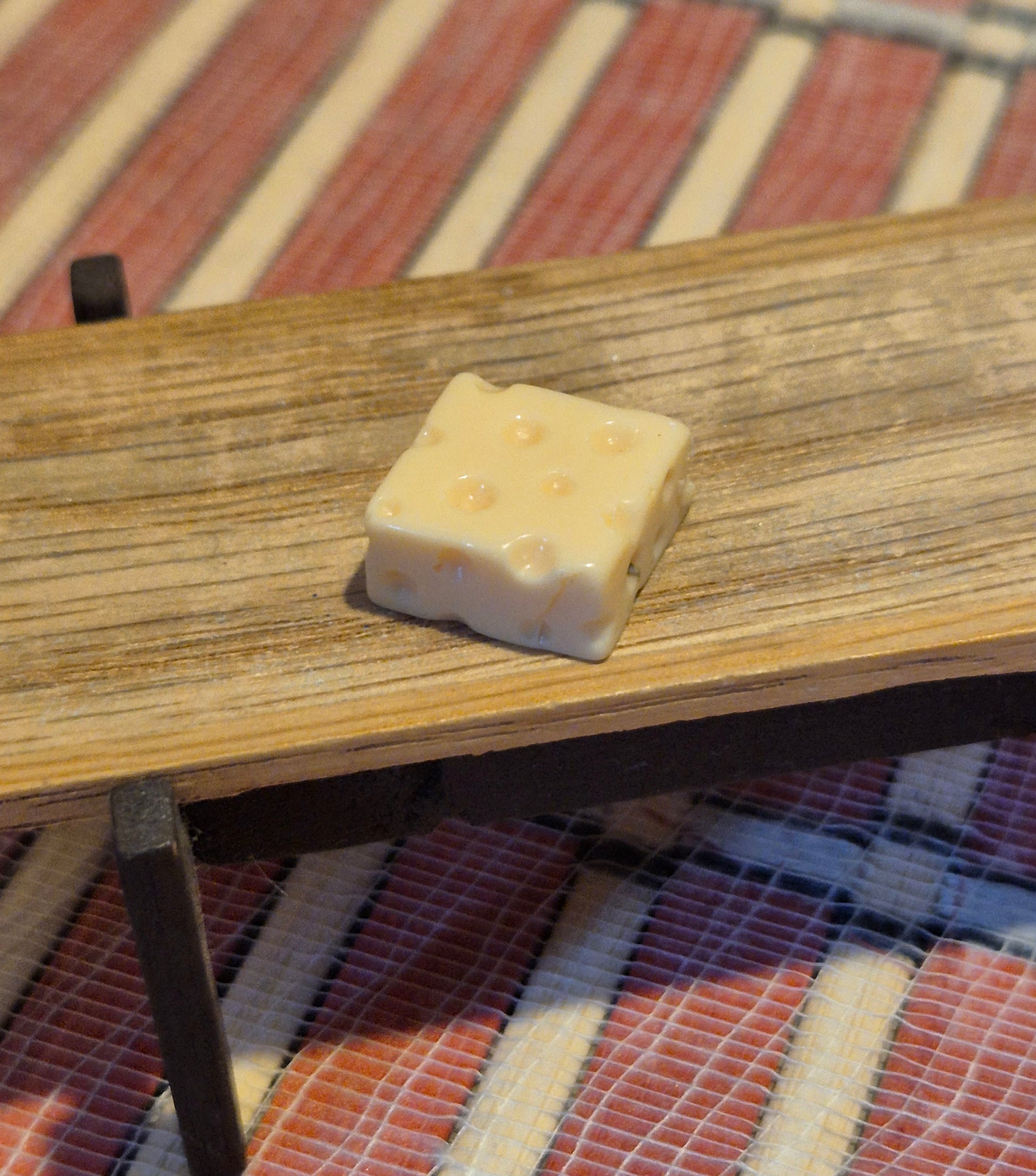 Nice piece of square cheese made of resin / plastic. It's nice. Suitable as food for the kitchen or in the elf's house at Christmas.