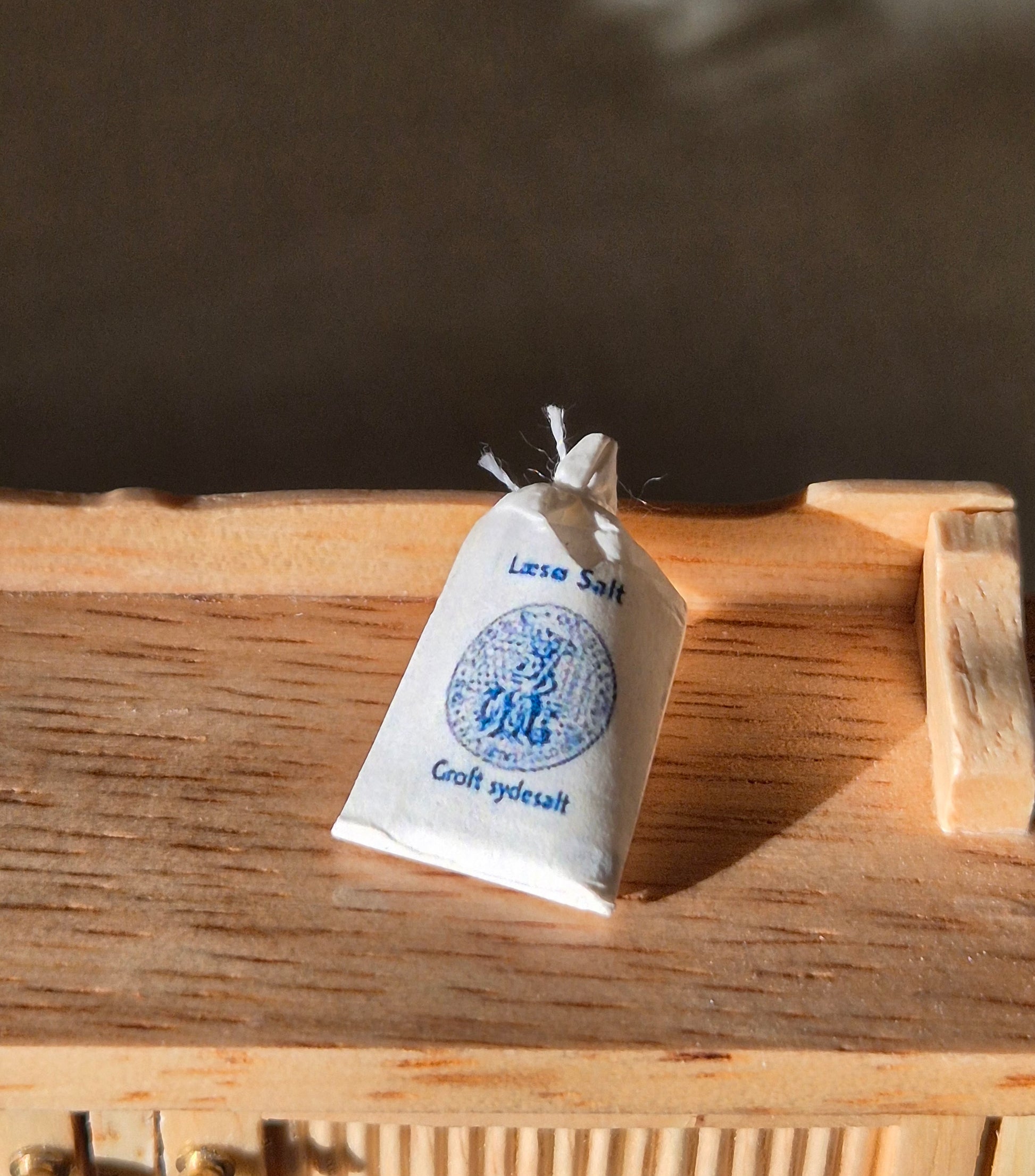 Pæn og god pose med salt fra Læsø til dukkehuset.