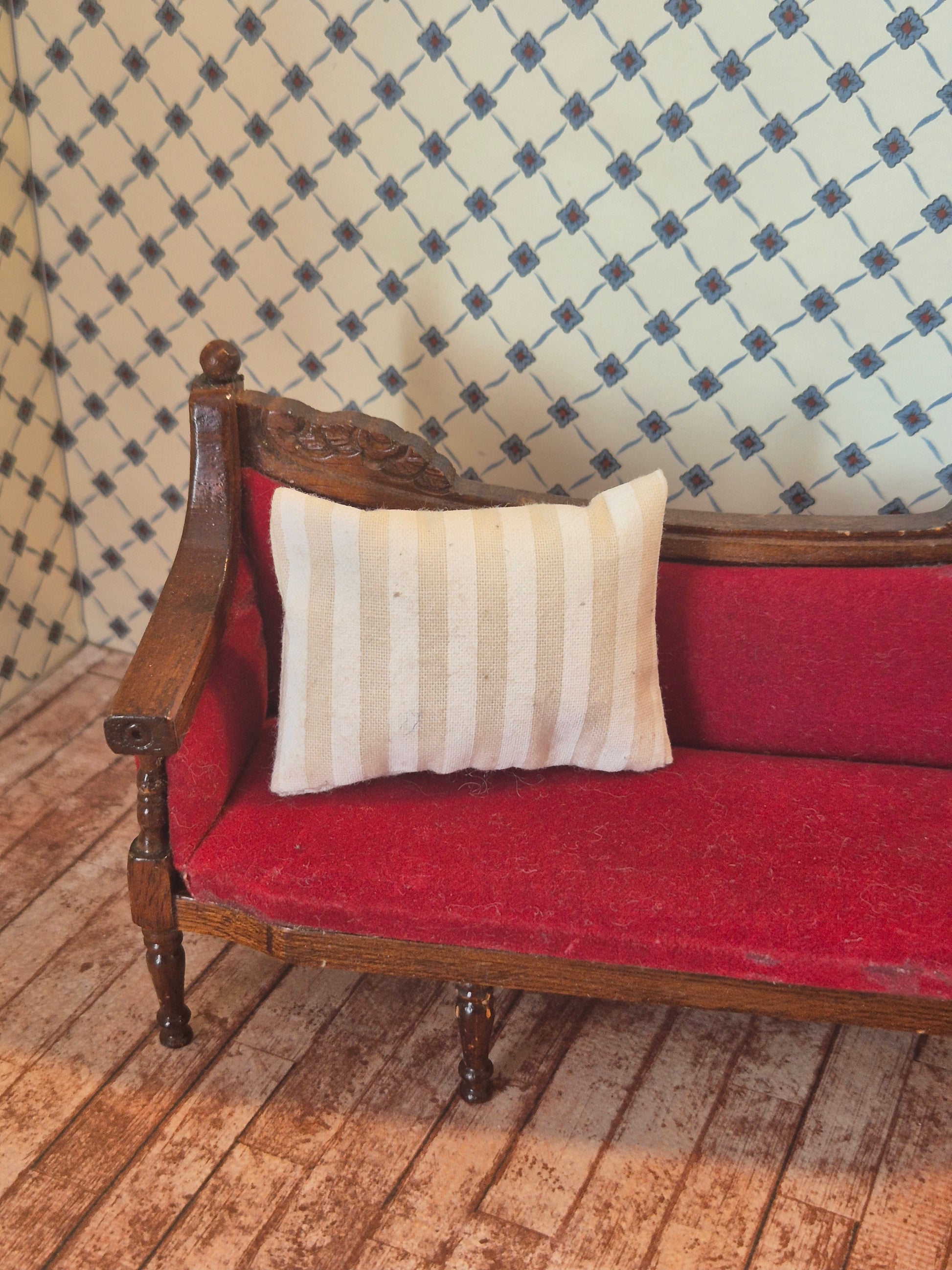 Pæn pude med lyse striber.