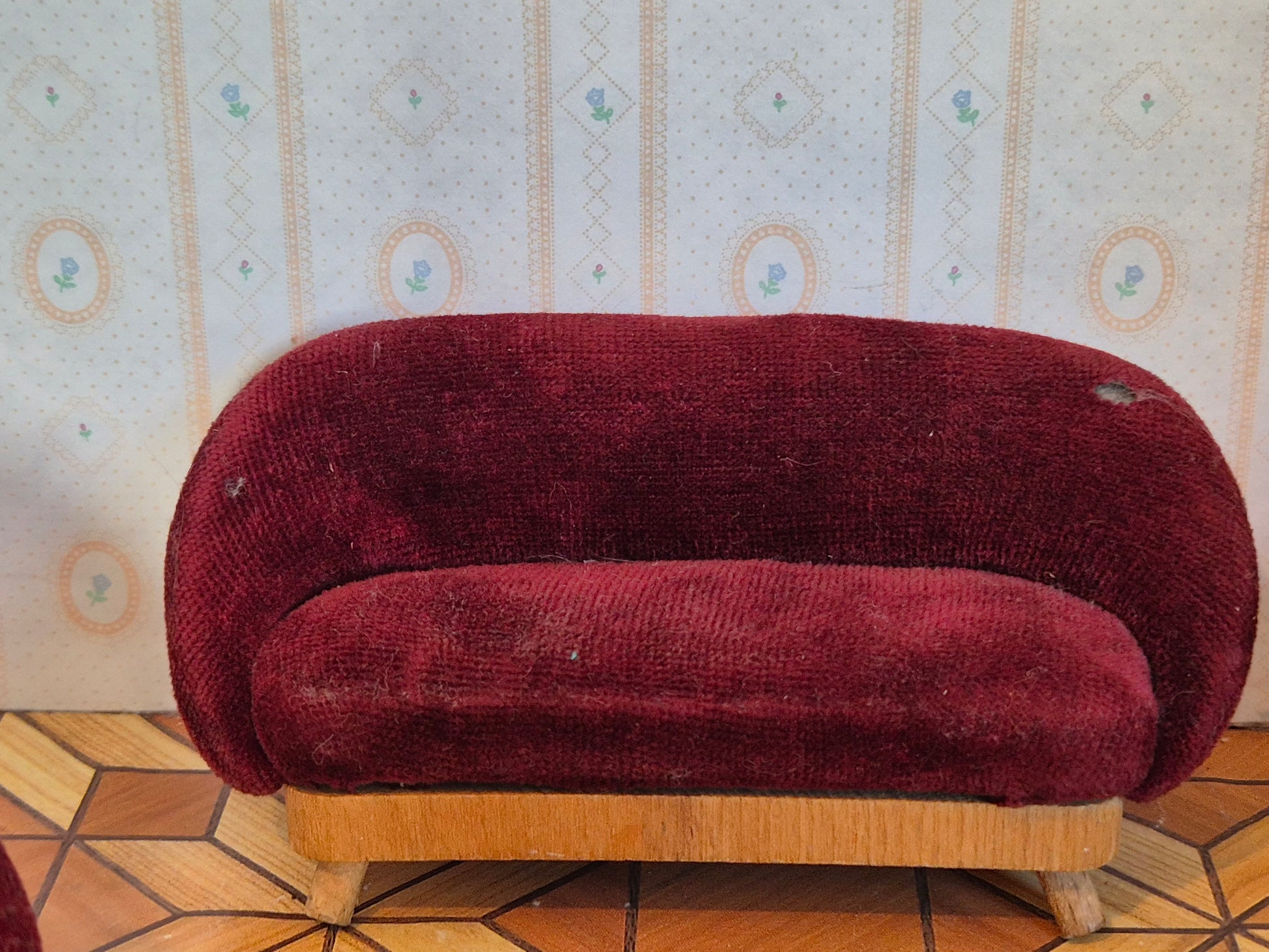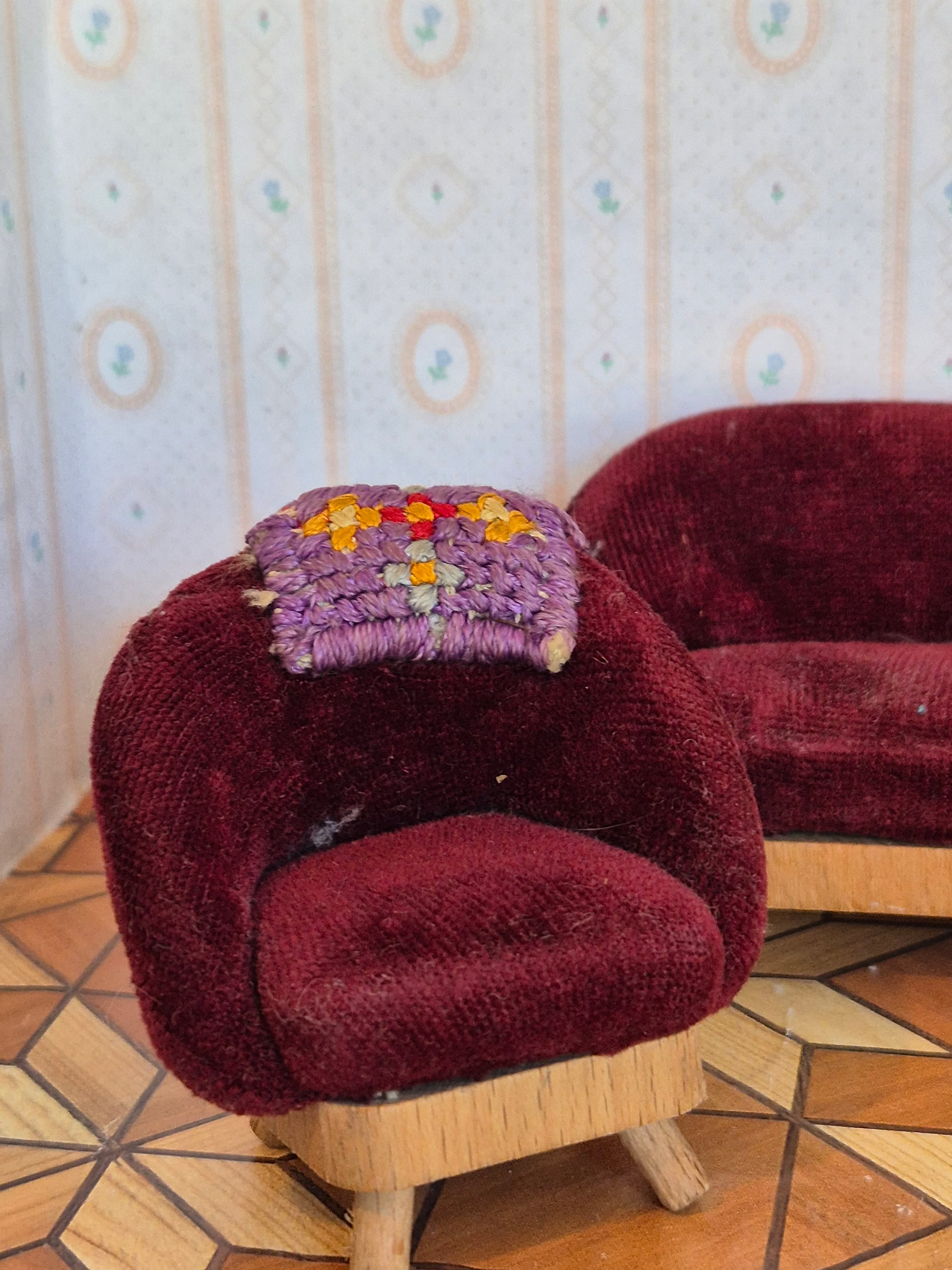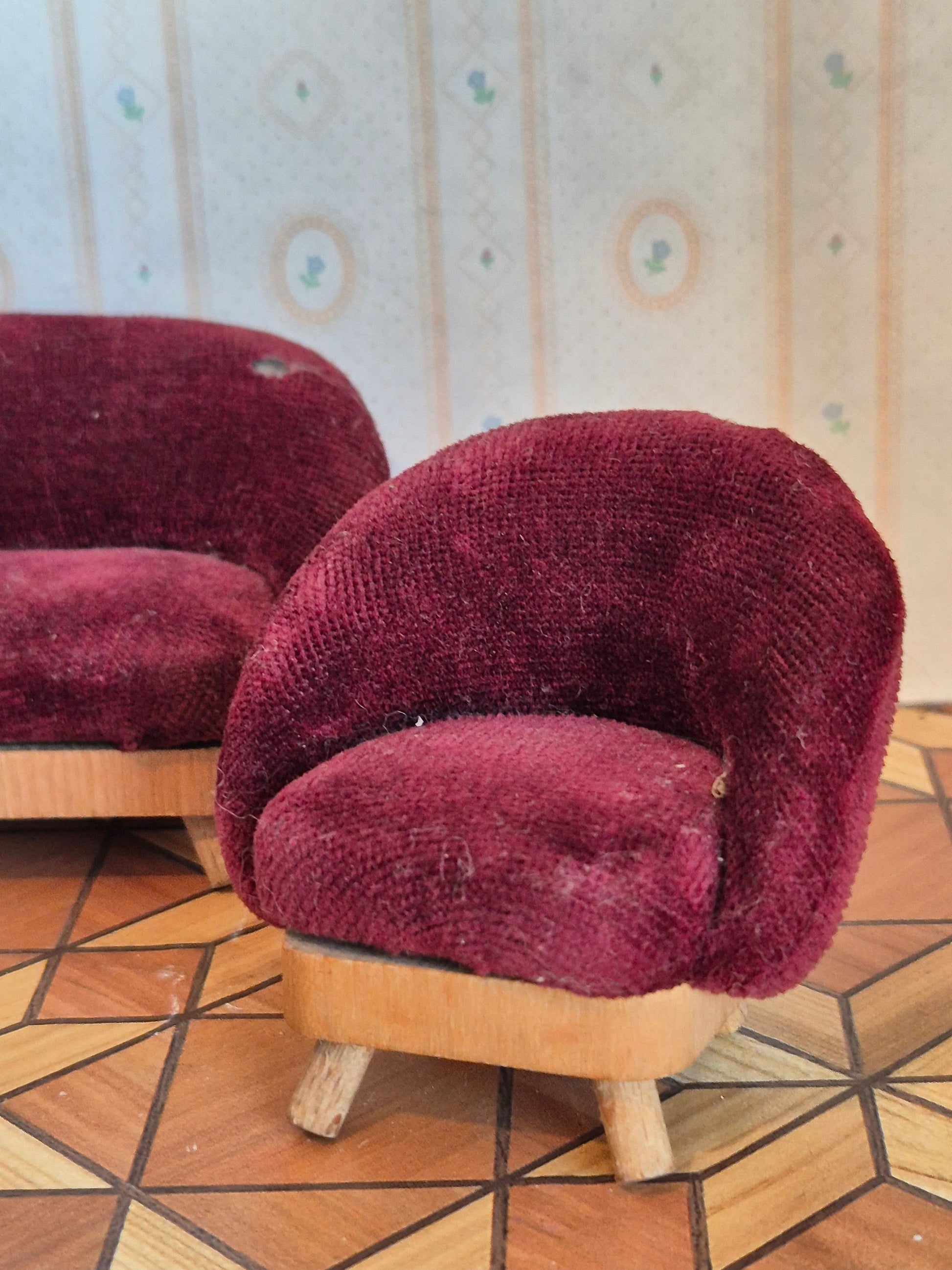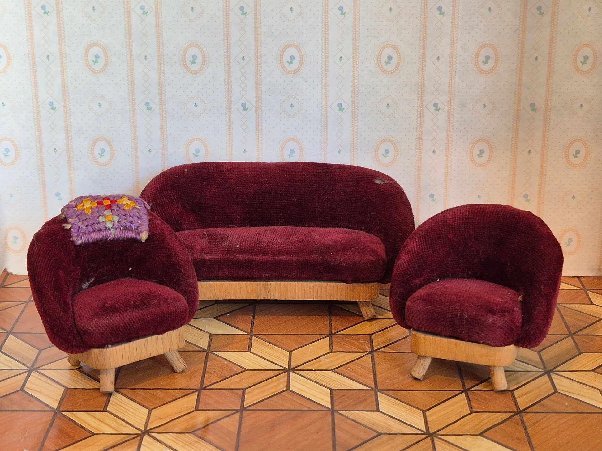 Pænt vintage siddegruppe sæt bestående af sofa og 2 lænestole af det danske designmærke Sallingboe. Det er 1:16.