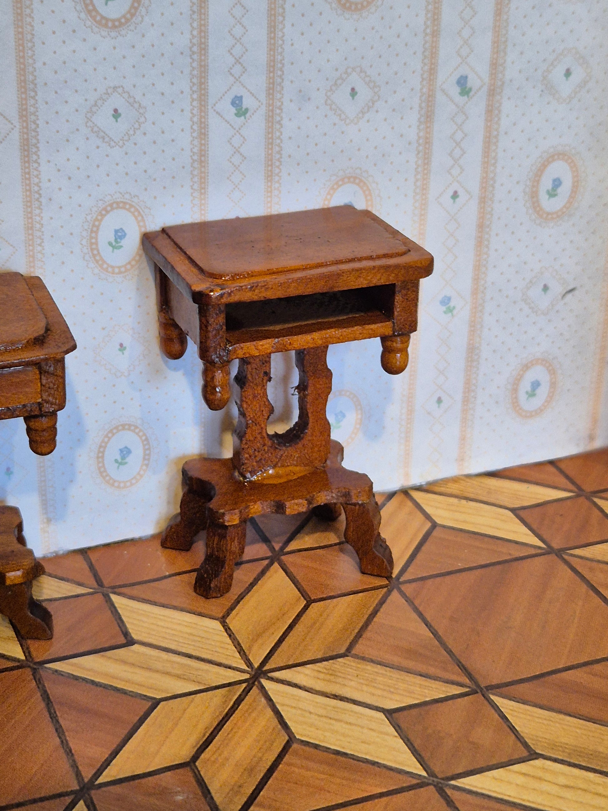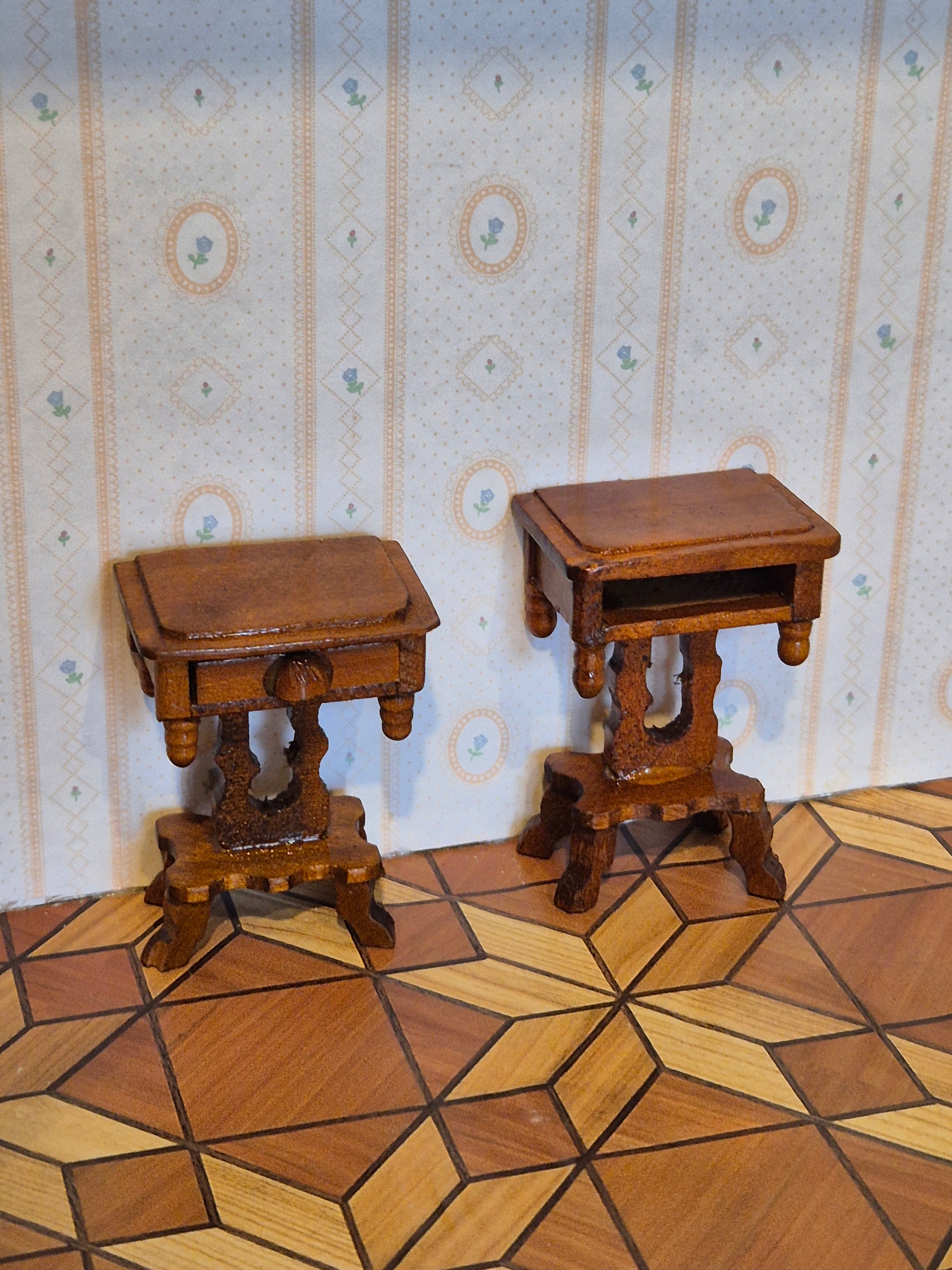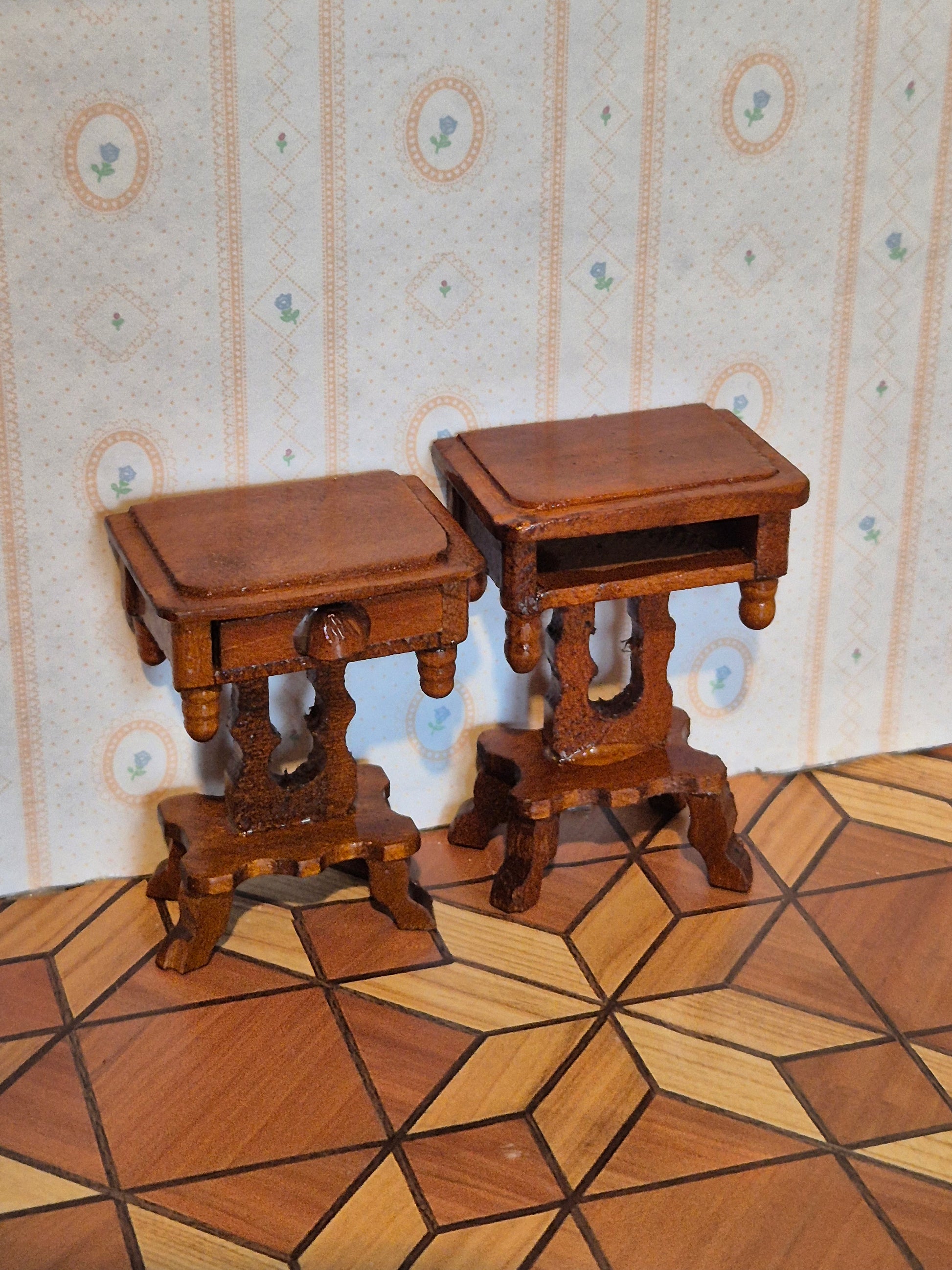 2 lakerede sideborde, pæne med udskæringer og detaljer. Der mangler 1 skuffe. De har forskellige højder.
