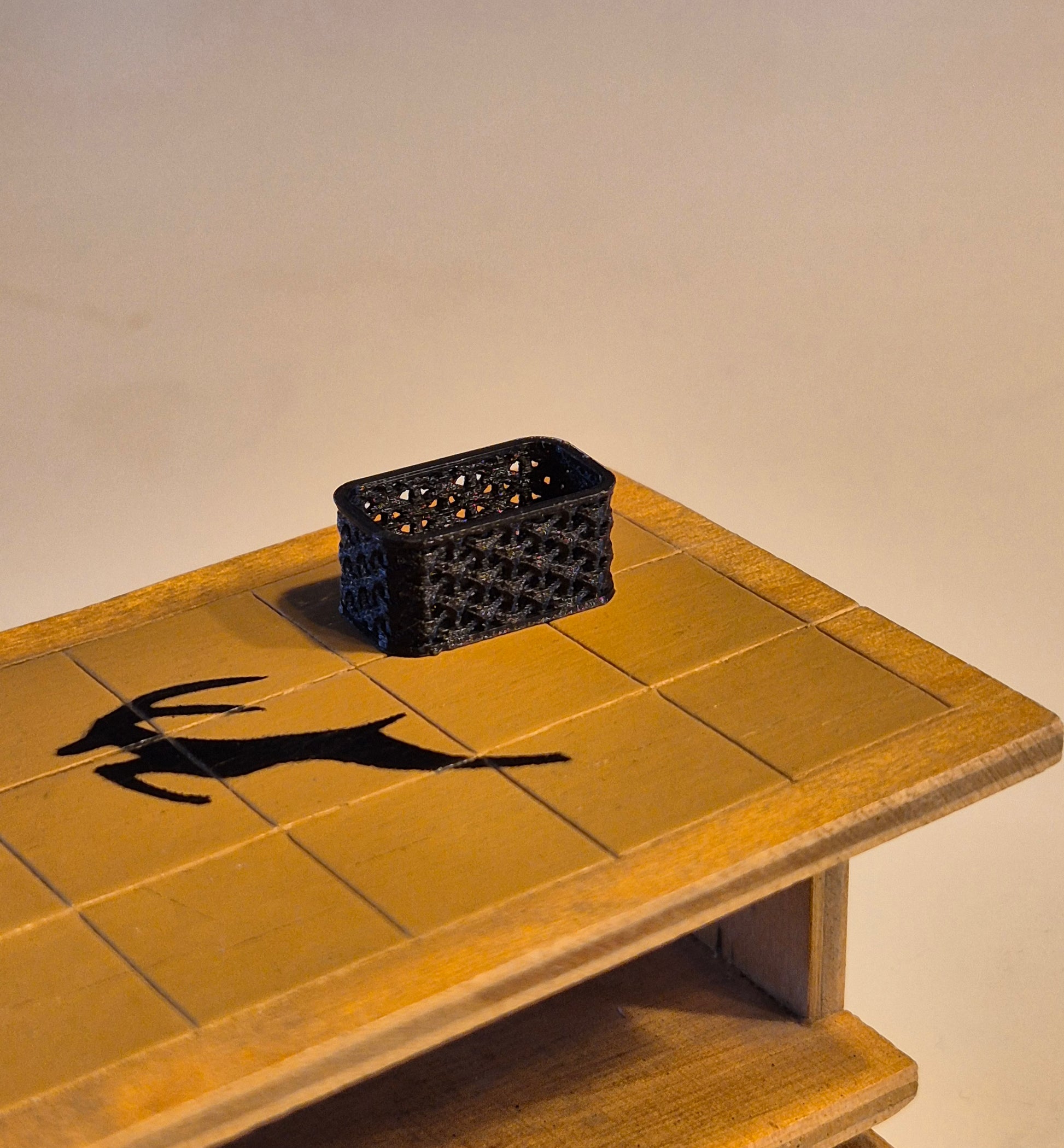 Fin 3D printet Kurv. Den er sort. Lavet af privat miniature designer.