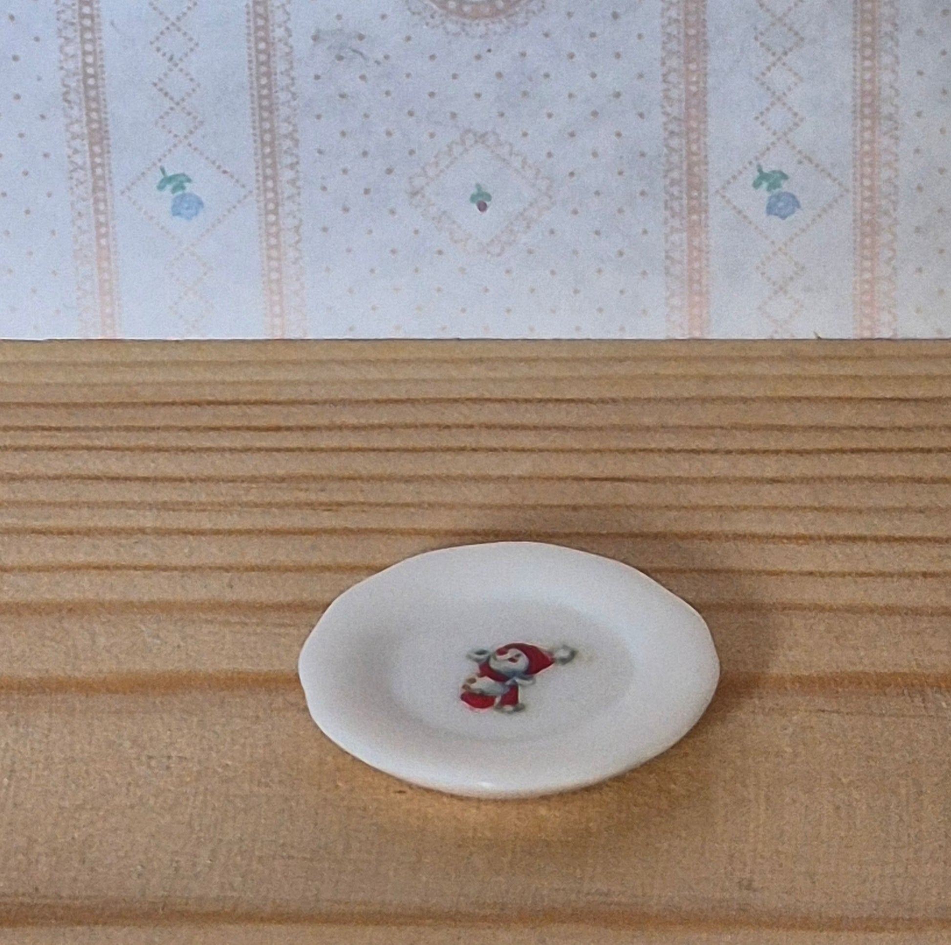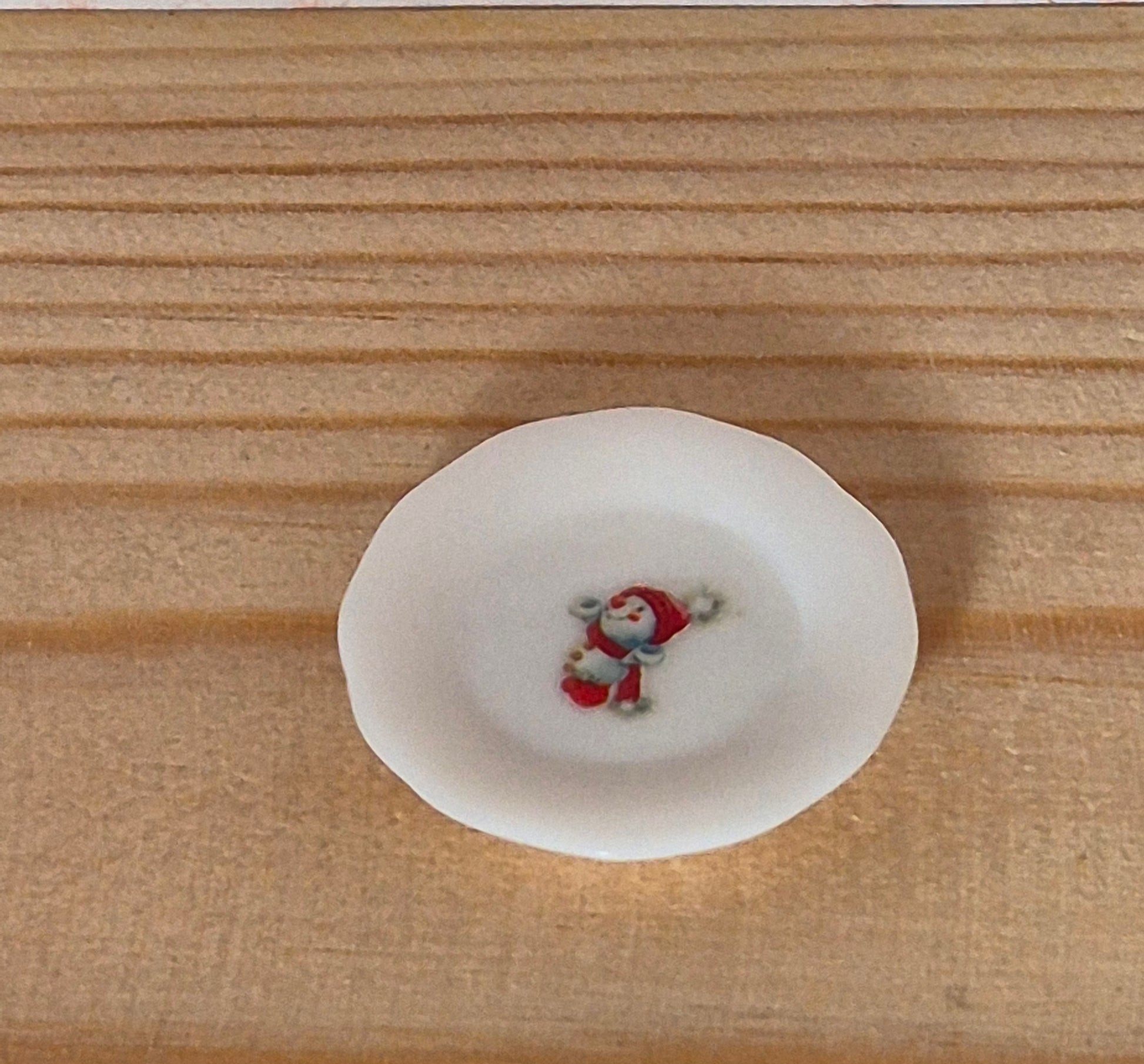 Pæn tallerken af porcelæn med sødt snemand motiv. Den er ca 1,3 cm.