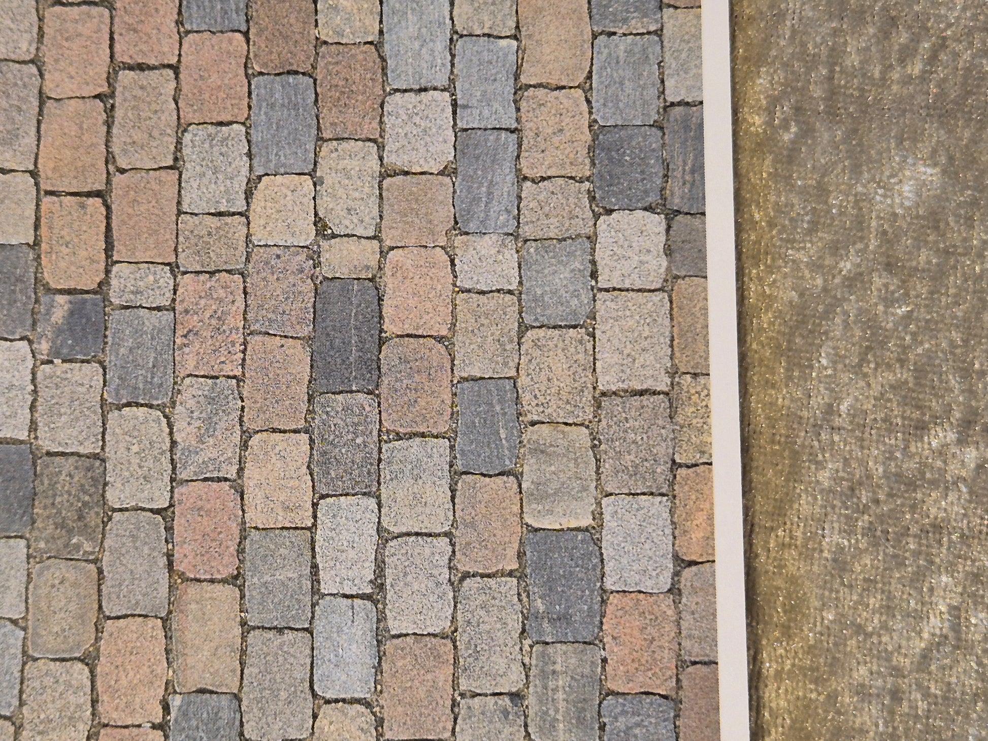 Ark tapet til dukkehusets yderside, facade eller bruges som gulv-tapet. Pænt brostens look i forskellige nuance.