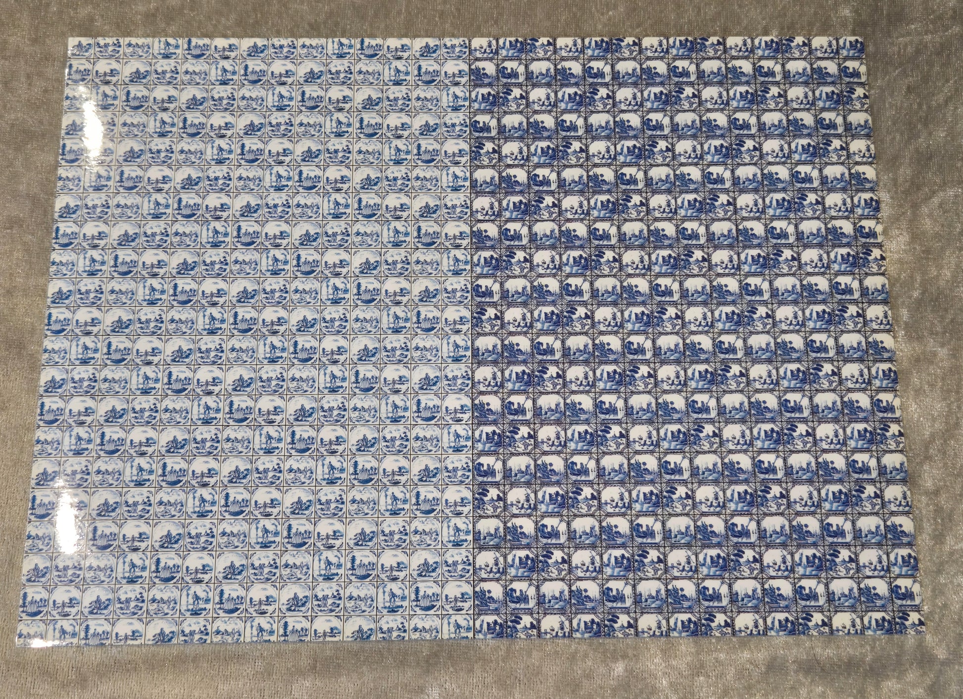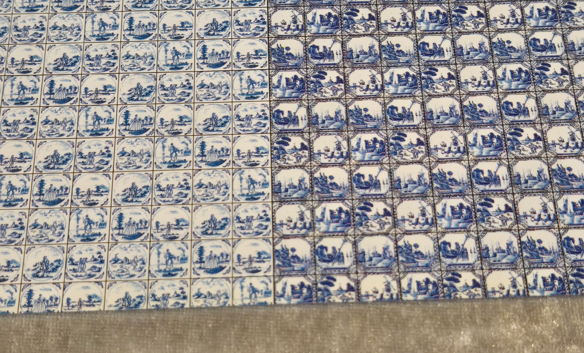 Ark tapet til dukkehuset, pænt og fint glat tapet med kakler eller flise look i blå nuancer på samme ark. .