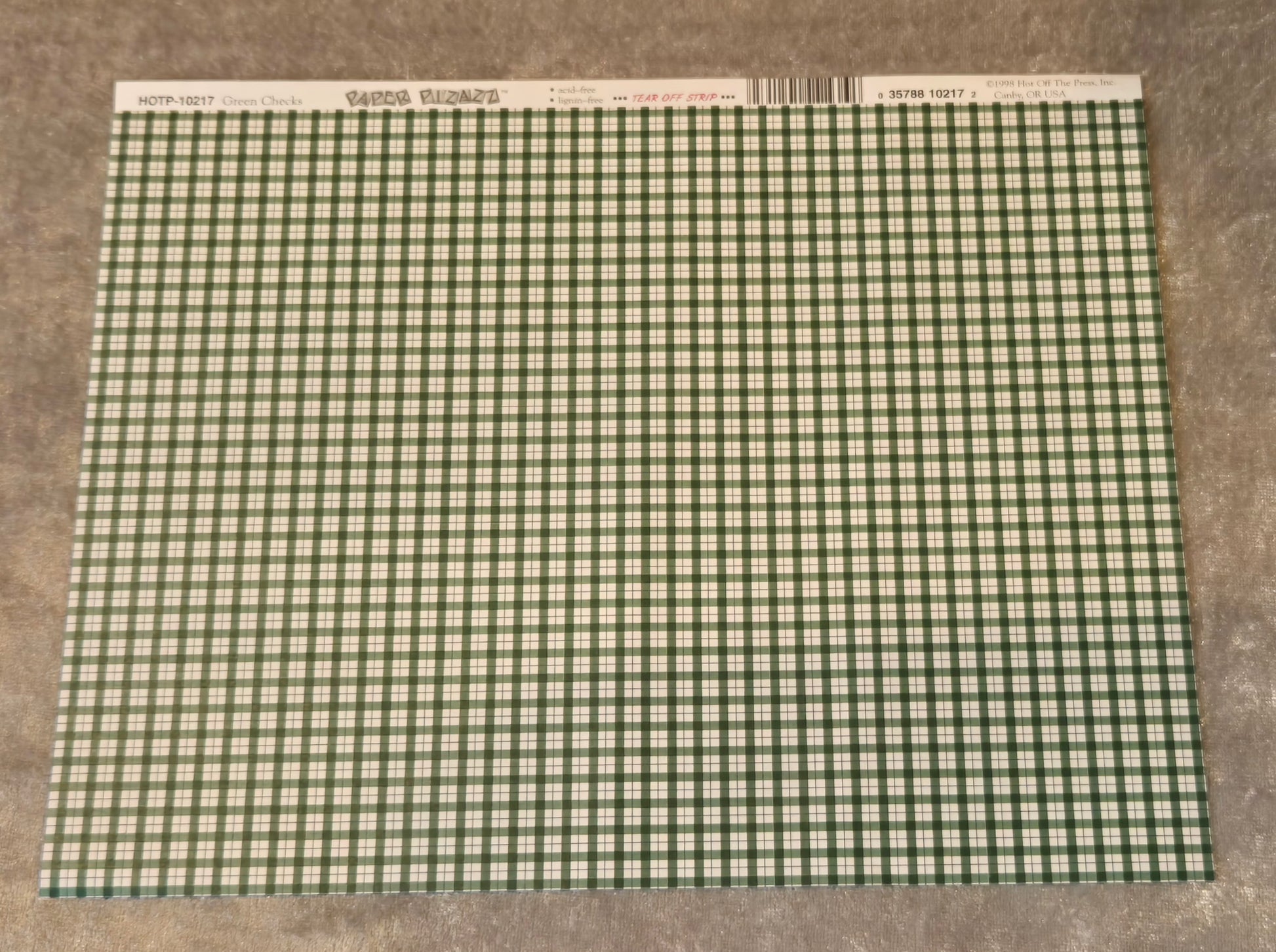 Ark tapet til dukkehuset, grønt ternet tapet. Pænt.