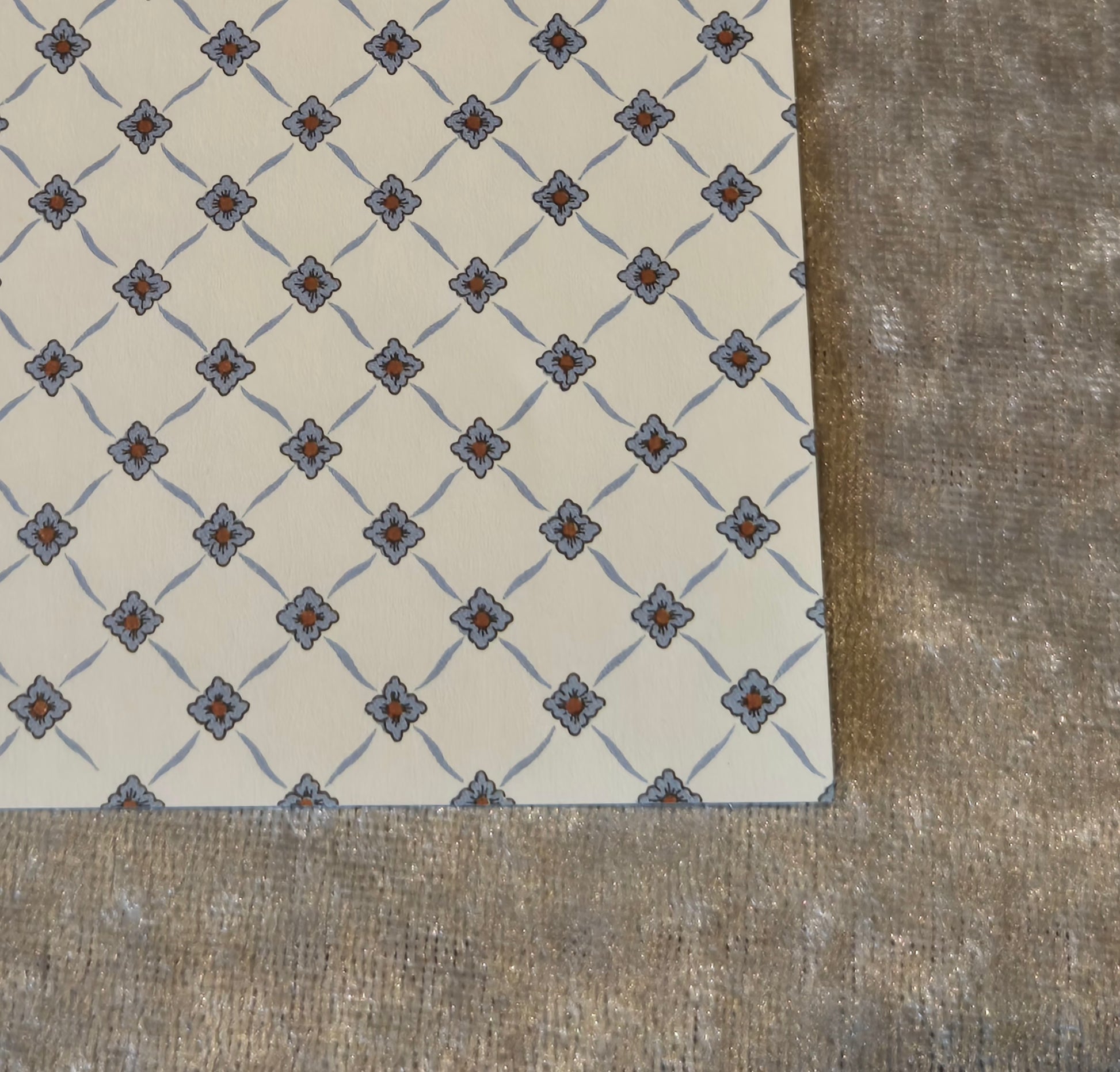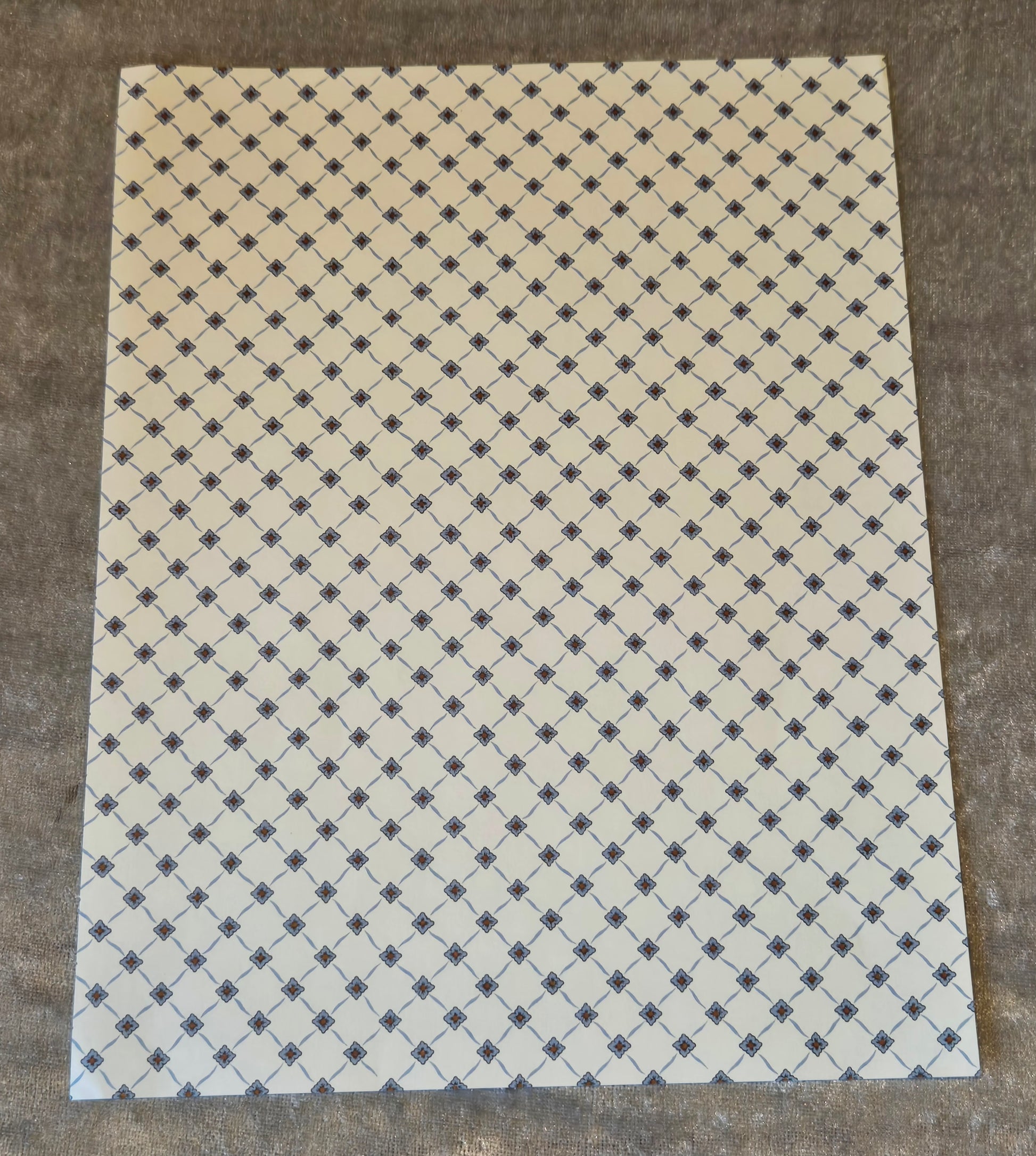 Ark tapet til dukkehuset. Beige med blålig diagonal mønster. Det kan bruges til væg, gulv eller loft.
