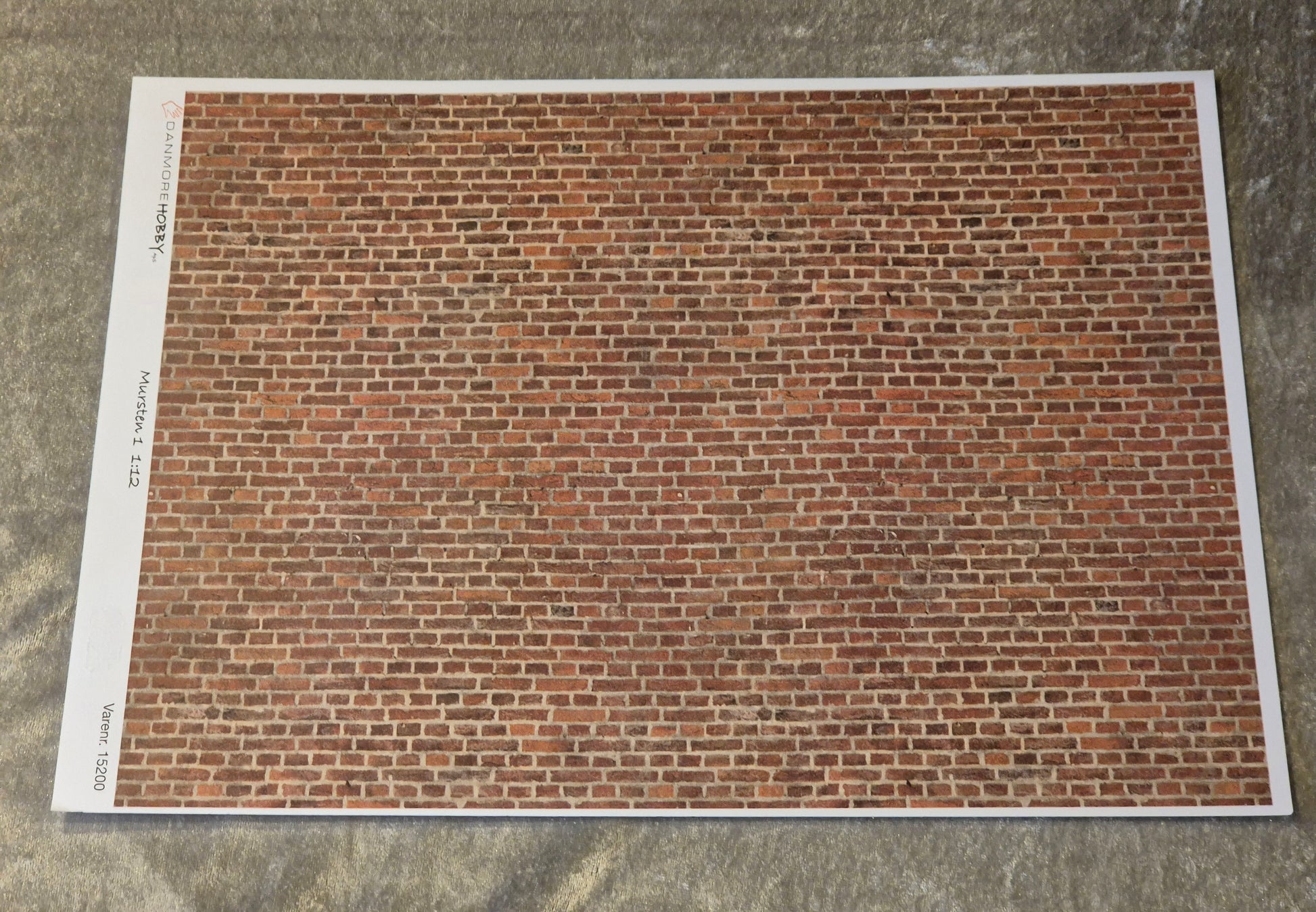 Ark tapet til dukkehusets yderside, facade eller bruges som gulv-tapet. Pænt murstens look i mørk rødlig nuance.