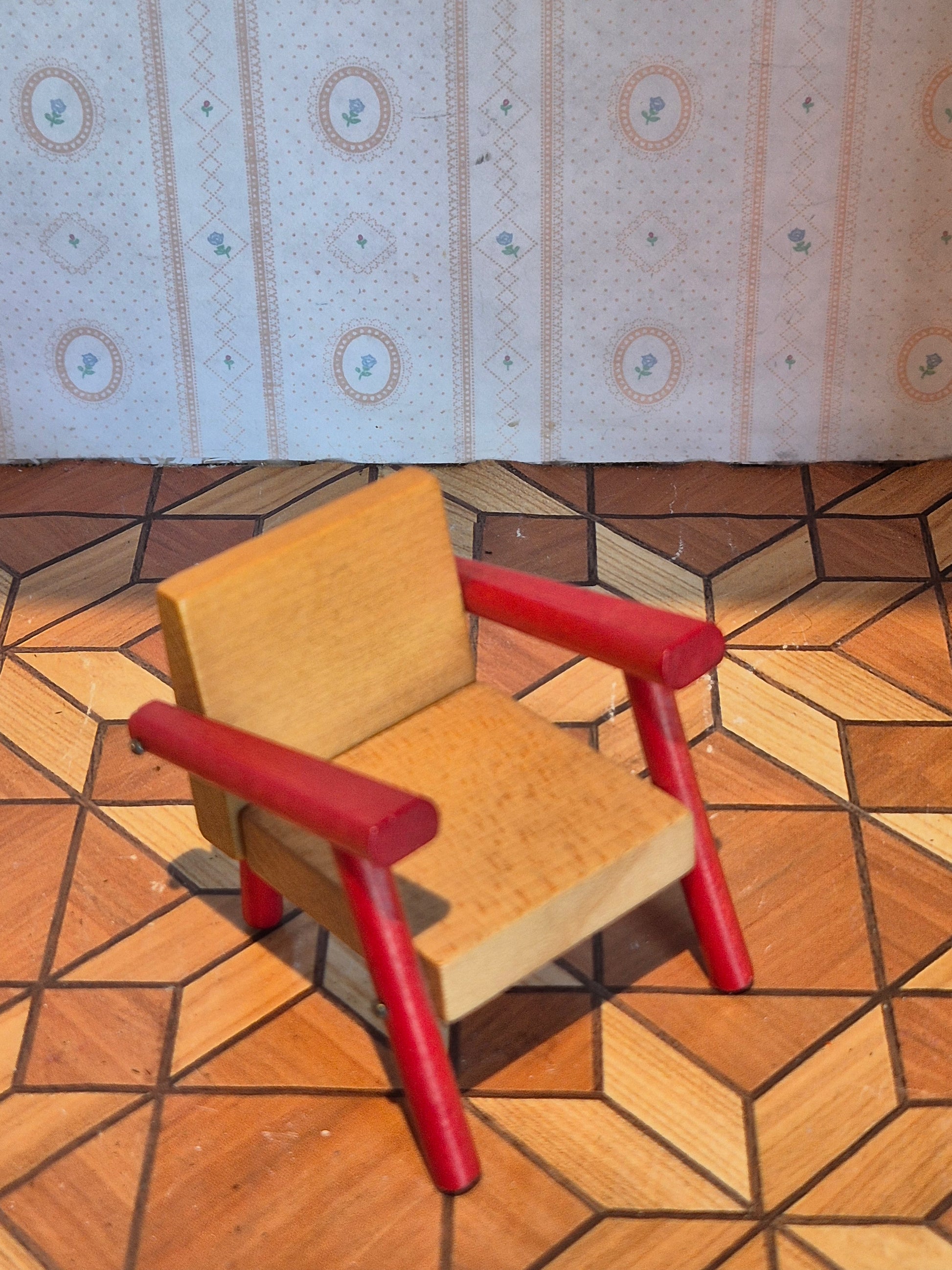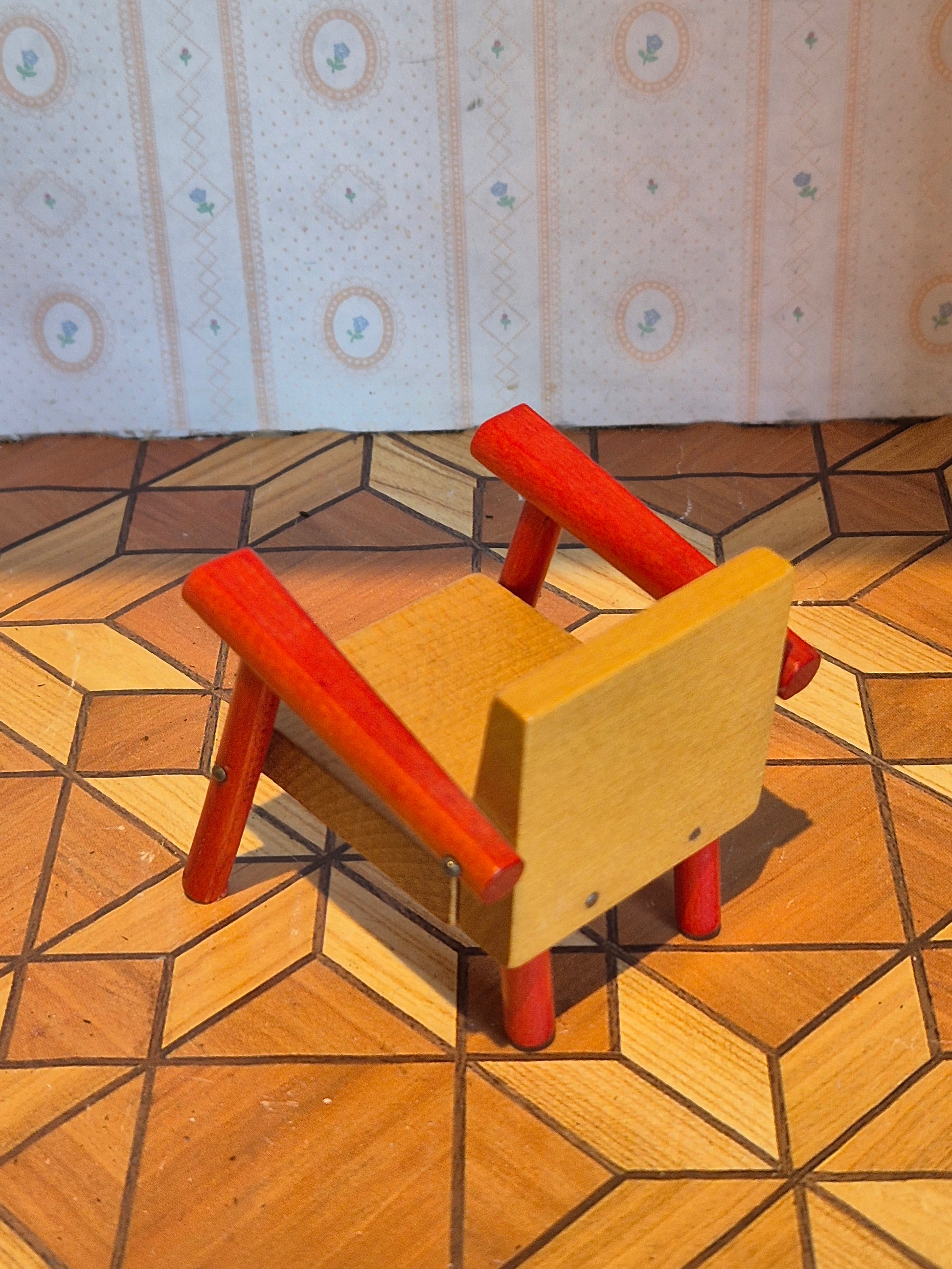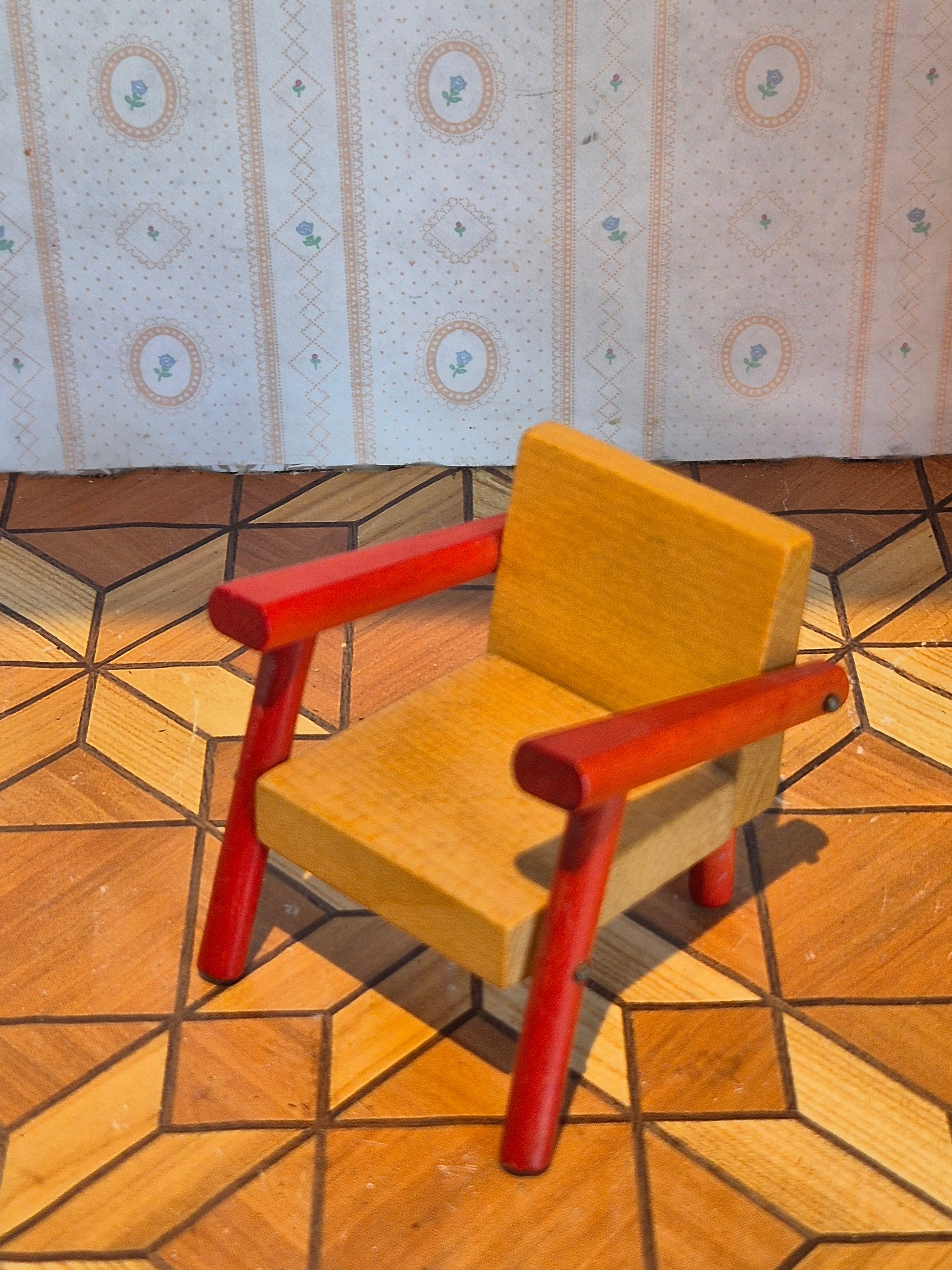 Retro lænestol af tjekkiske dukkehusmærke TOFA. Den er af træ.