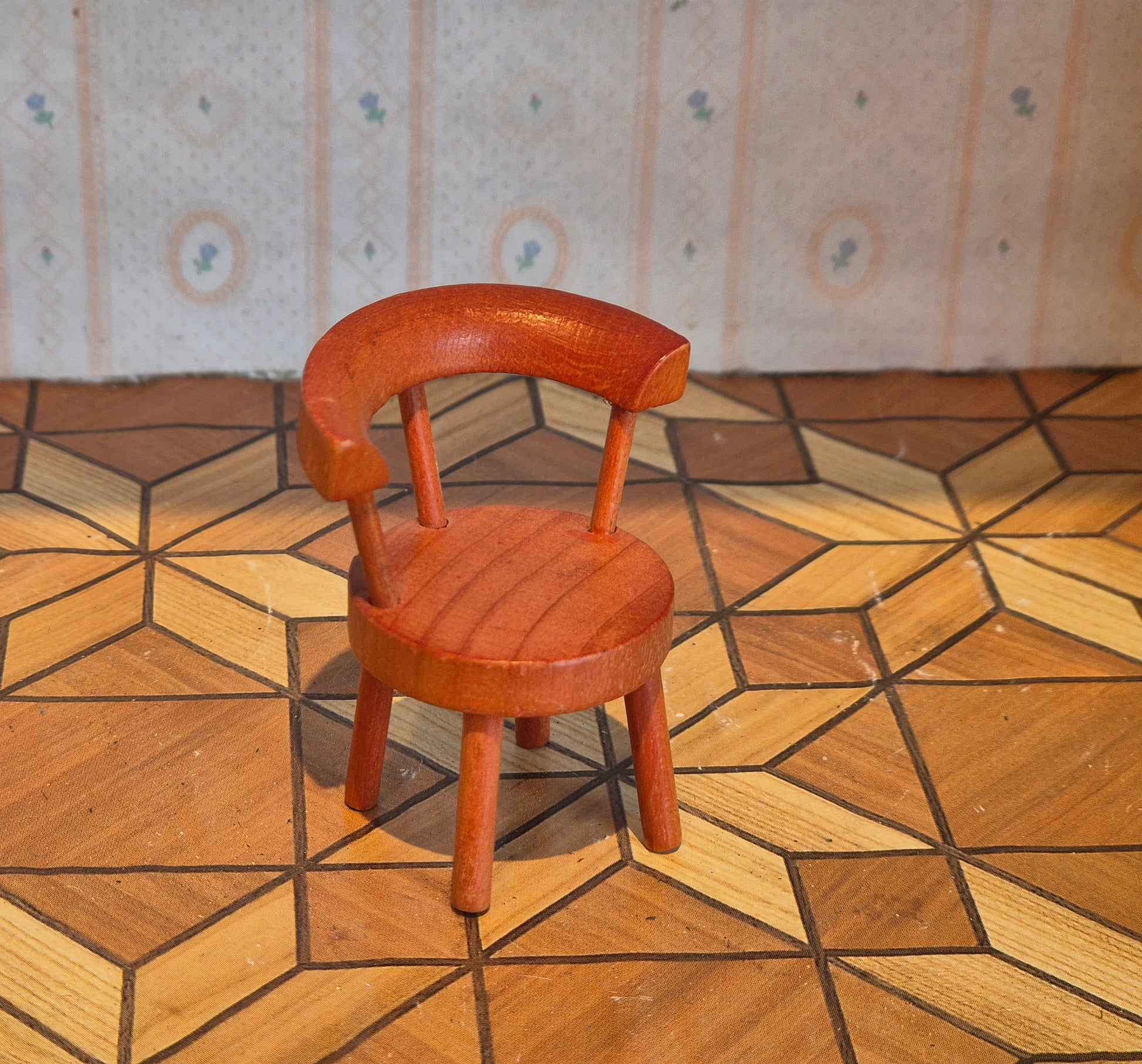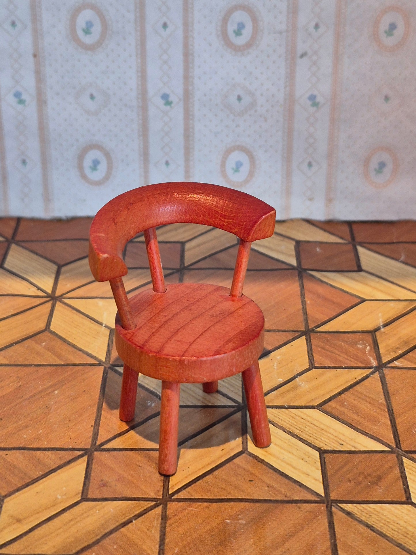Retro rødlig træ krostol af tjekkiske dukkehusmærke TOFA. Det er str 1:16.
