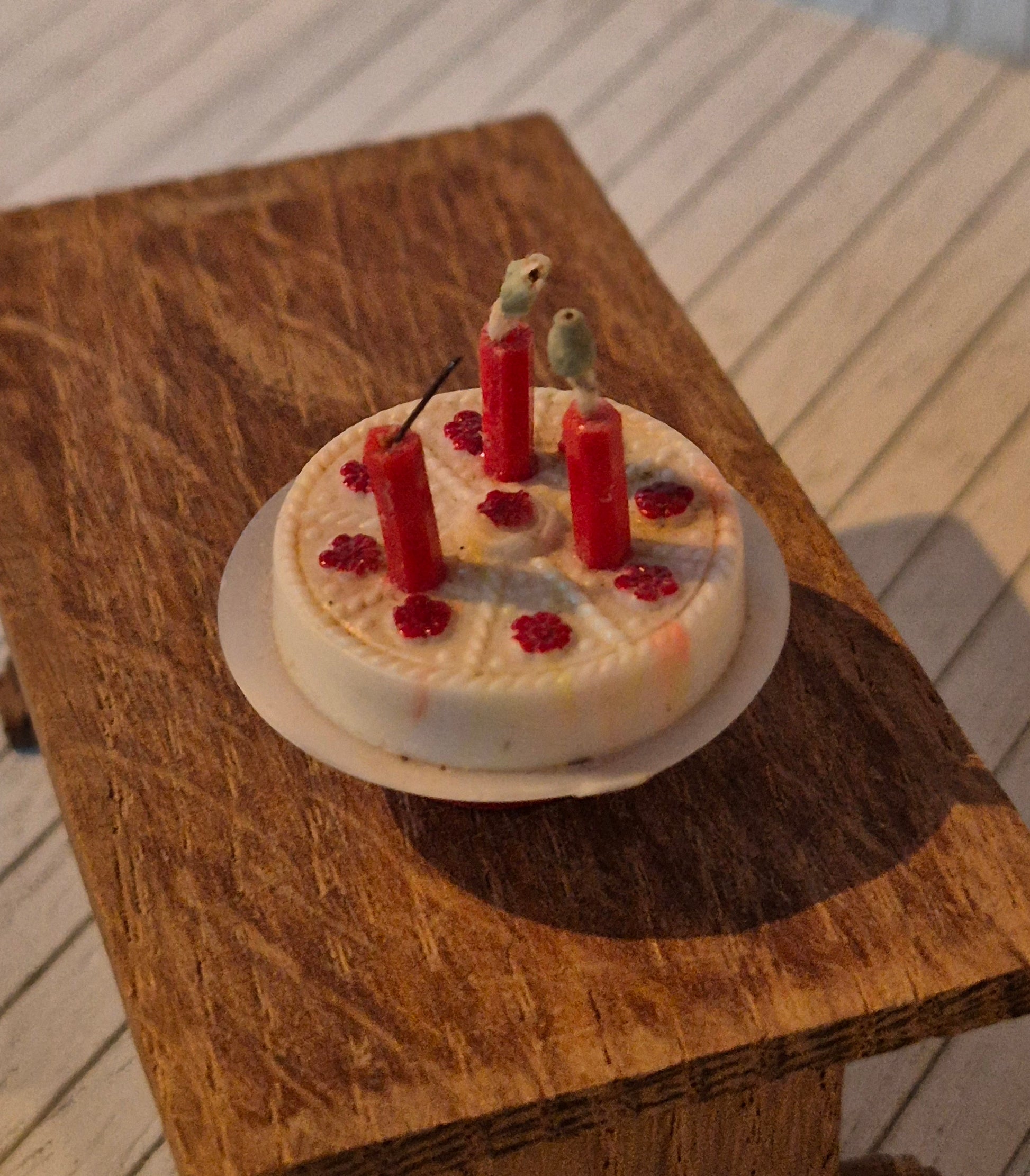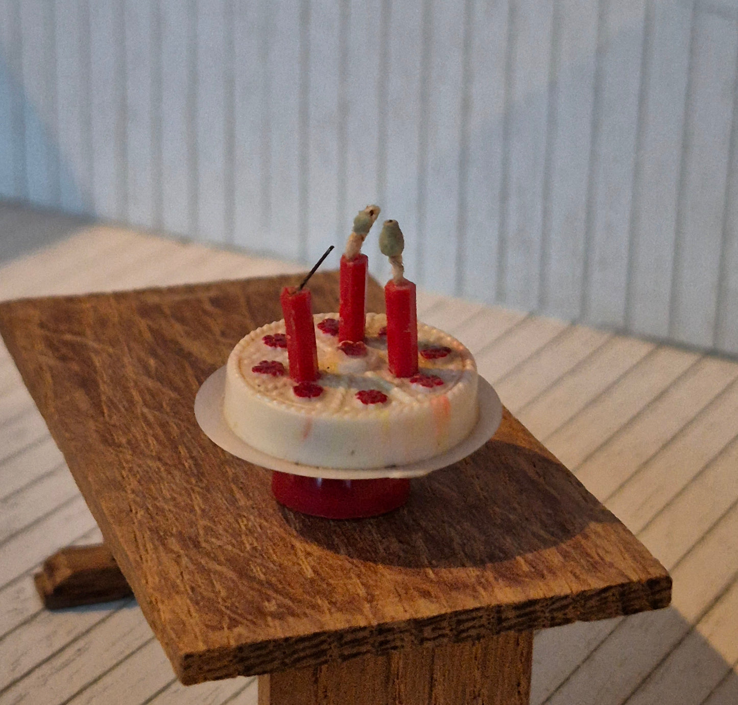 Layer cake with candles by Caroline Home, British vintage brand for dollhouses size 1:18.