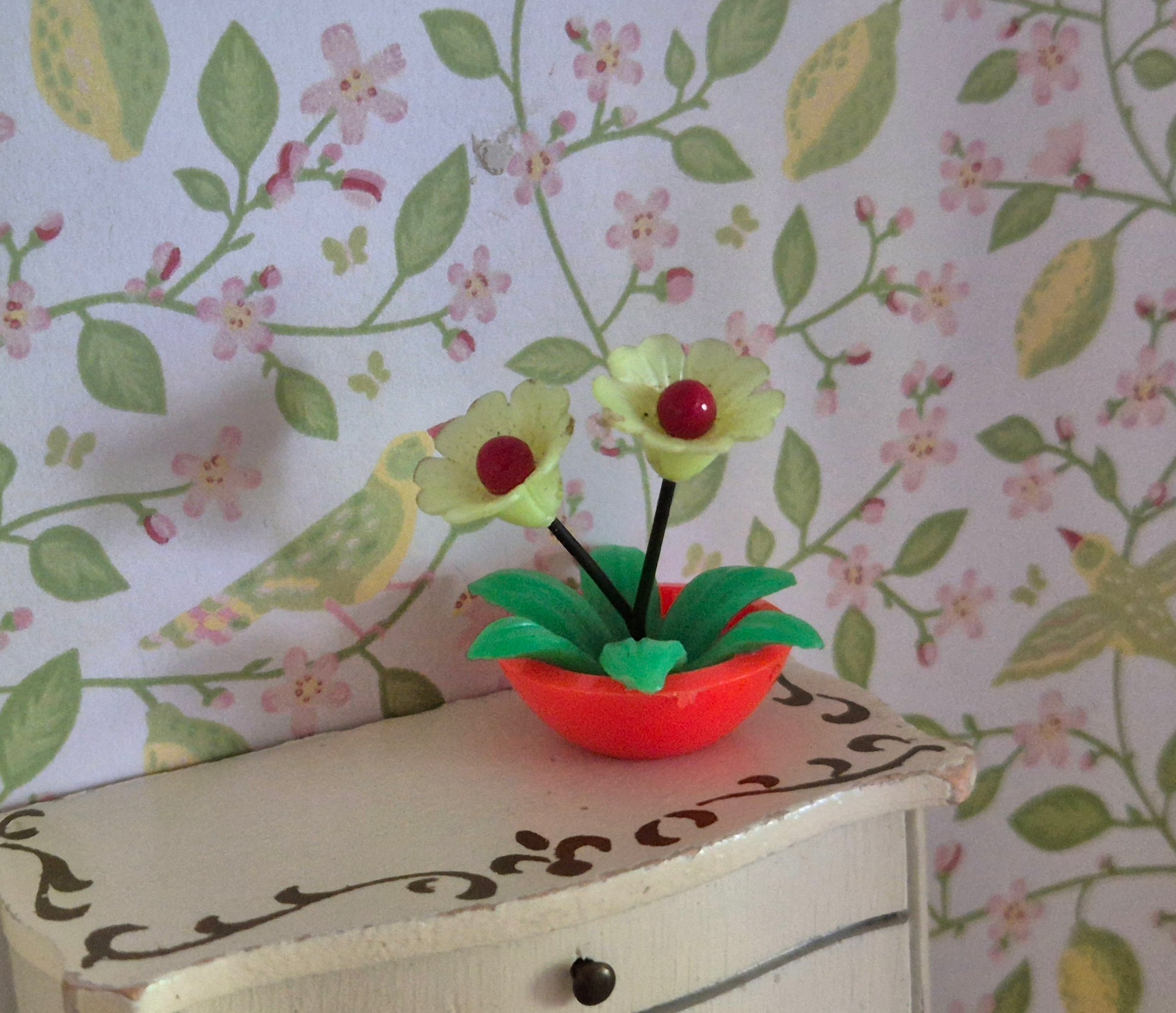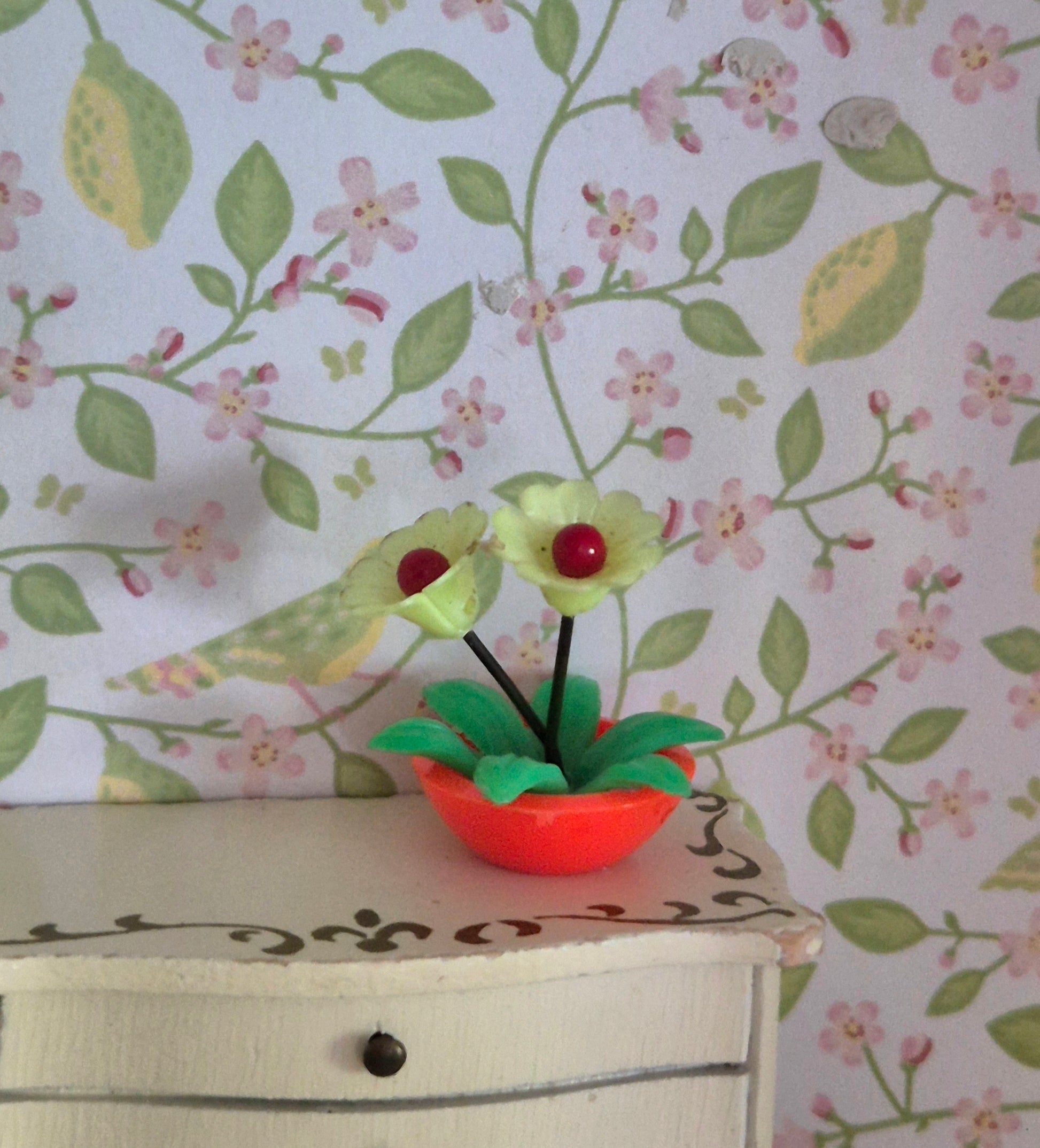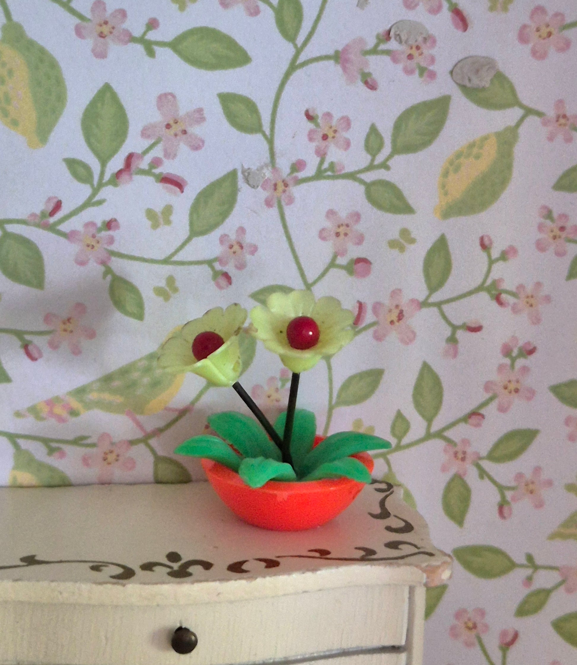 Fin og smuk vintage blomst i orange skål, der kan bruges til 1:16 - 1:12.