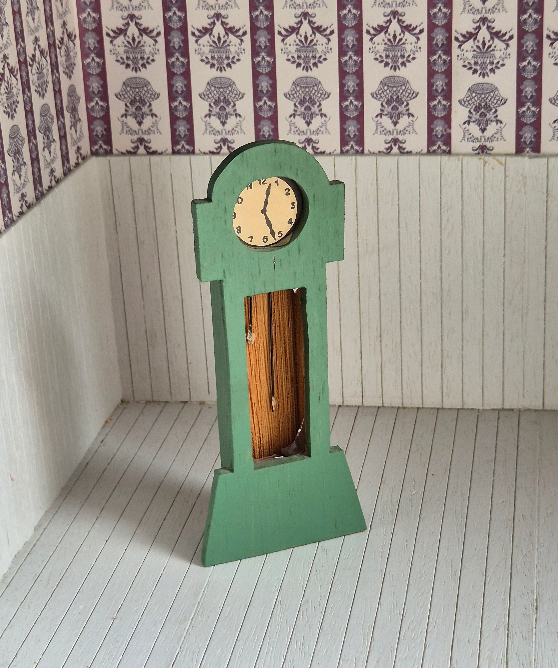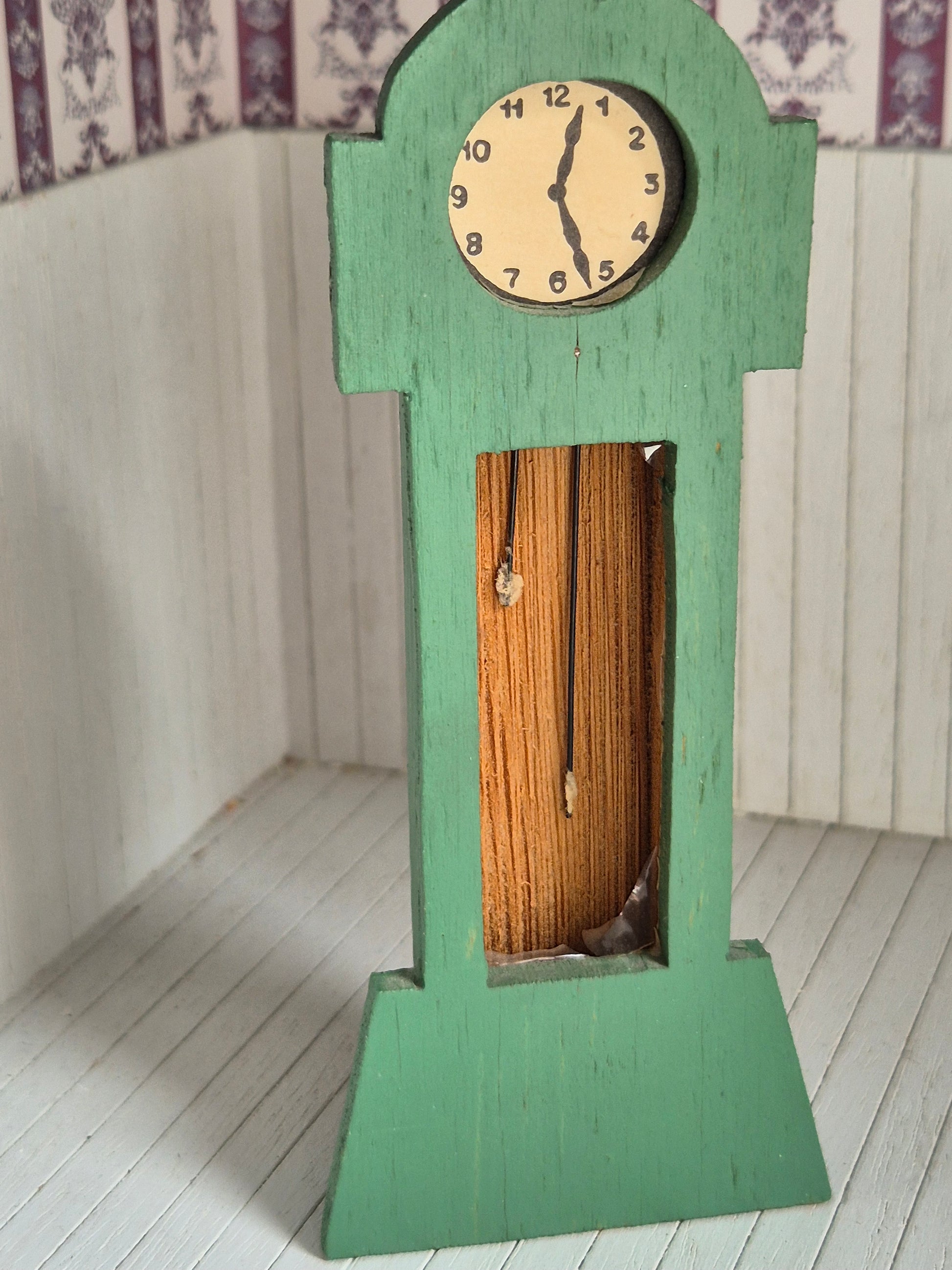 Vintage ur 1:16 af træ. Det er ældre. Udmærket stand med en del patina