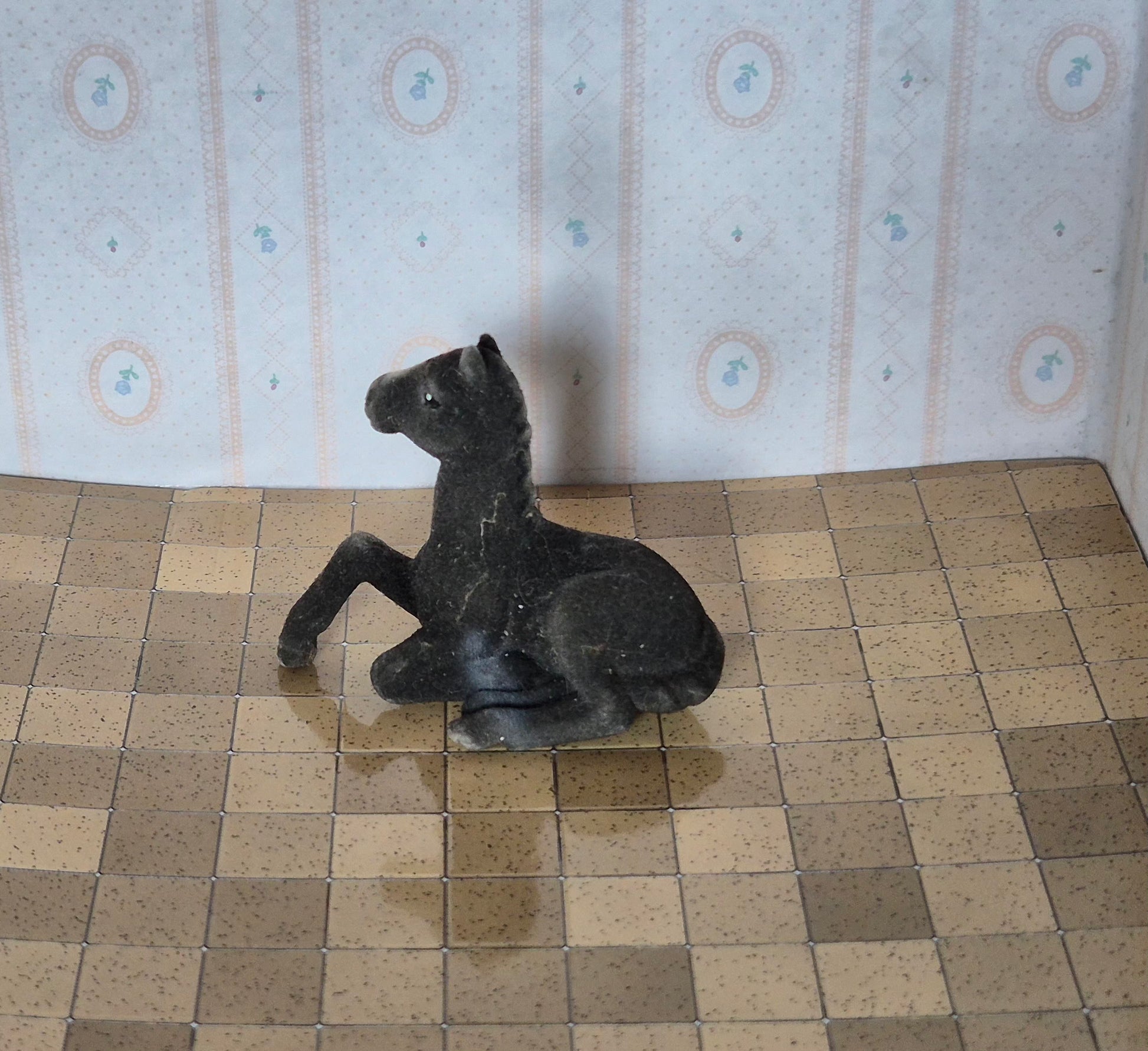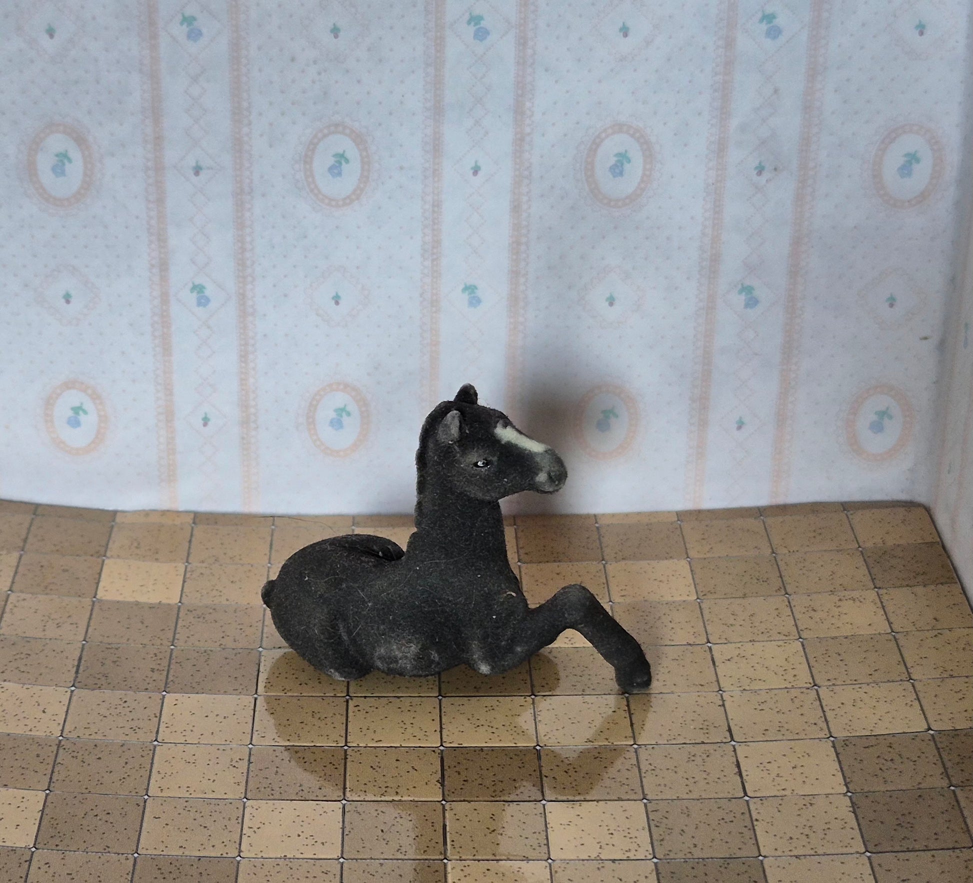 Pænt mørkt føl der ligger ned i str 1:12. Udmærket stand. Det er en form for plast.