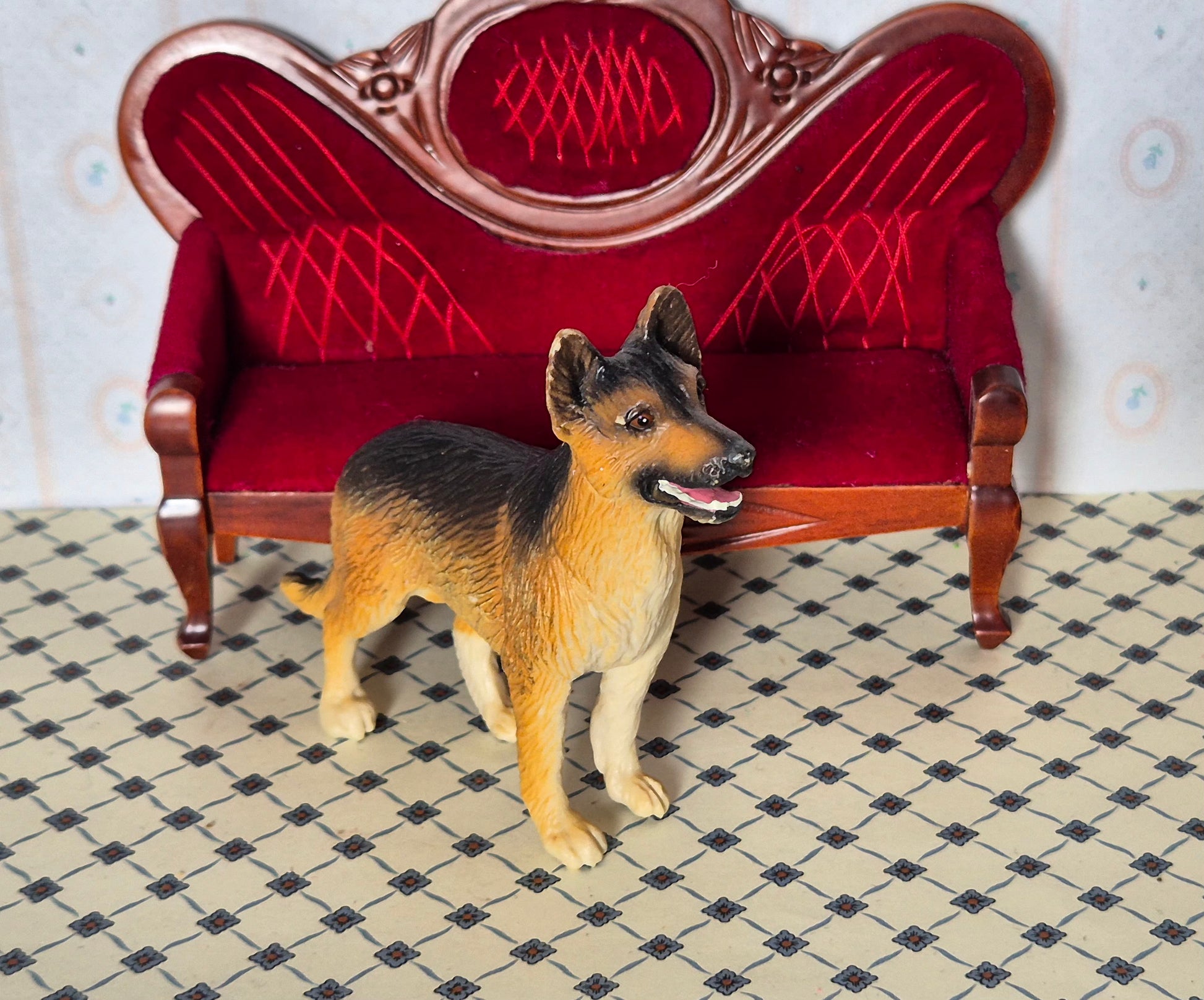 1:12 kæledyr, hund af plastik. Udmærket stand.