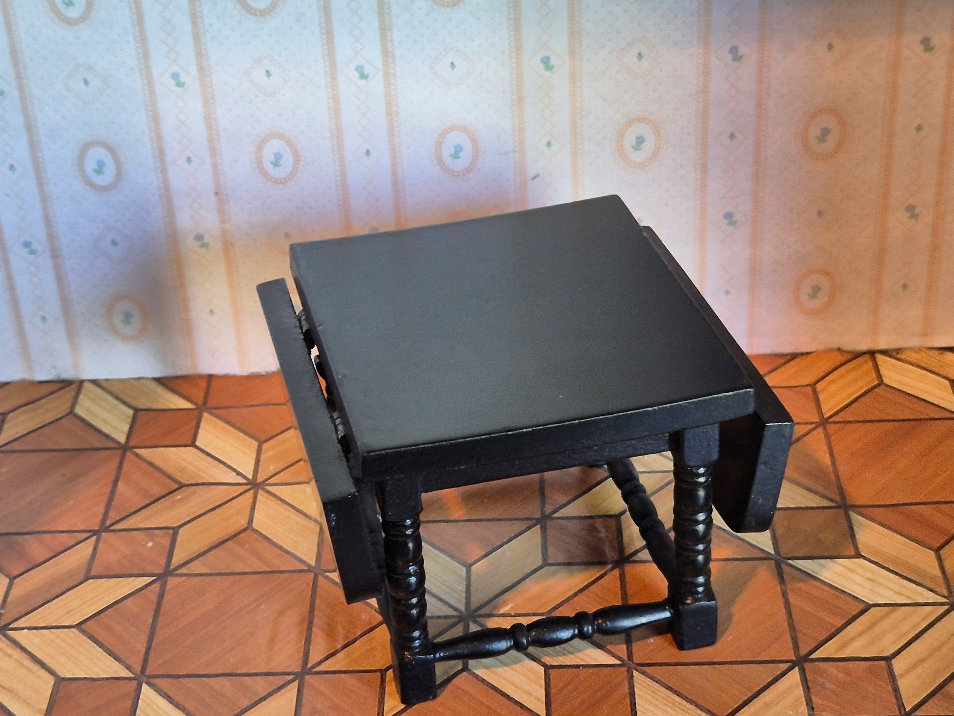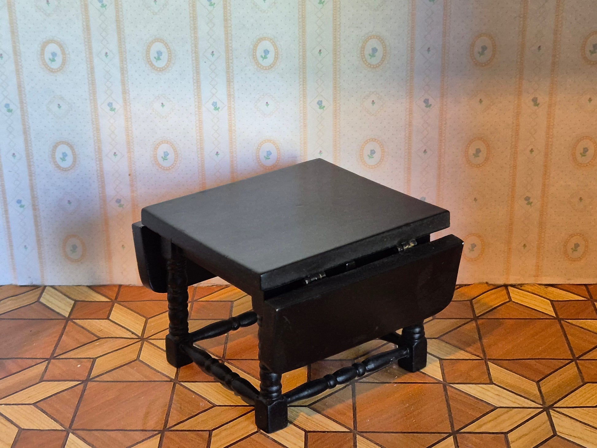 1:12 pænt sort bord der kan klappes op i begge sider og forlænges.