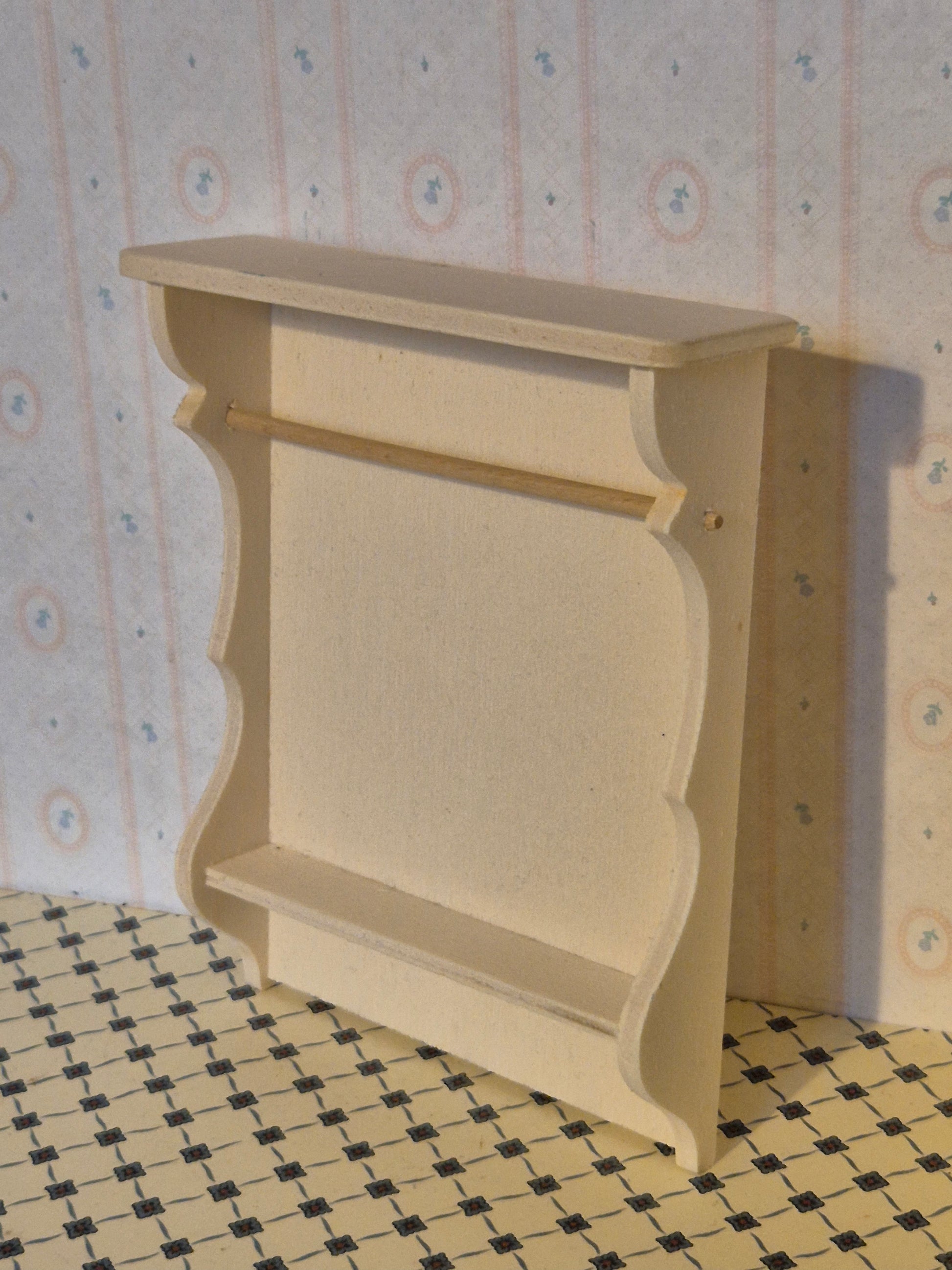 Pæn og fin 1:12 hylde af træ til ophæng på væggen. Den er 1:10 - 1:12.