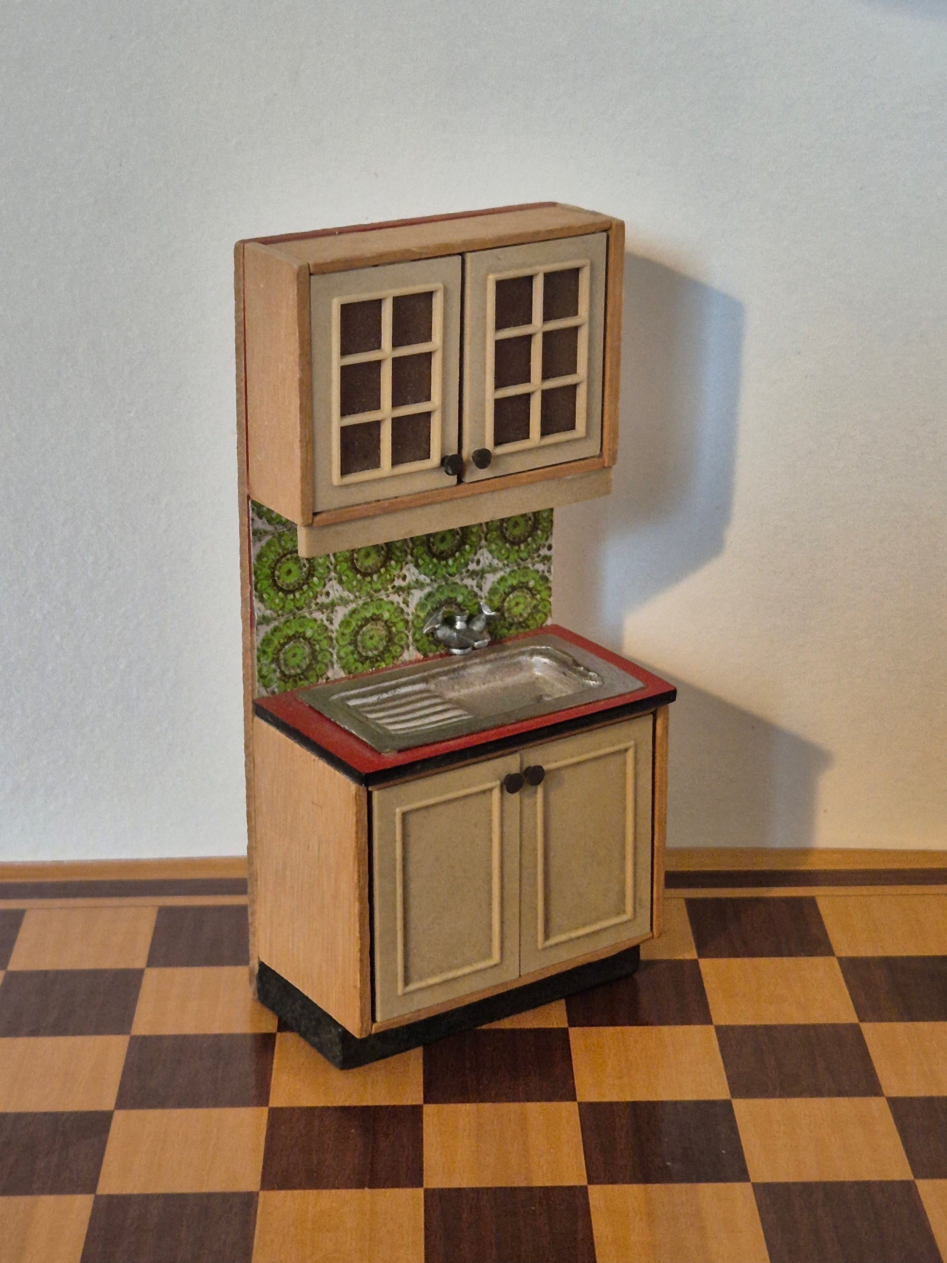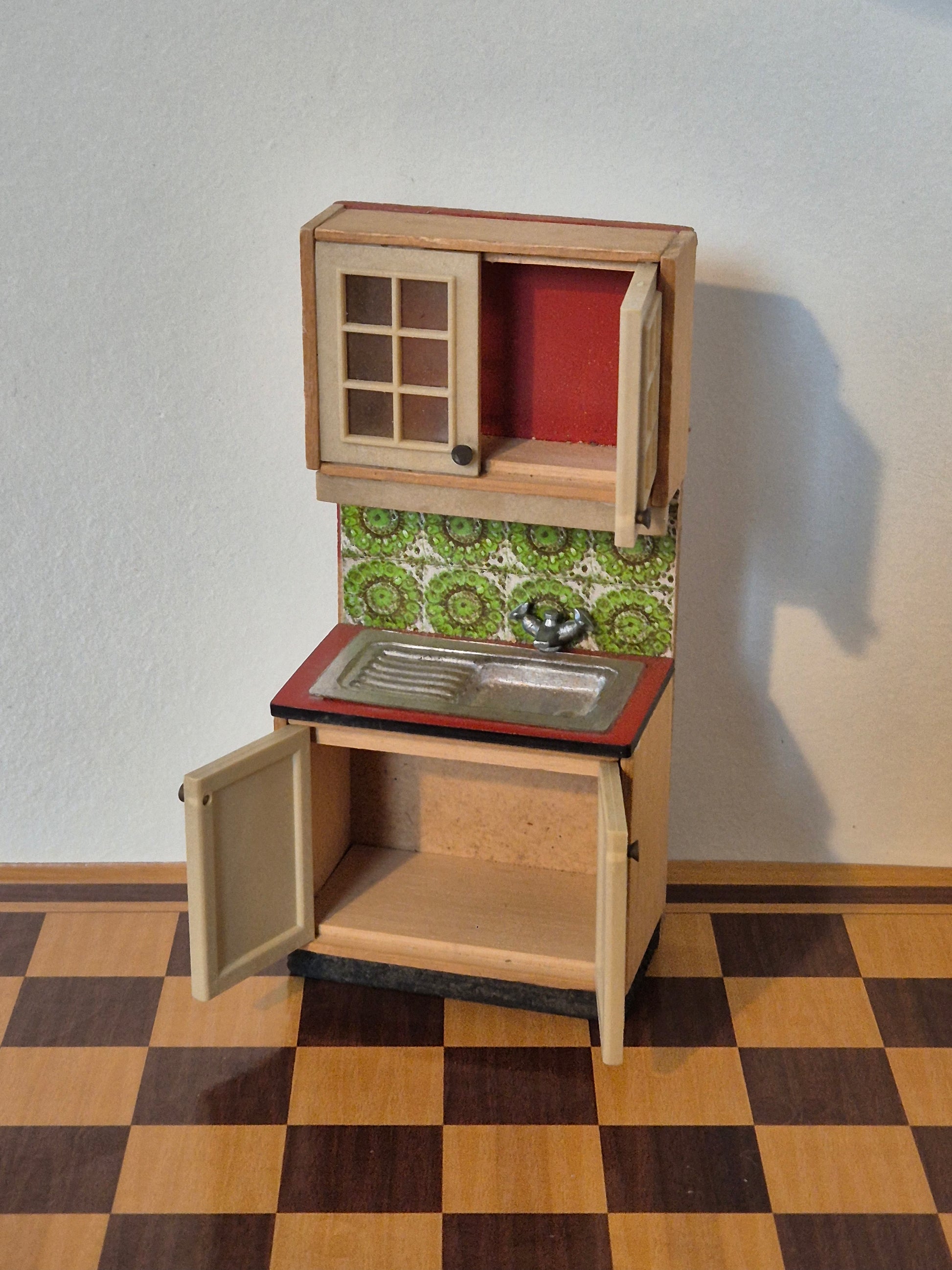 Vintage køkkenvask element til dukkehus køkkenet af mærket Lisa af Danmark. Det er i udmærket stand. Det er intakt med patina og tegn på brug.