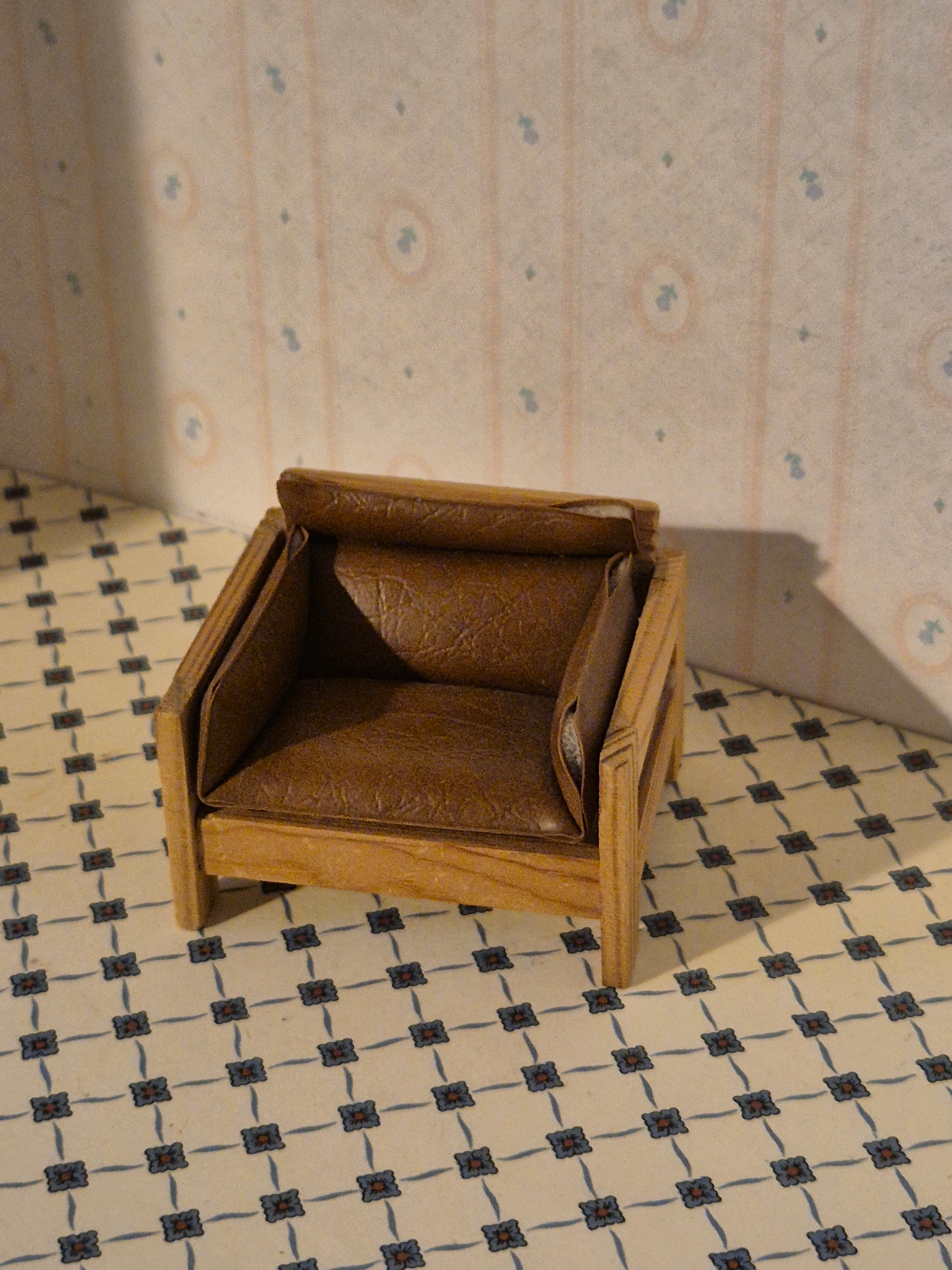Vintage Lisa af Danmark lænestol af træ med lædersæder. Der er patina, brugsspor og nogle af stederne, nogle af syningerne er gået op.
