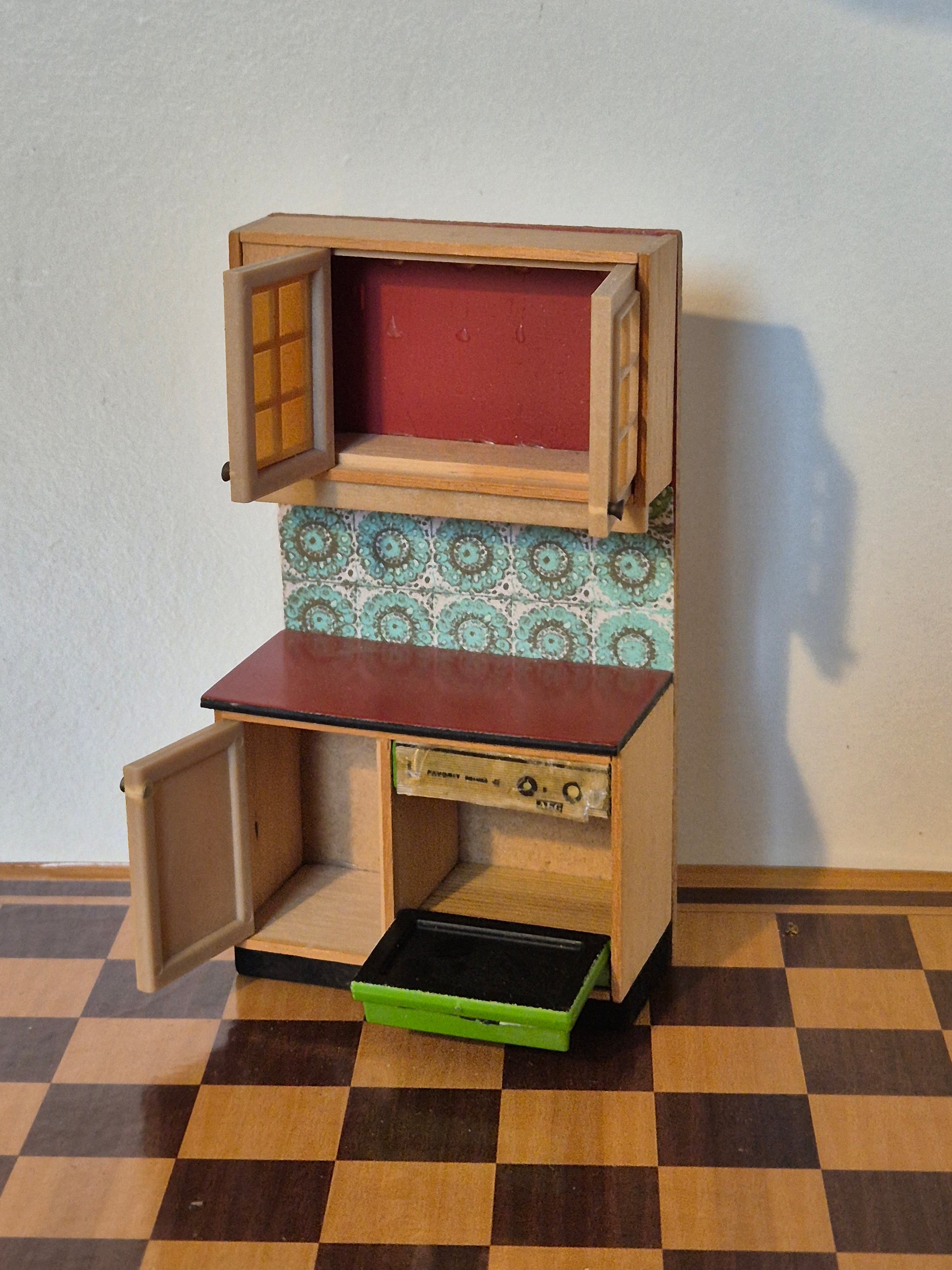 Pæn opvaskemaskine element til Lisa af Danmark dukkehus køkkenet. Det er i den grønne serie, intakt og i udmærket stand.