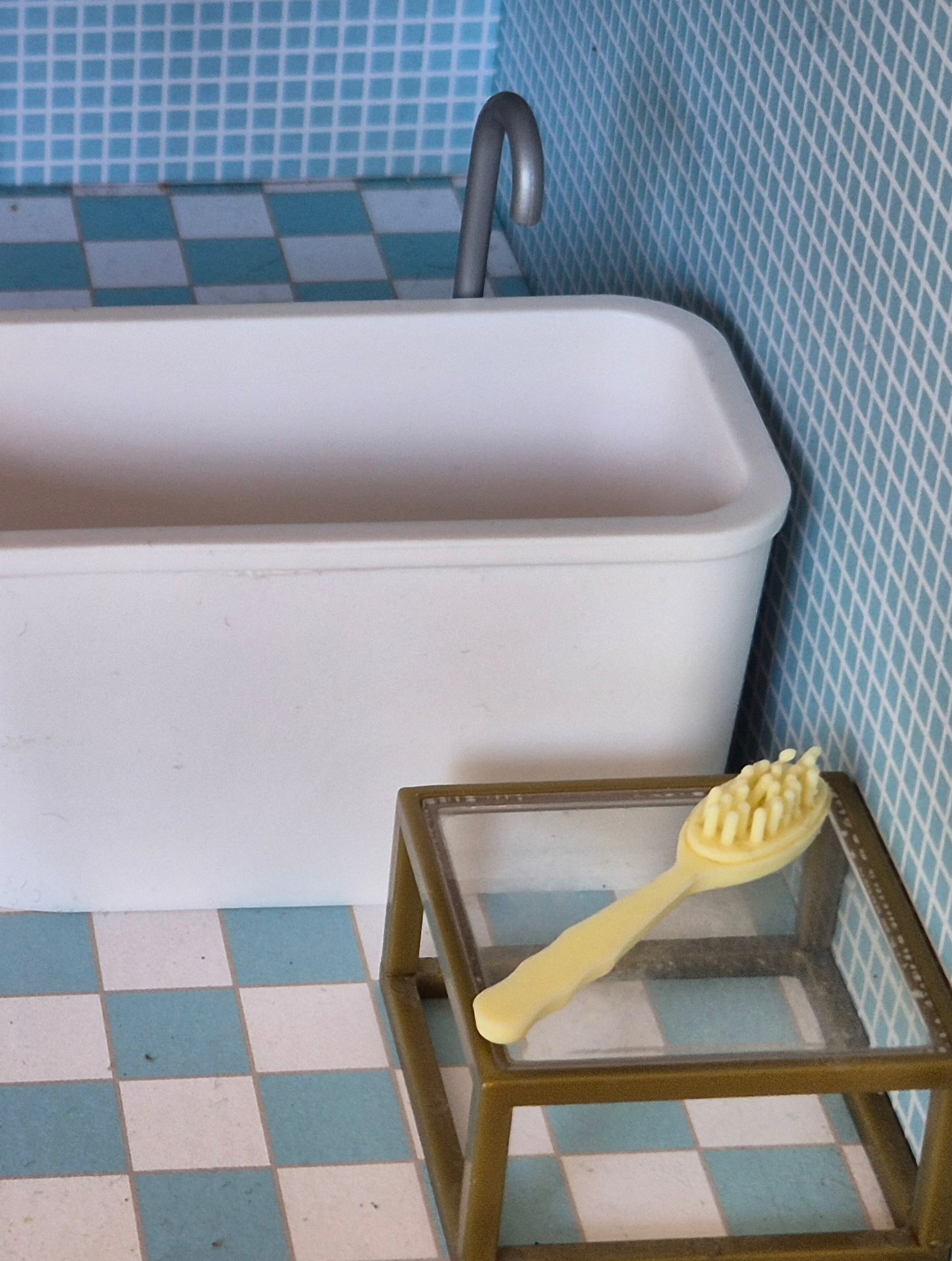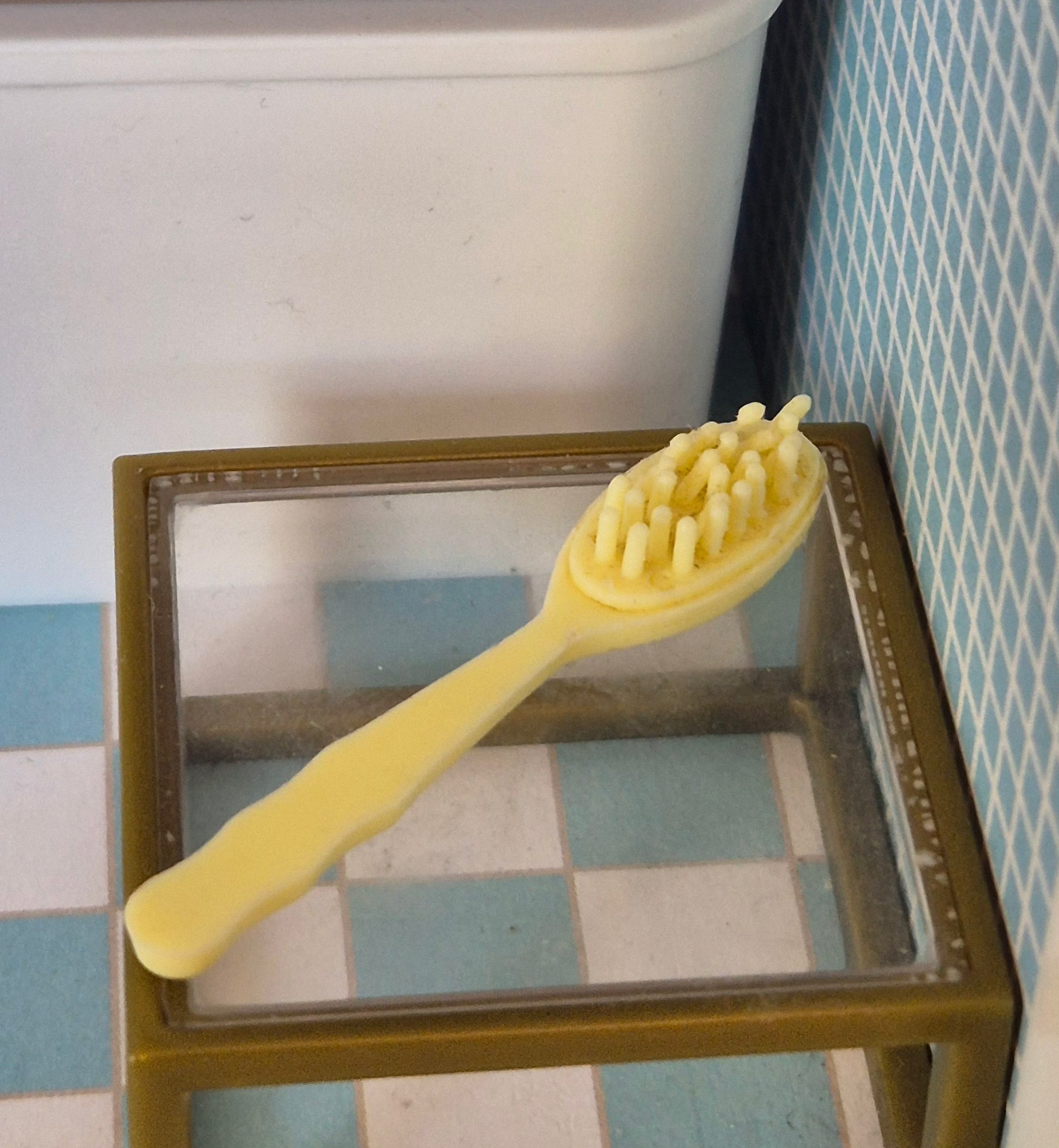 Fin beige vintage Lundby badebørste af plast til badeværelset