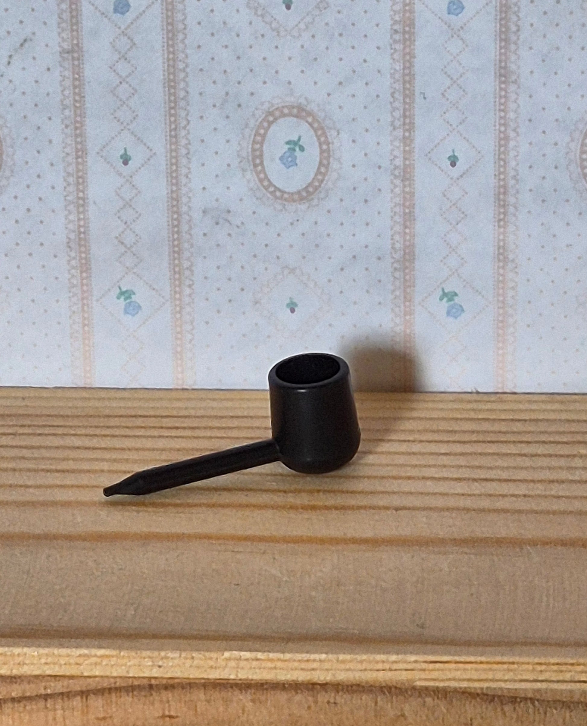 Stor sort pibe af plast. Den er ca 3 cm lang.