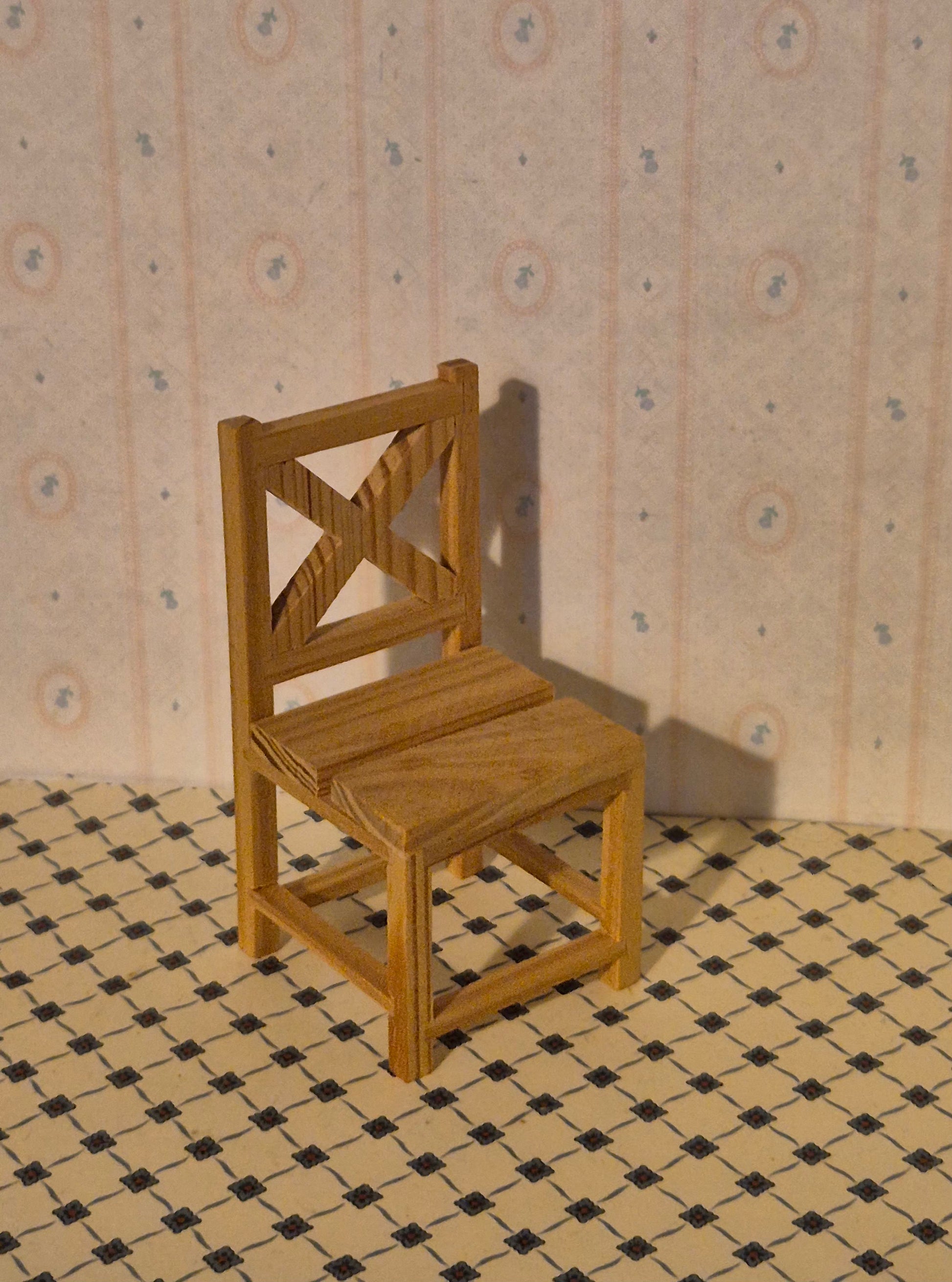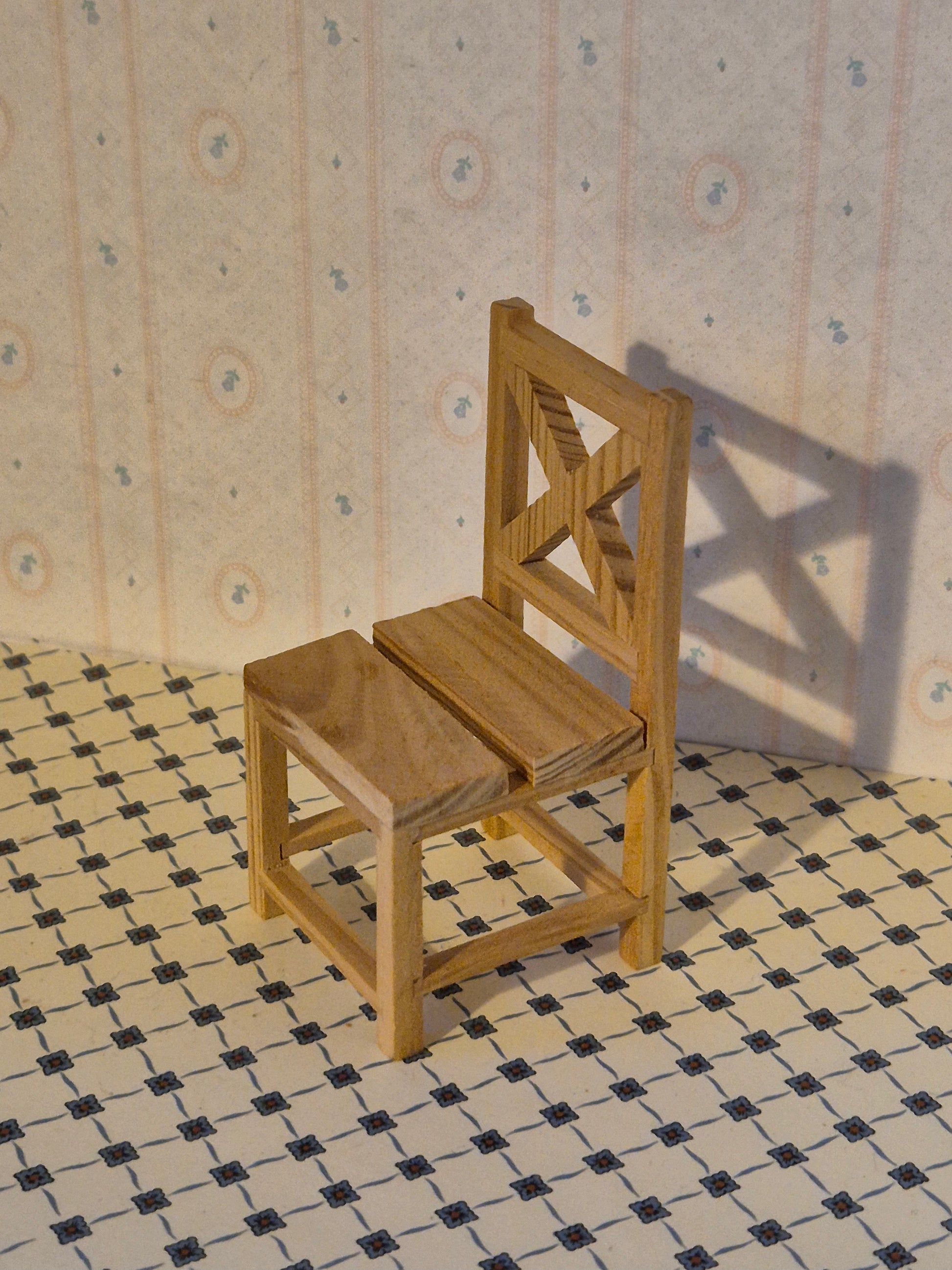 Pæn stol af træ str 1:10. Udmærket stand. Robust.