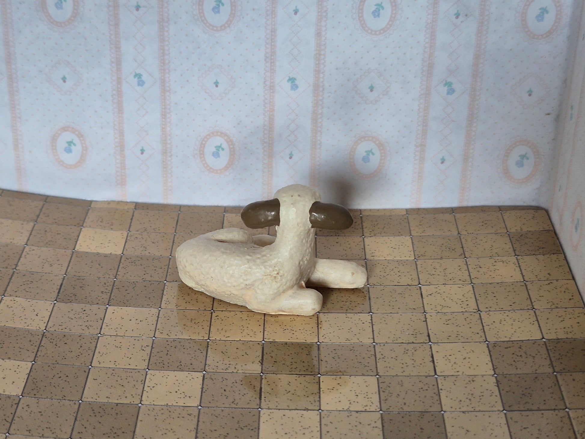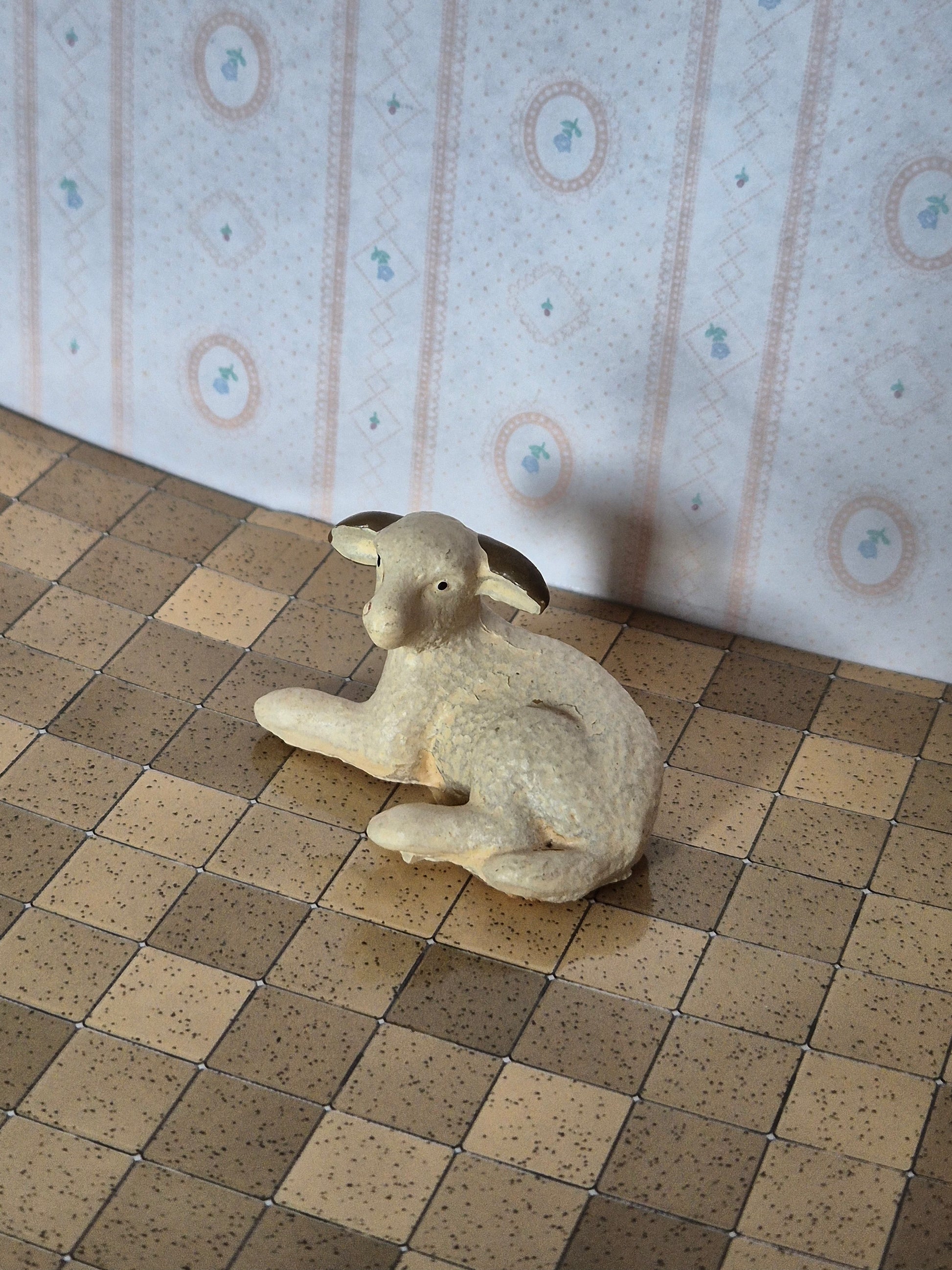 Pænt lam af porcelæn/keramik i str 1:12. Udmærket stand.