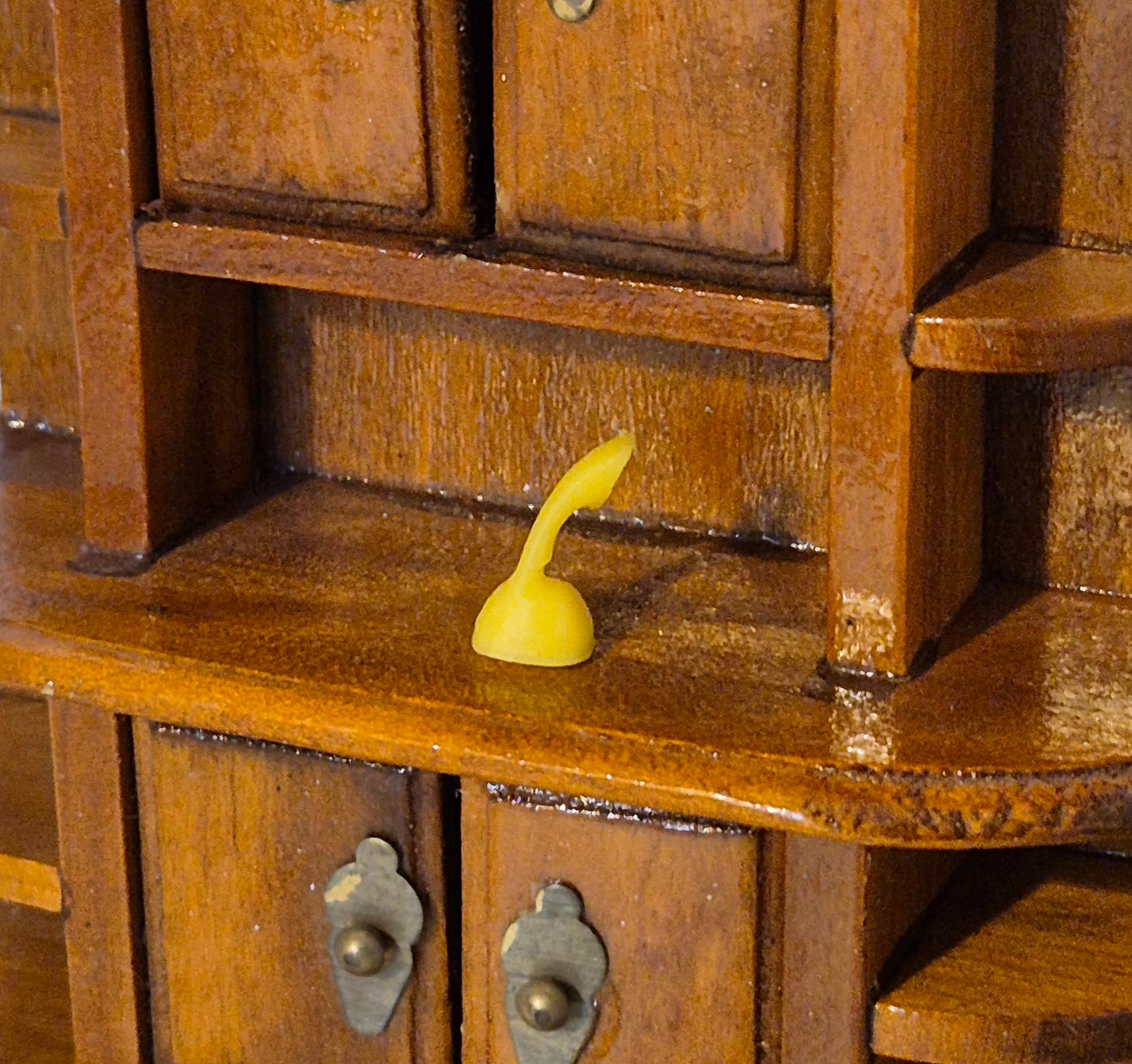 Pæn 3D printet telefon i 1:16. Den er gul.