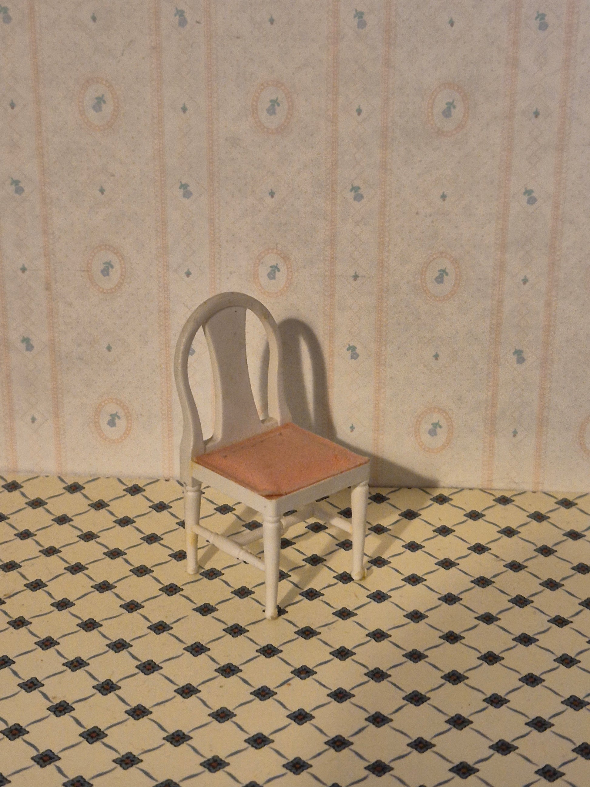 Pæn Brio stol fra 1970erne. Hvid med pink sæde. Original. Str 1:18. God stand.