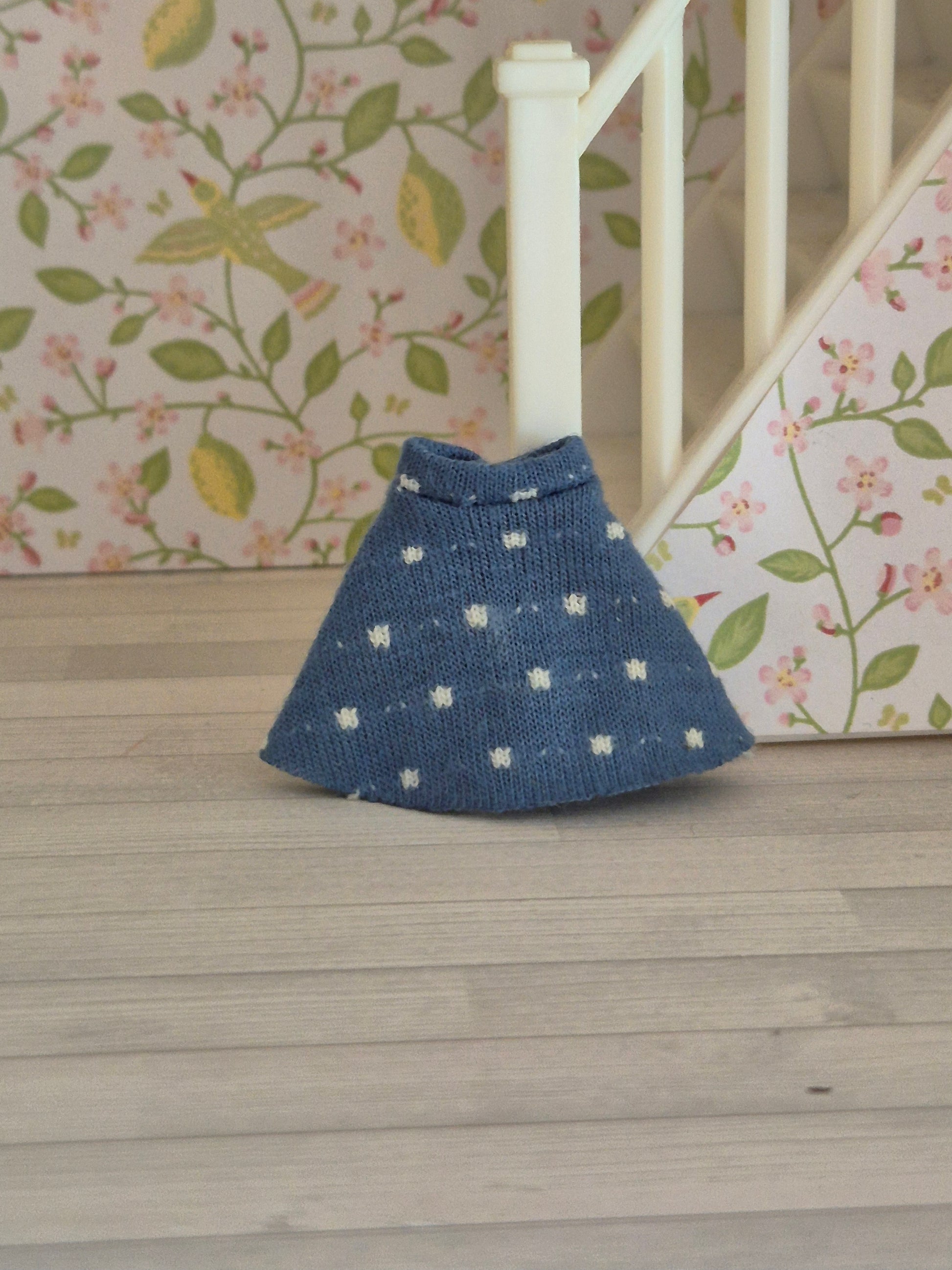 Pæn blå nederdel med hvide prikker til Lundby dame dukke.