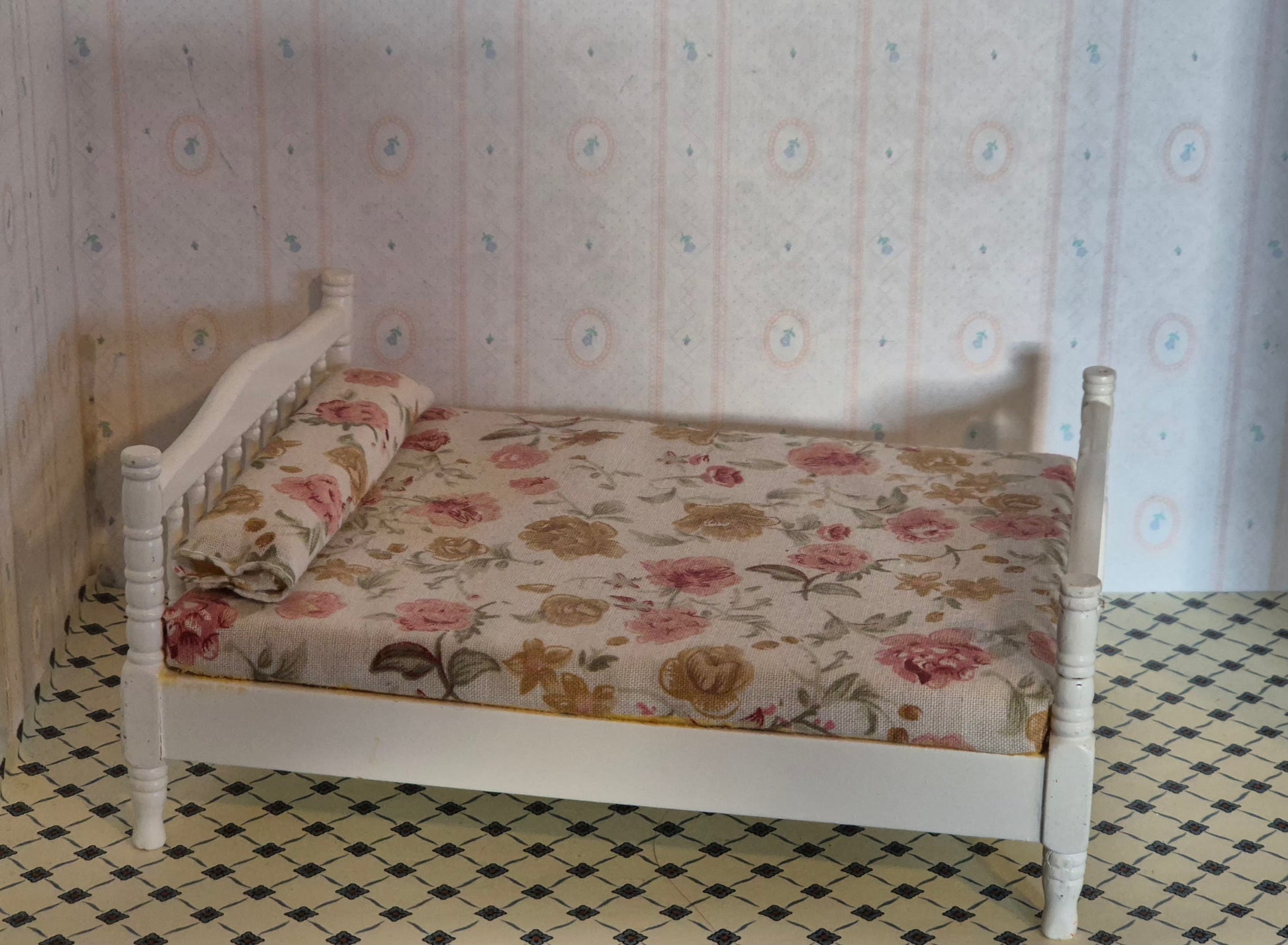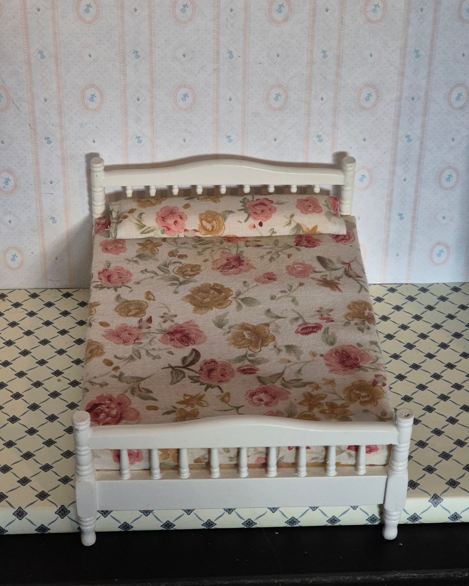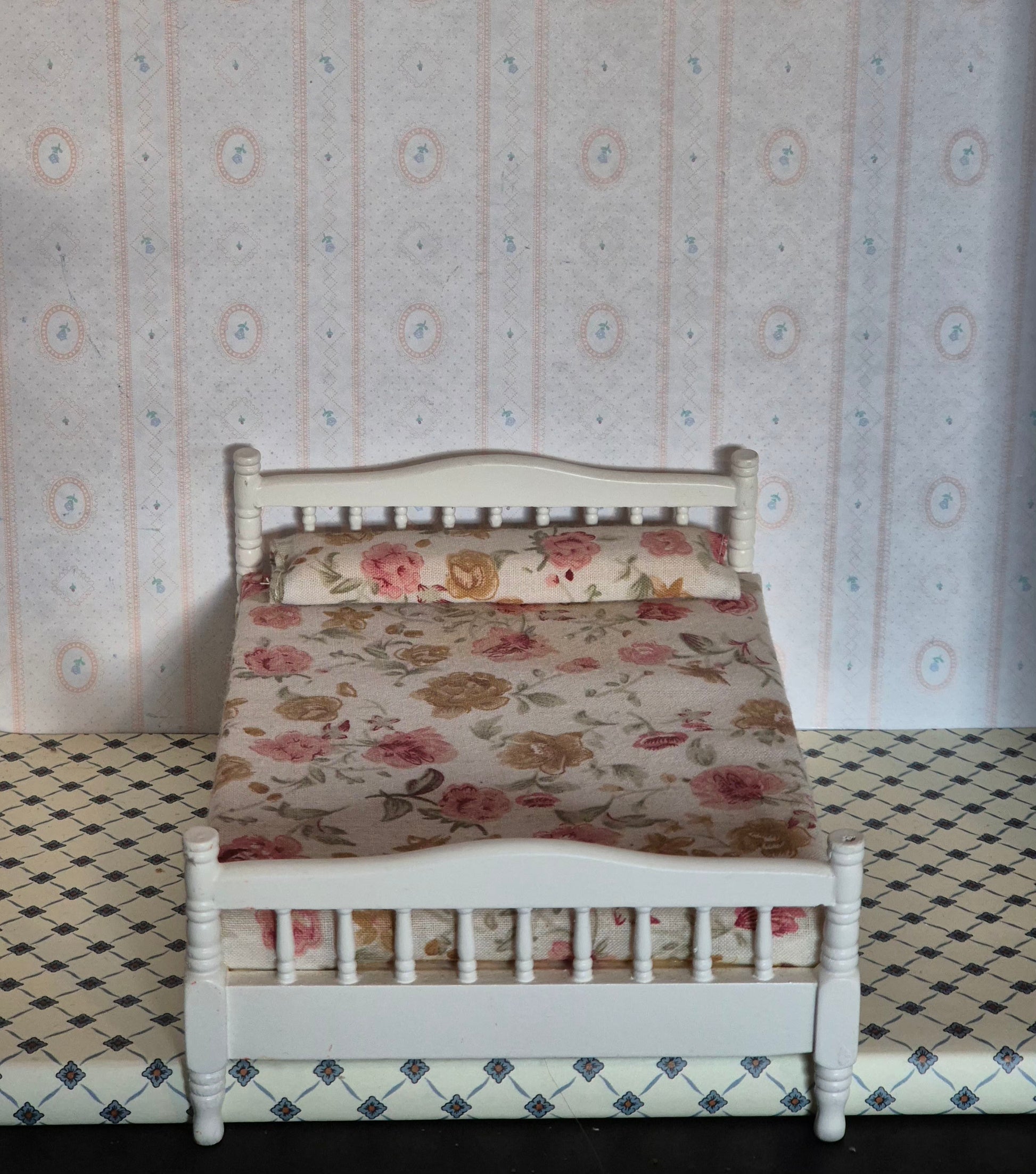 Pæn og fin dobbeltseng i 1:12 med lidt brugsspor og patina.