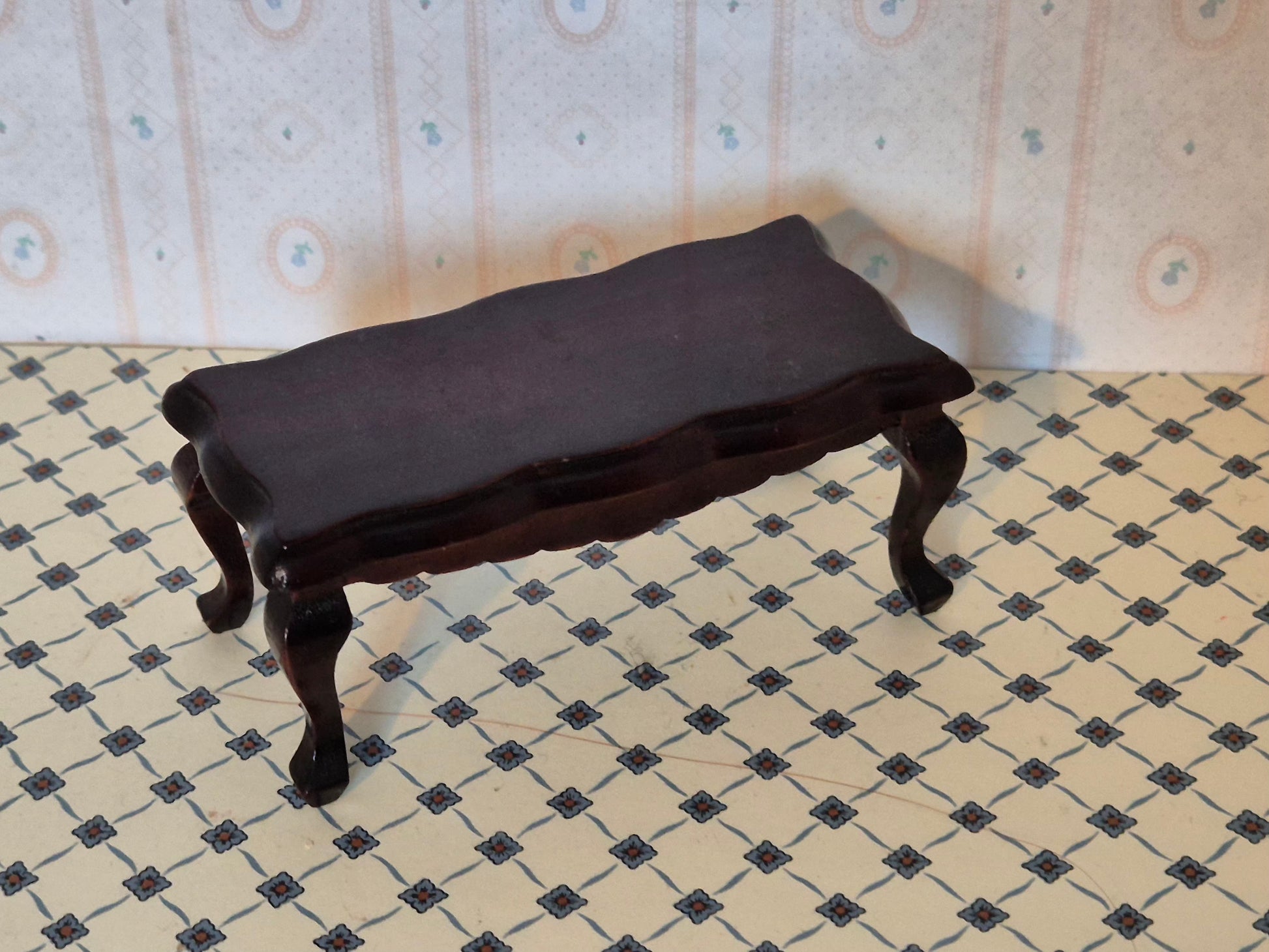 Pænt 1:12 sofabord af træ, mørkebrunt. Pæne udskæringer og detaljer. Udmærket stand.