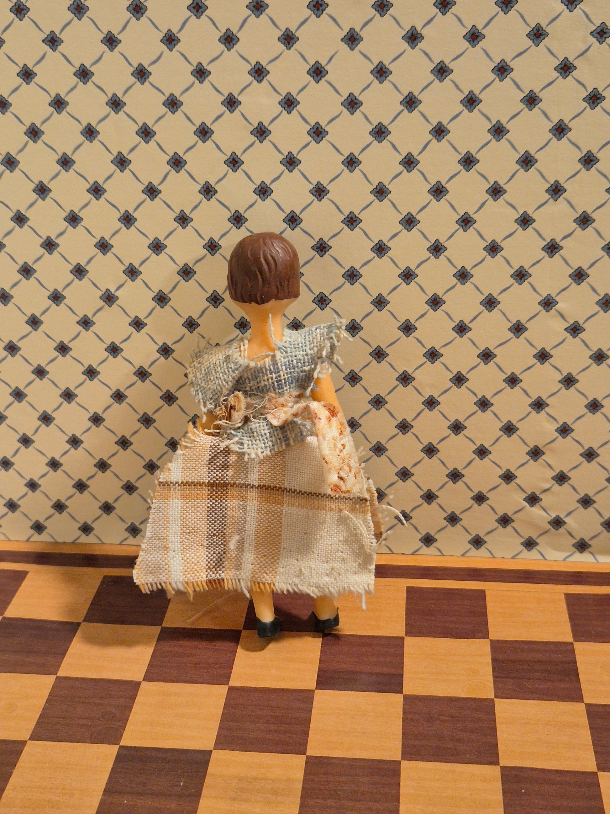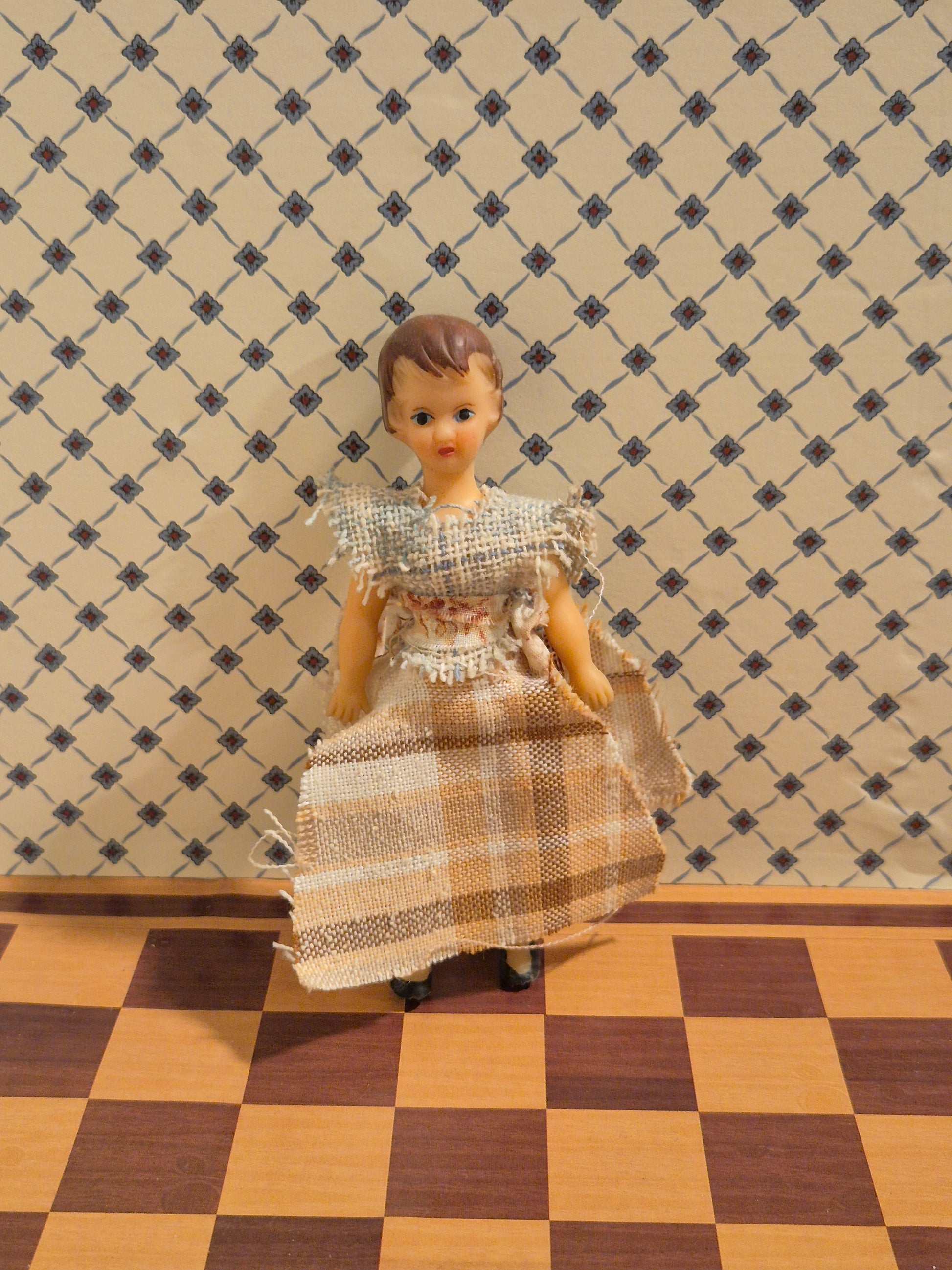 Pæn vintage Ari dukke i hjemmelavet tøj. Det er 1:16, tysk design.